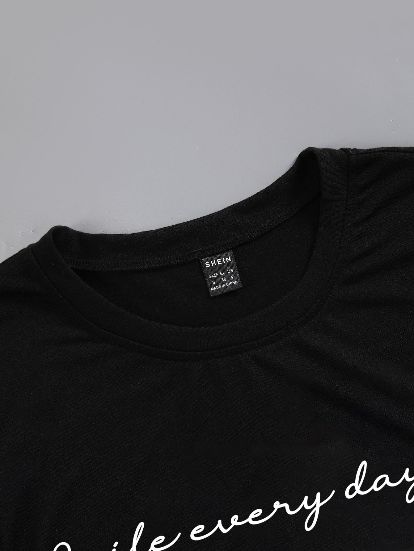 LUNE Slogan Graphic Tee Smile Every Day Graphic Tees Women Tops