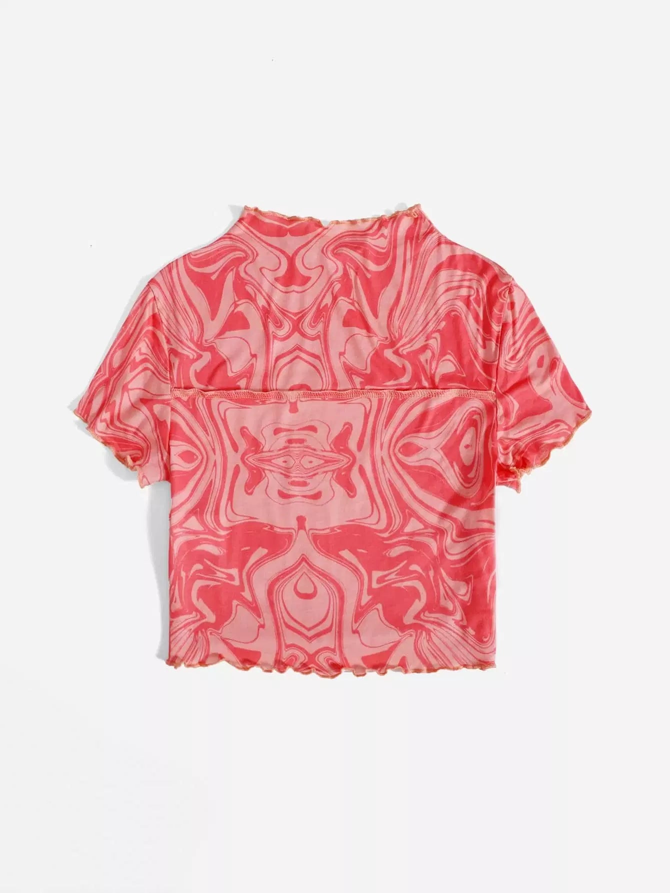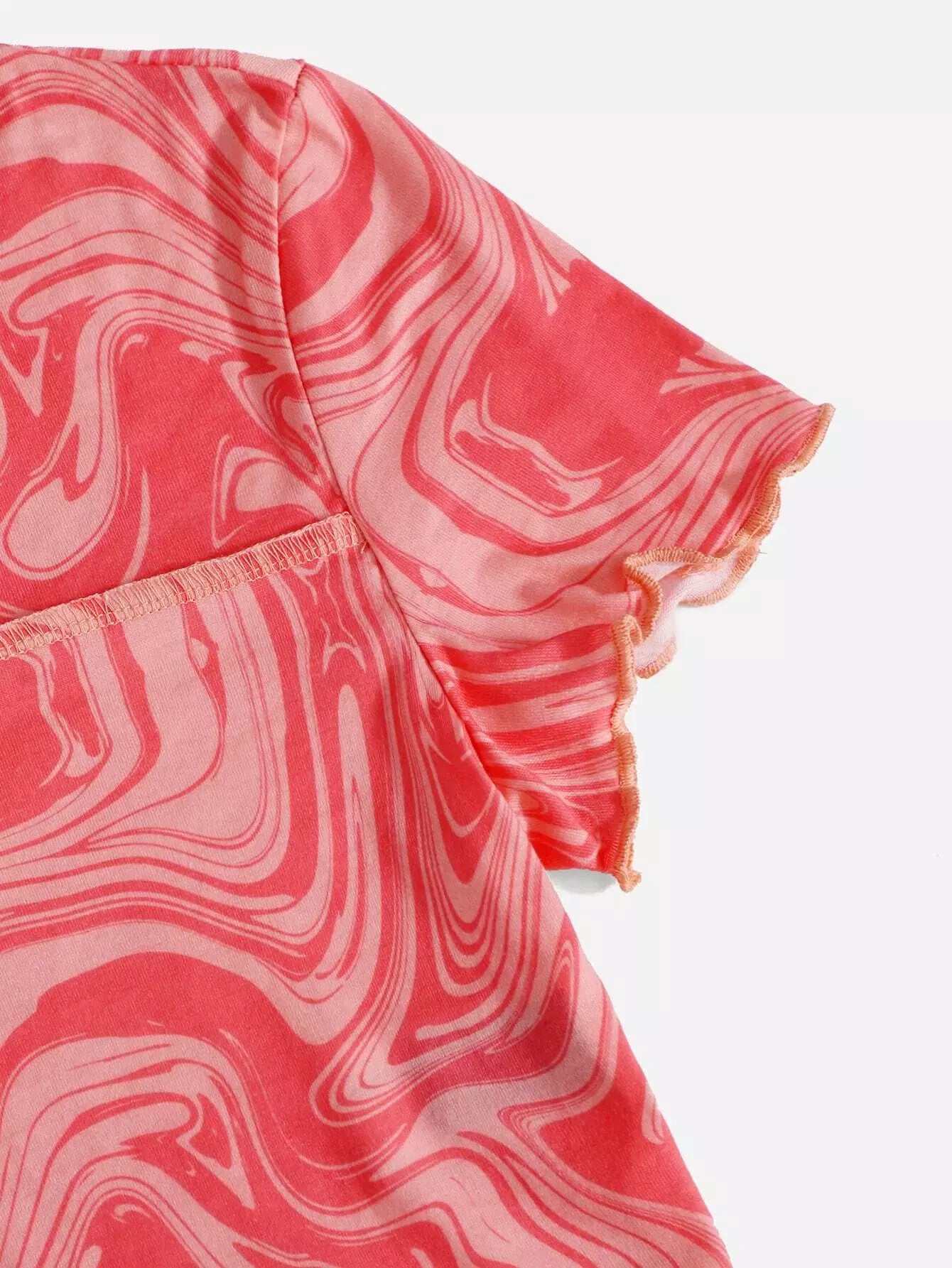 تي شيرت بطبعة رخامية مع حواف من الخس