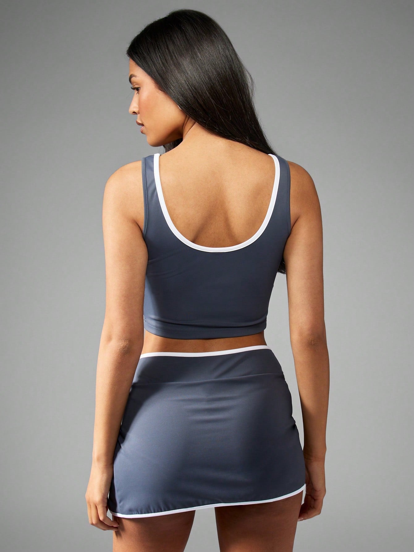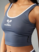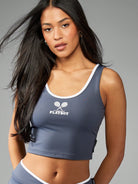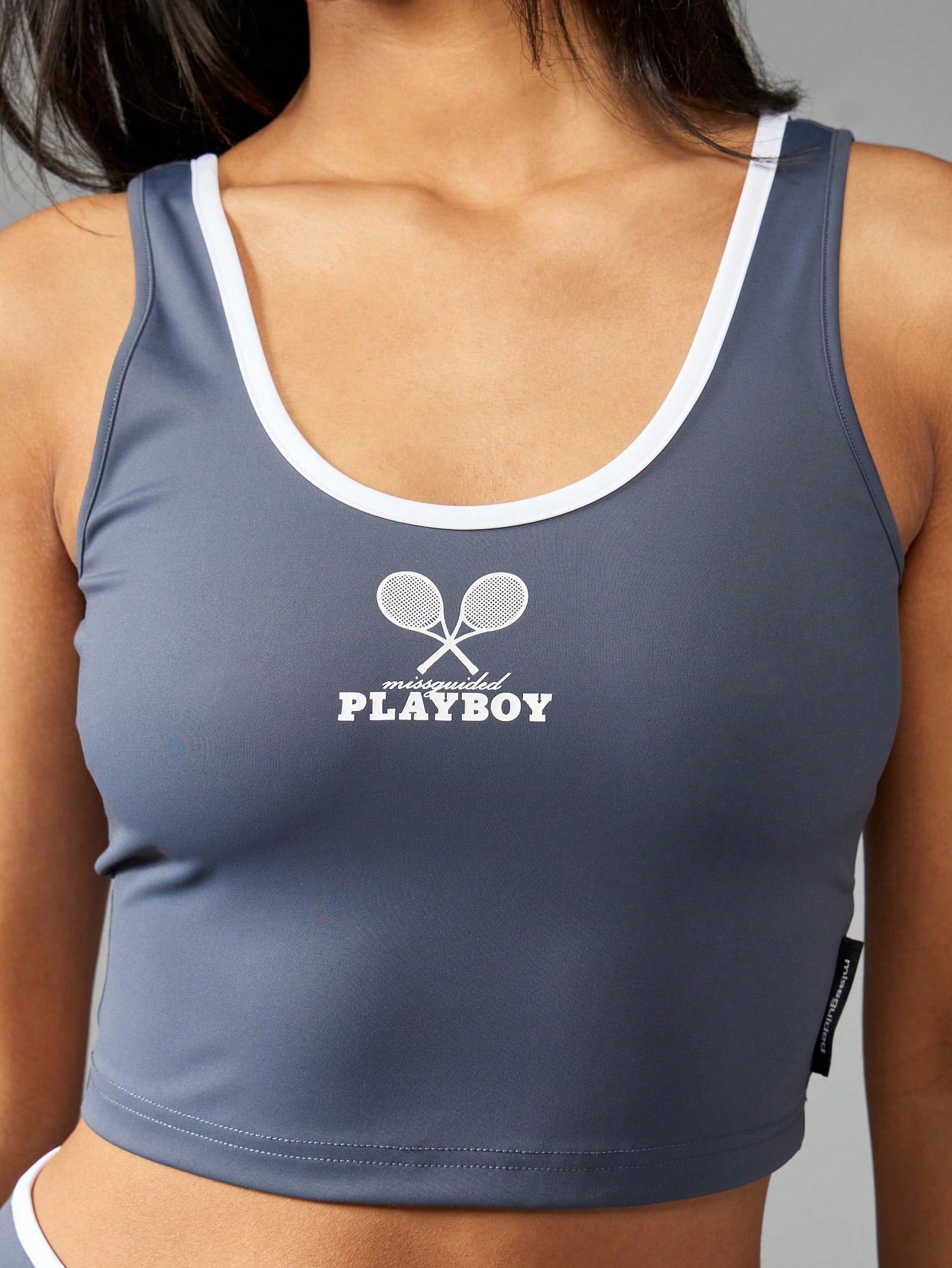 Missguided x Playboy Women Athletic Crop Tank Performance Workout Sports Bra Style Vest With Logo Contrast