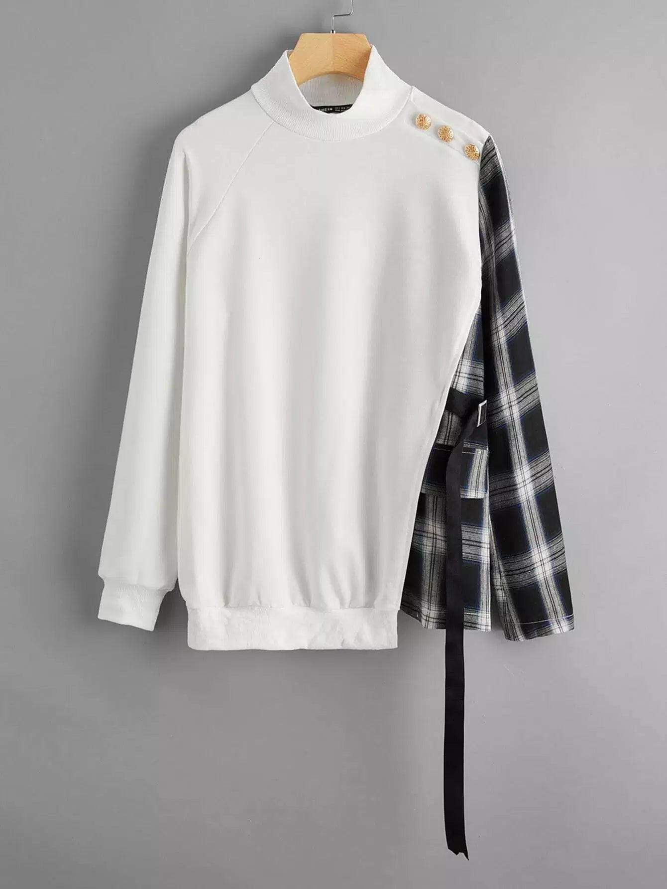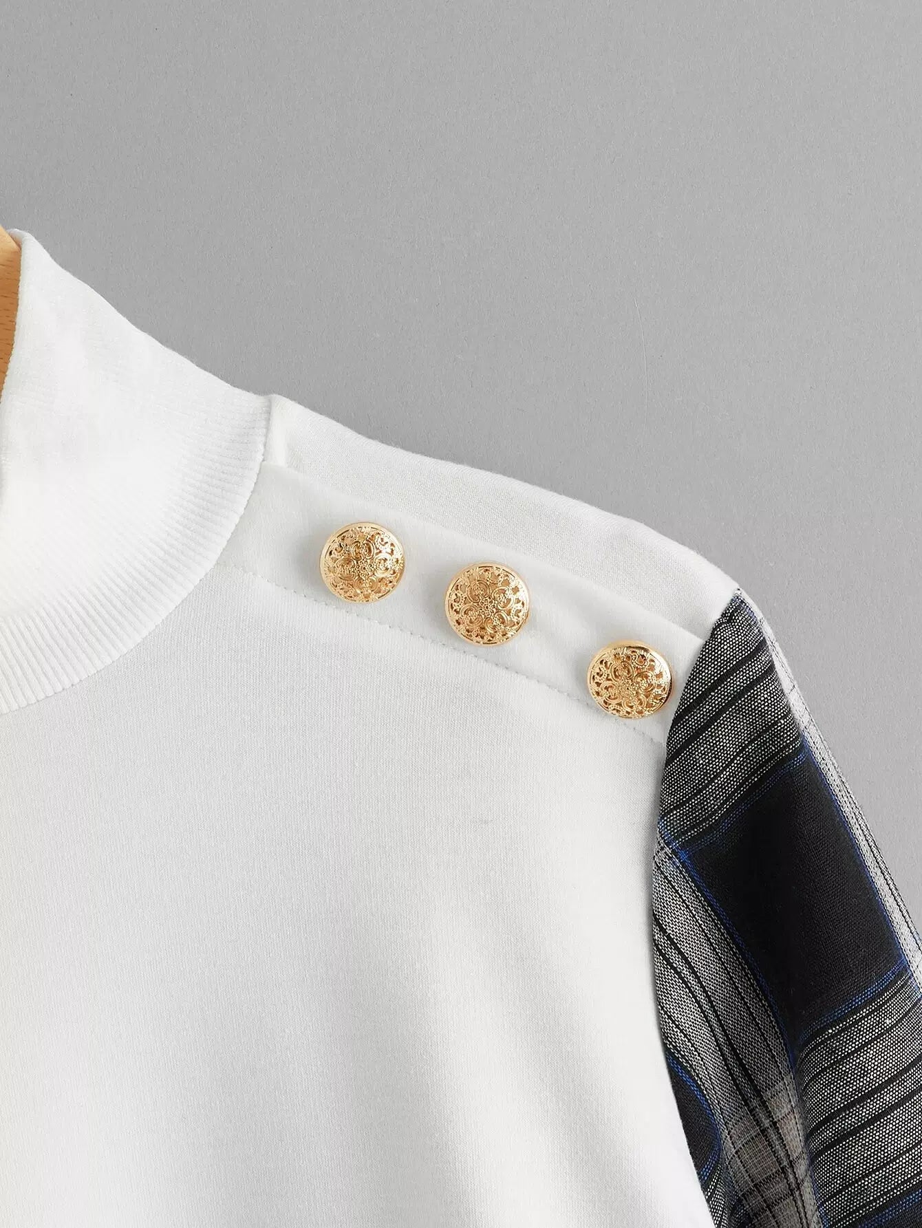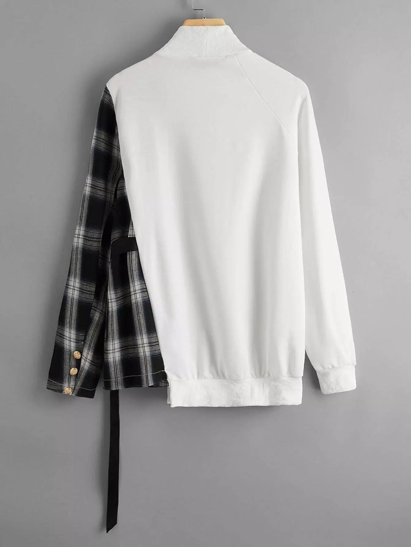 سويت شيرت بأكمام راجلان منقوشة برقبة وهمية بلون مغاير