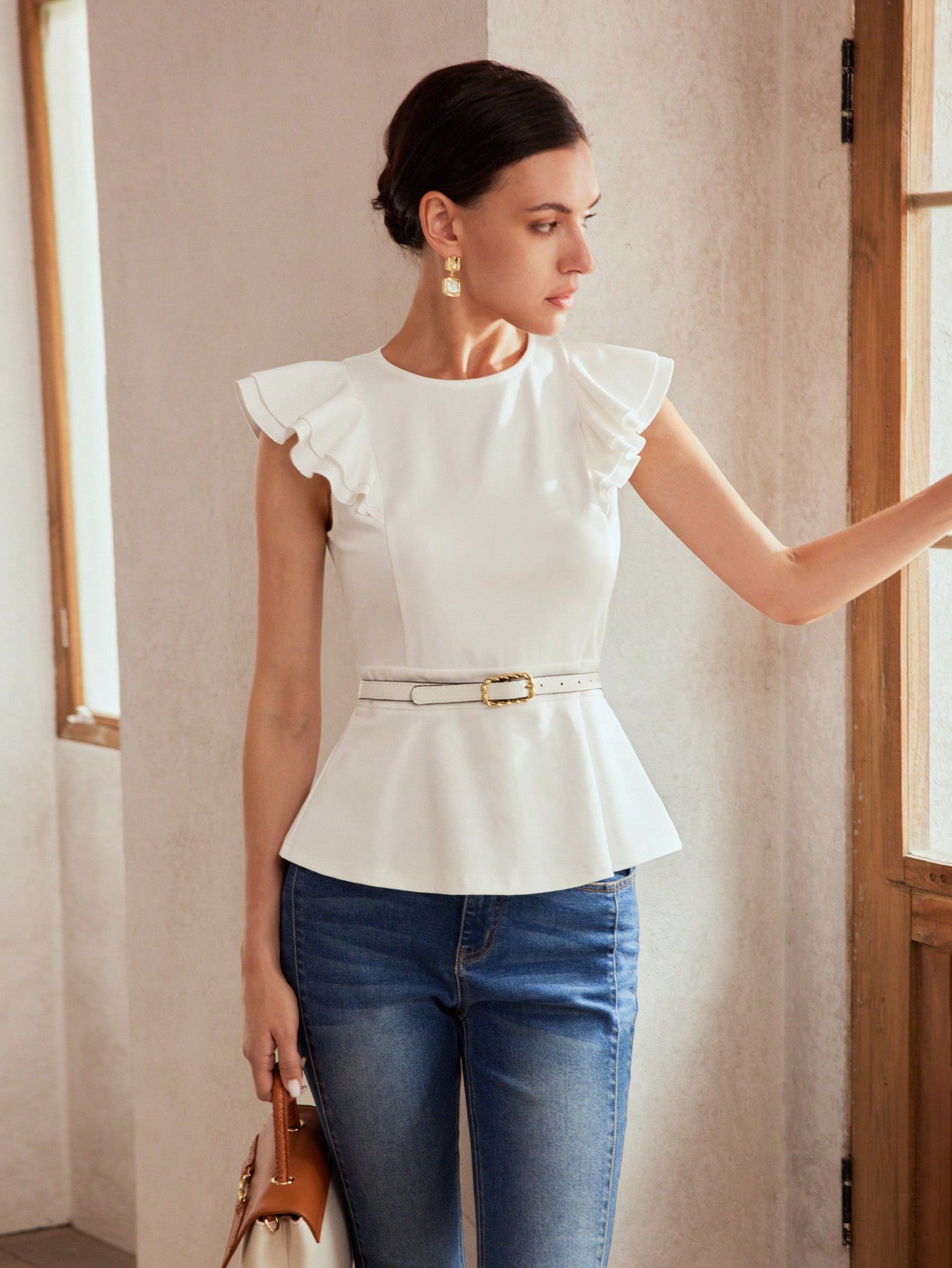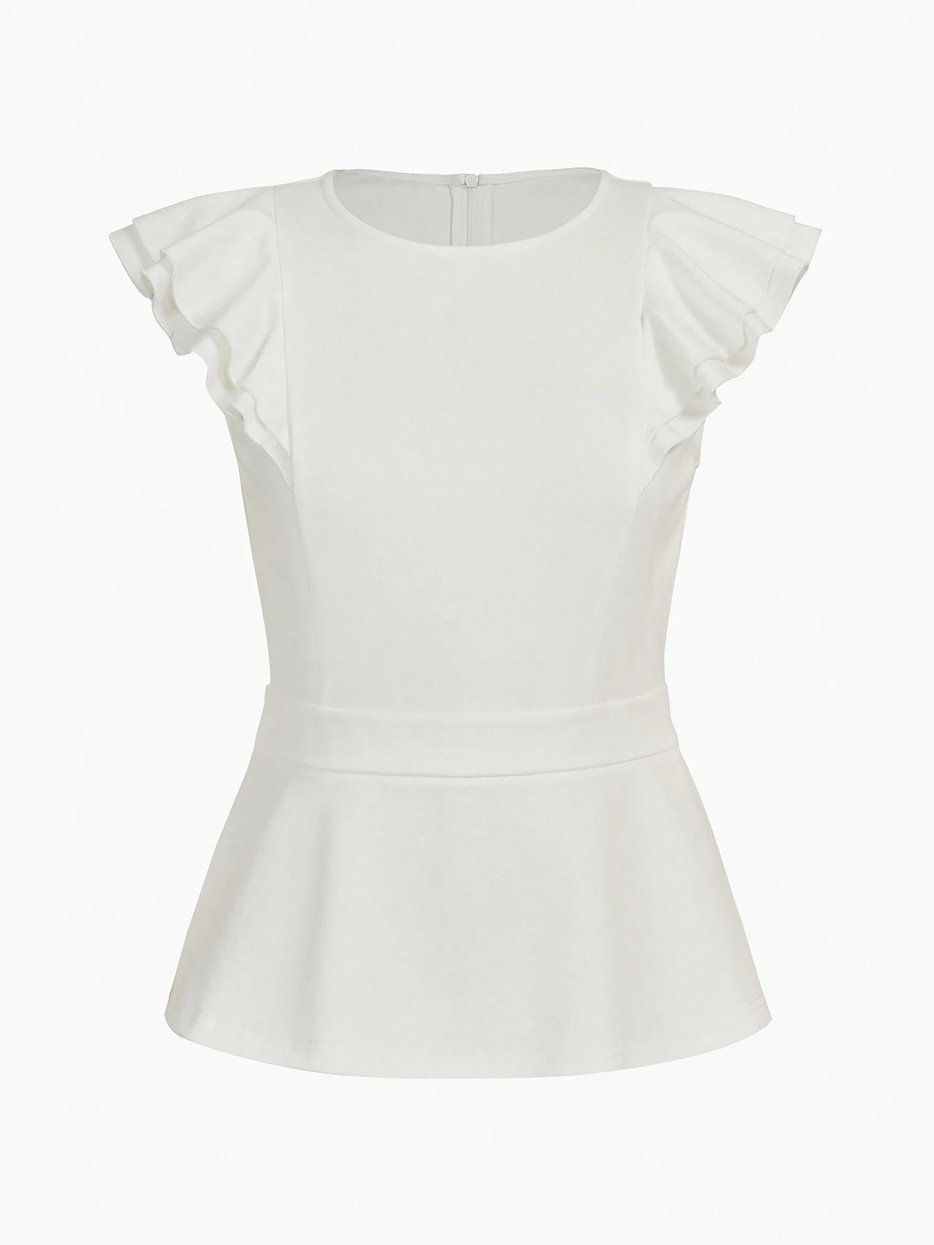 MOTF Classy CLASSY RUFFLE CAP SLEEVE FITTED T-SHIRT