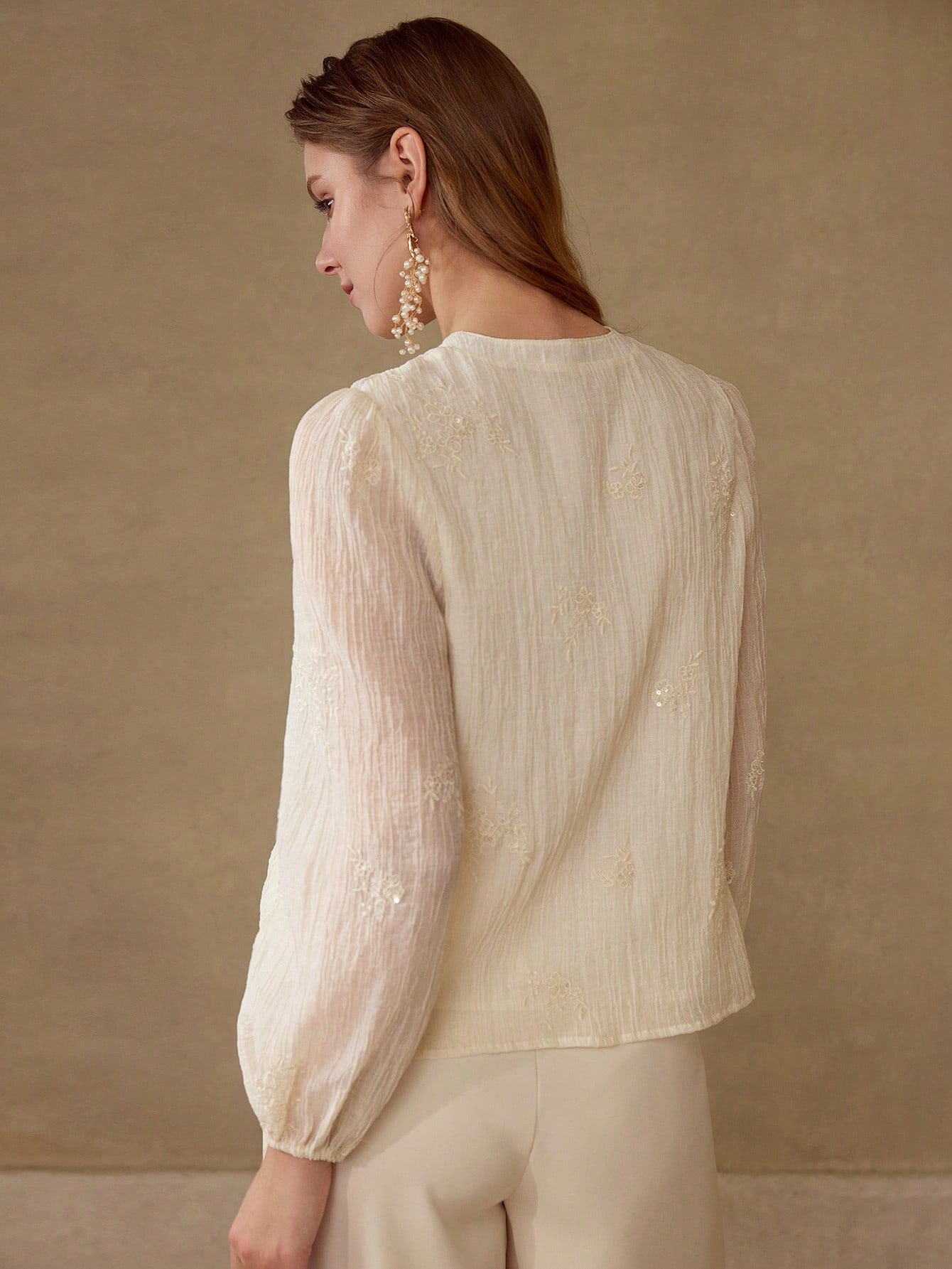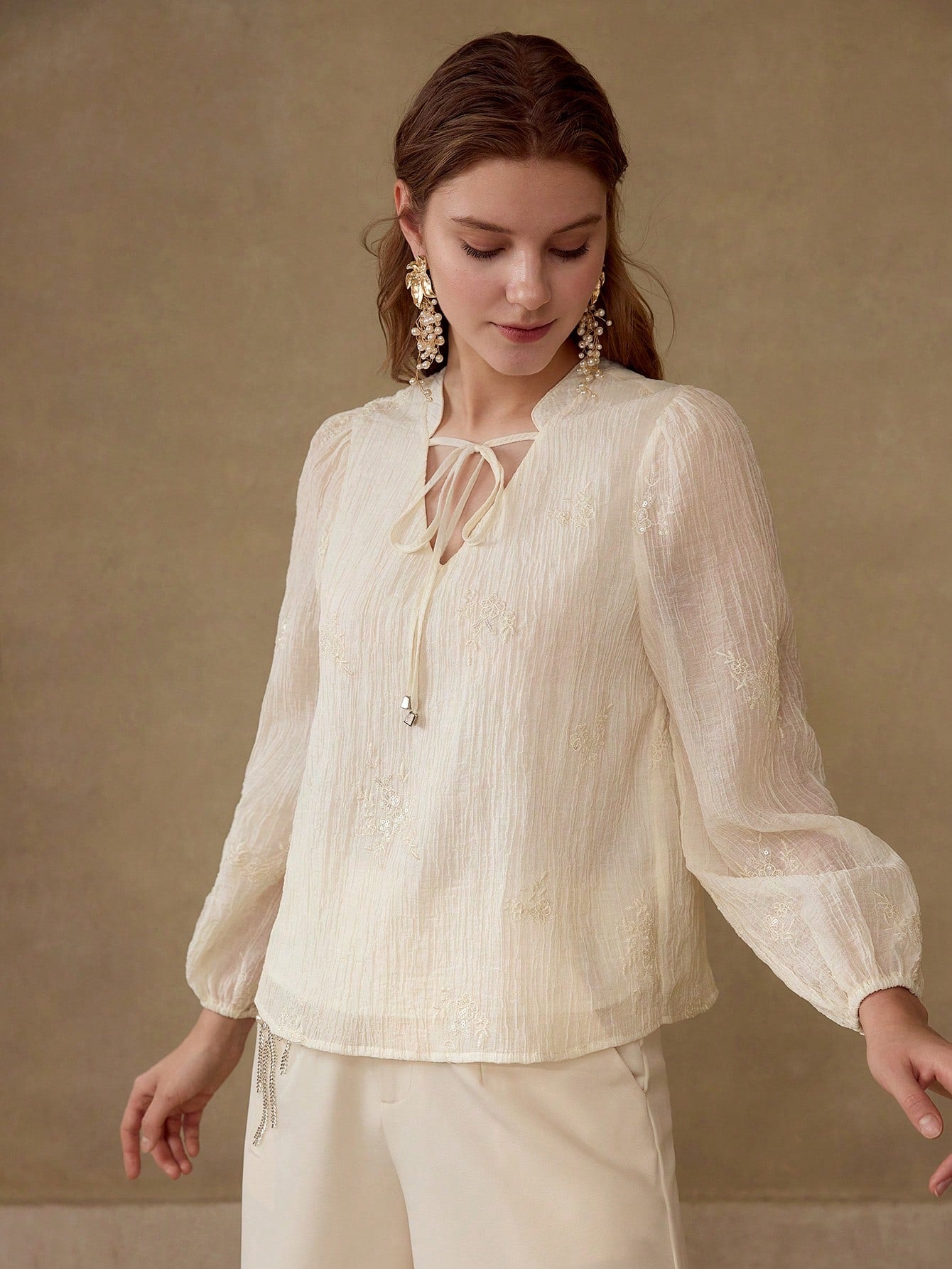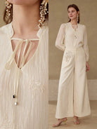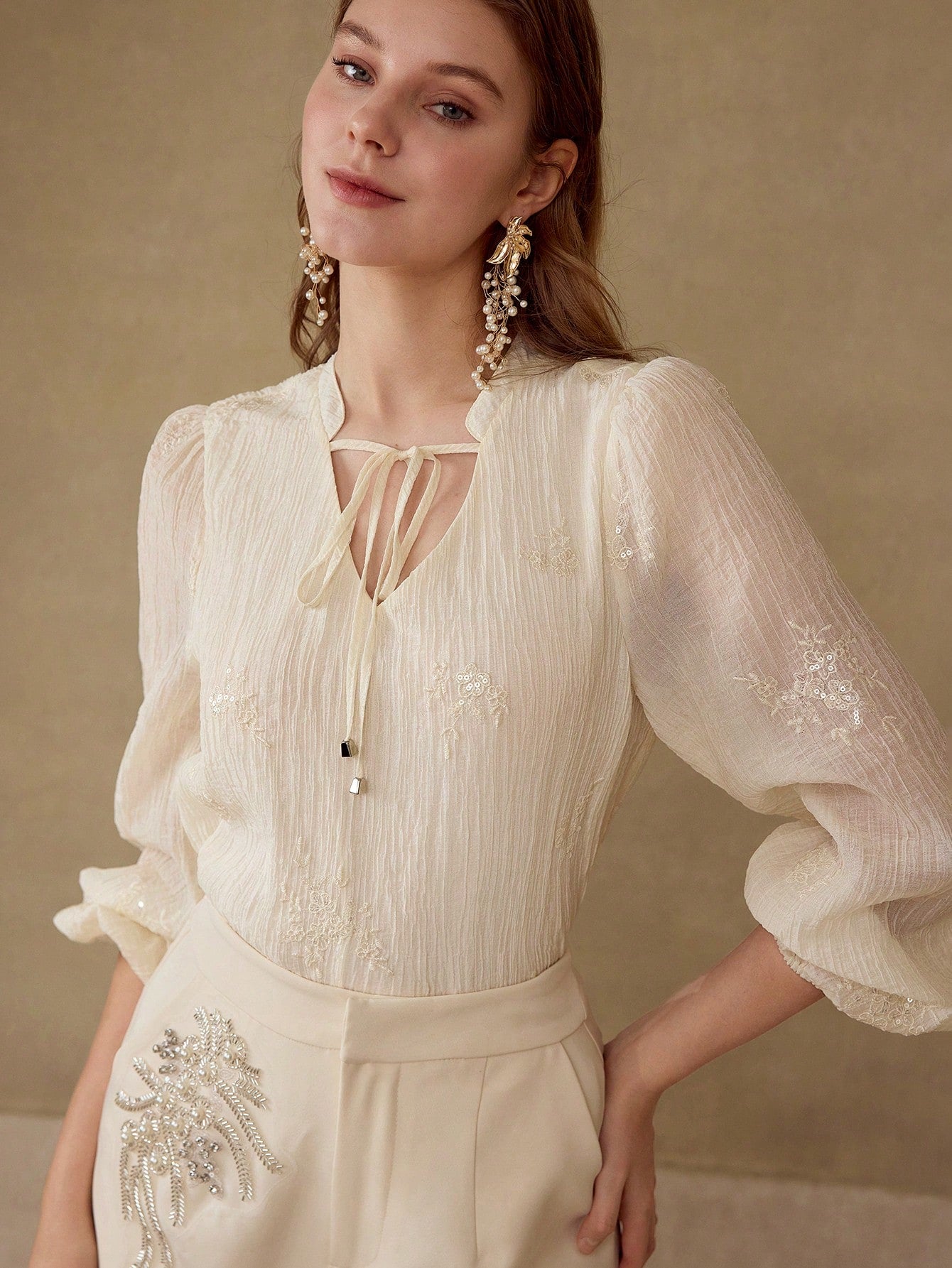 MOTF PREMIUM EMBROIDERY TIE NECK TOP