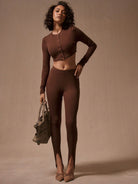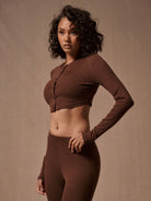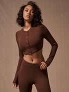 MUSERA Long Sleeve Button Placket Crop Top Clothes Casual Summer
