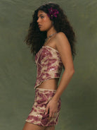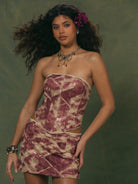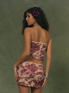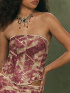 MUSERA Textured Print Lace Curved Hem Boned Sleeveless Bandeau Corset Top Only Sexy Cute Ibiza Spring