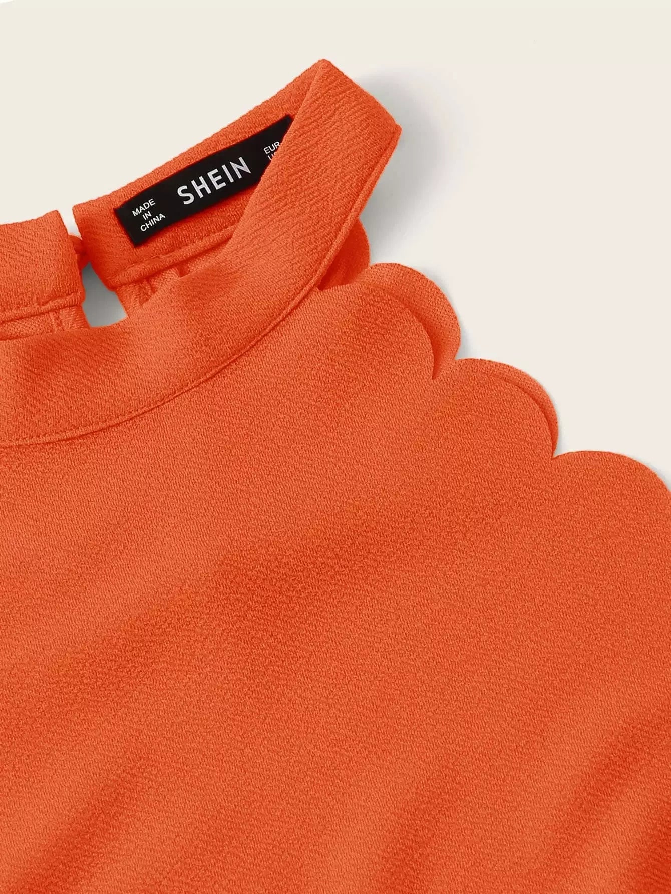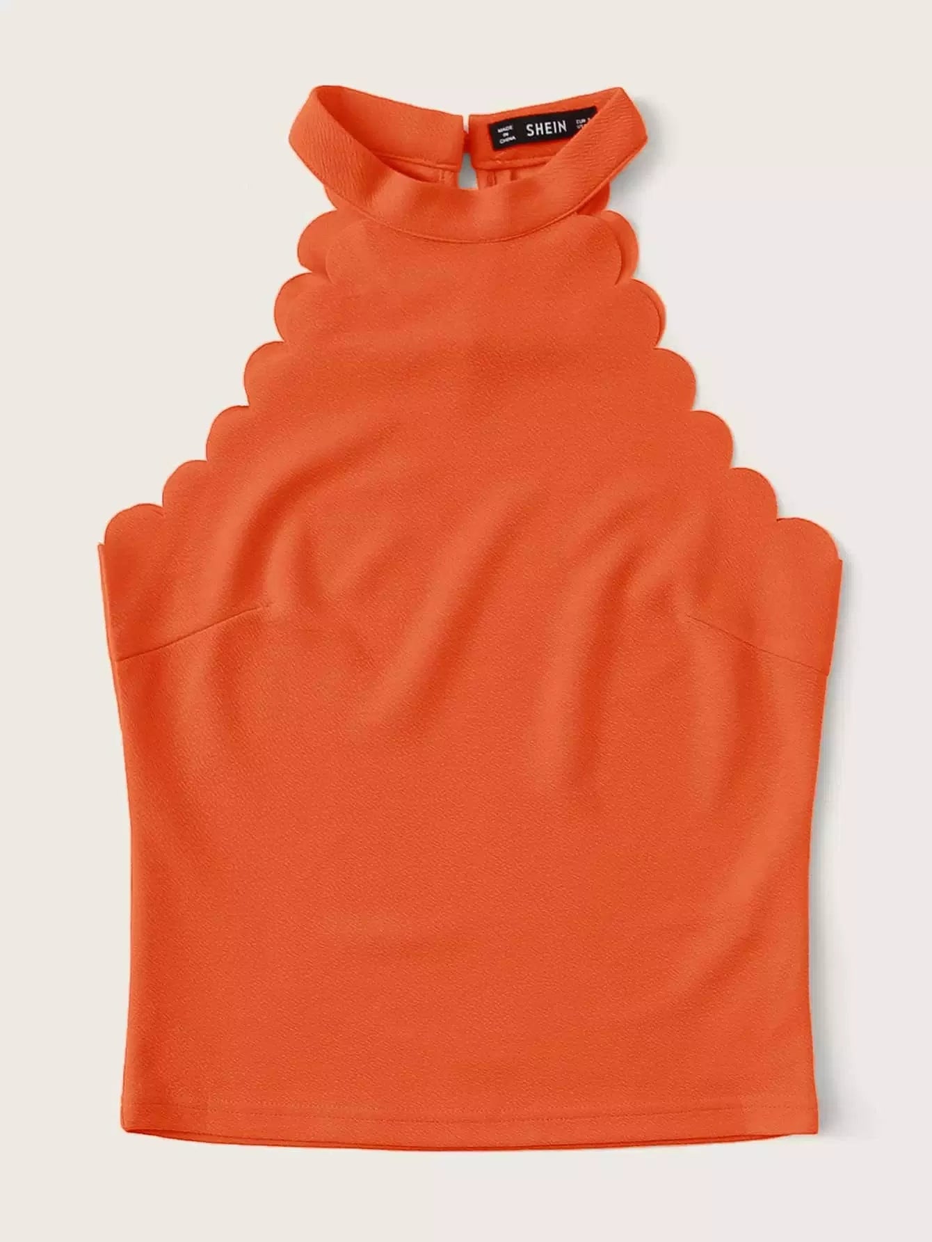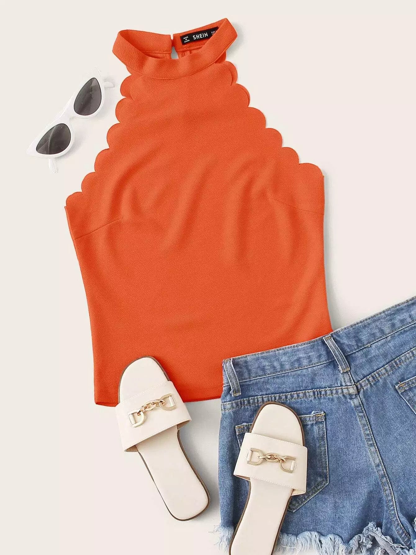 بلوزة بحافة رسن برتقالية برتقالية اللون نيون بحافة صدفة