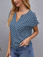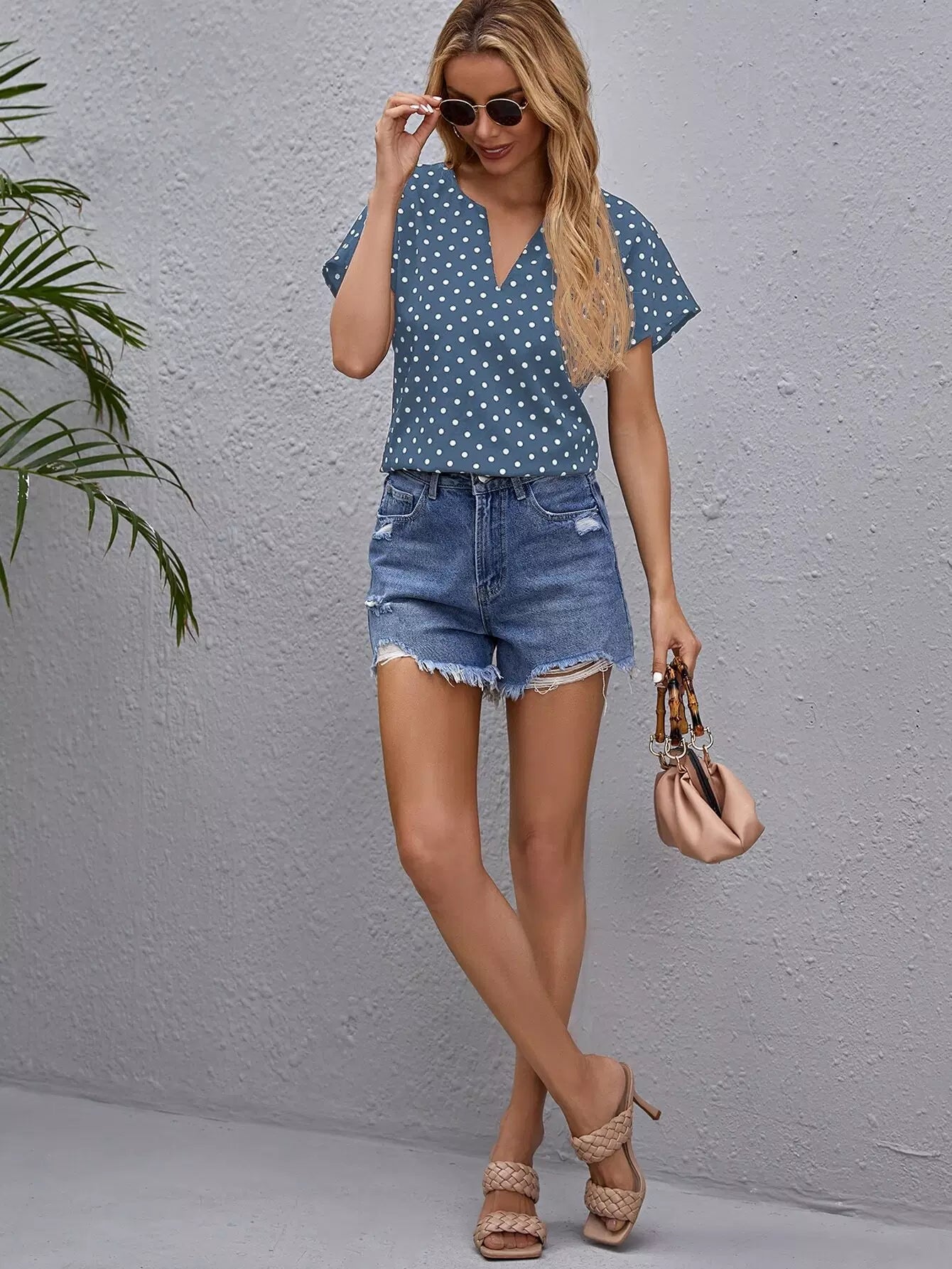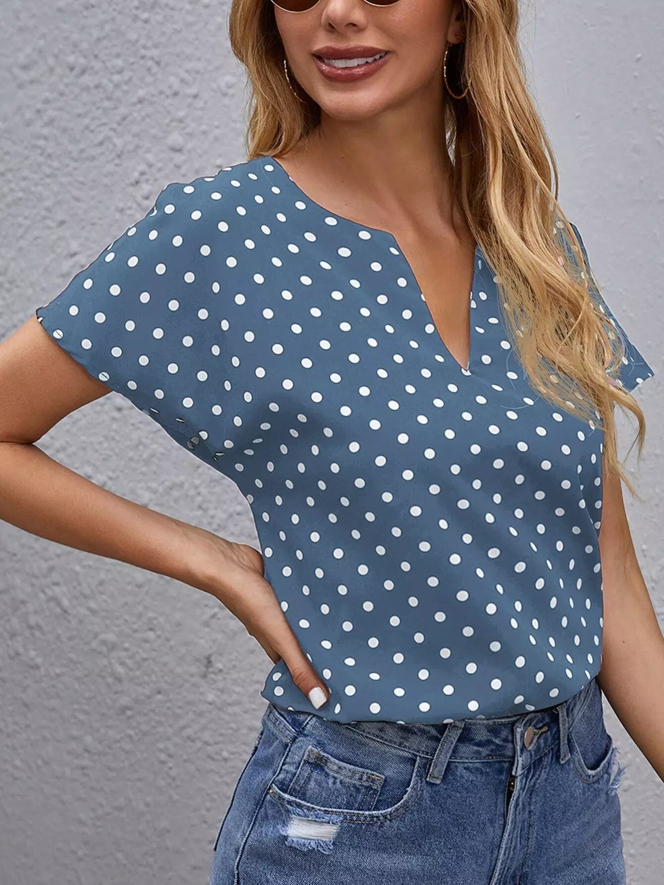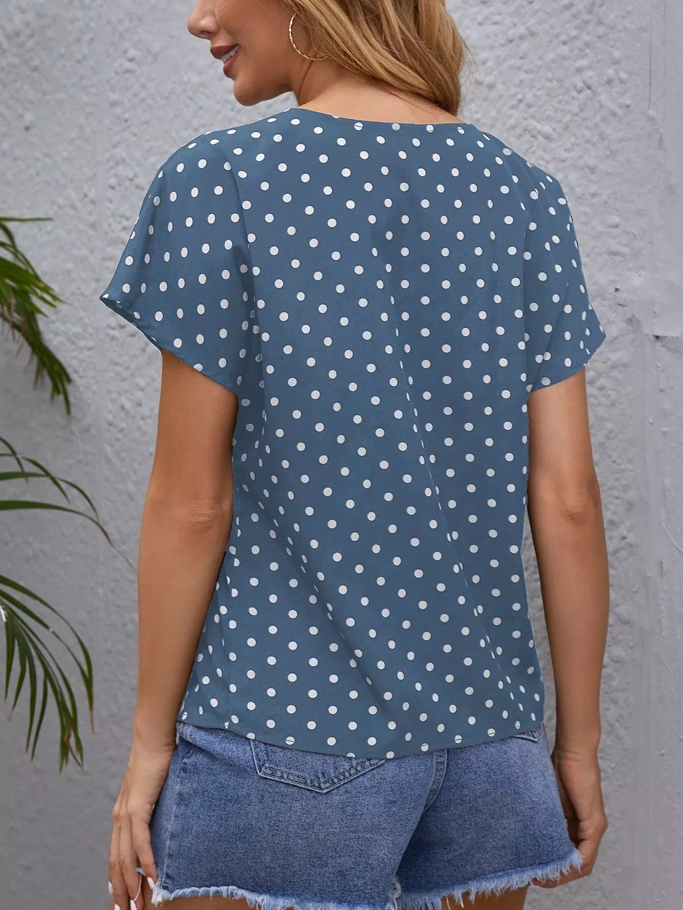 بلوزة برقبة برقبة منقوشة بنقشة منقطة