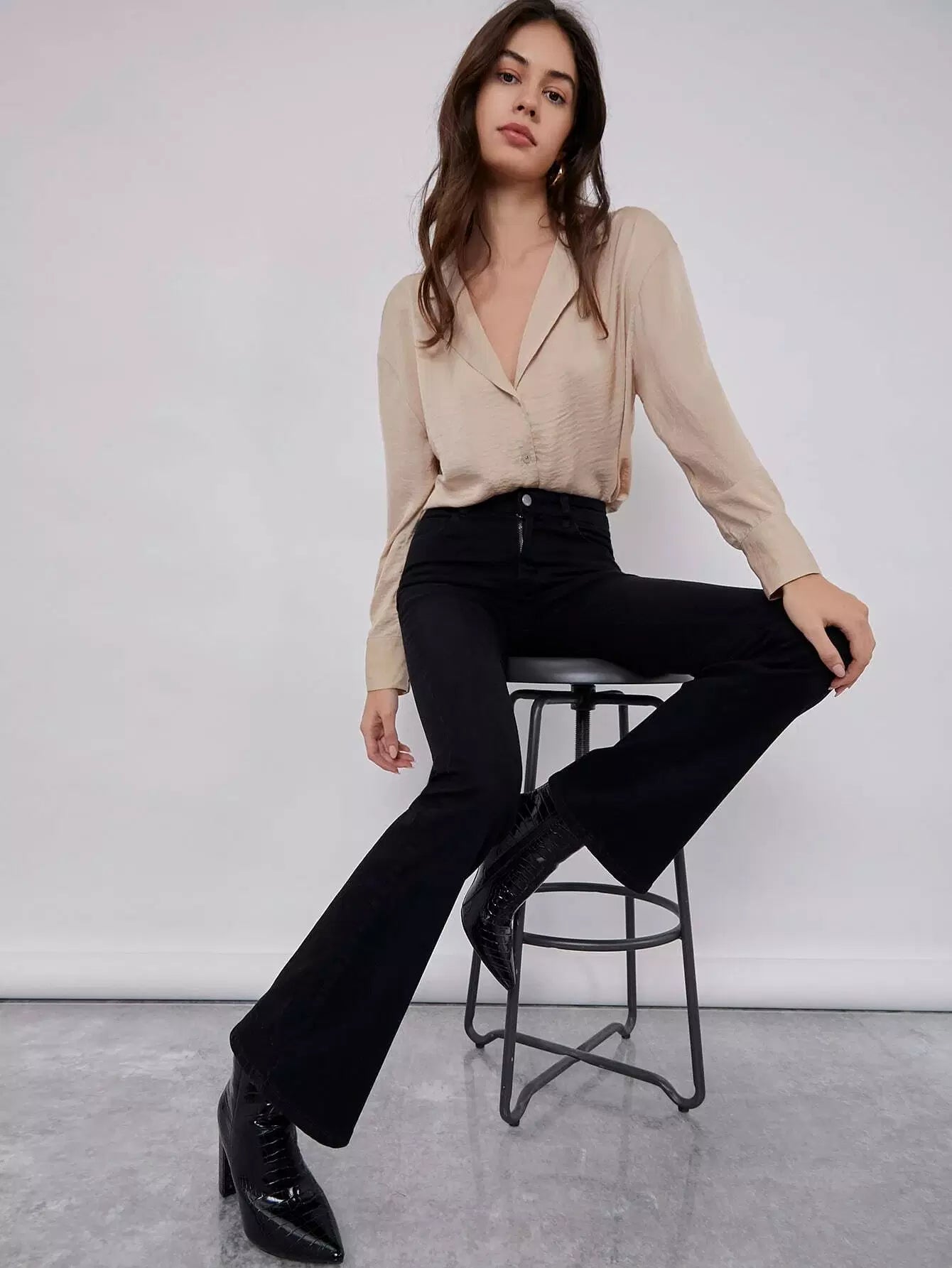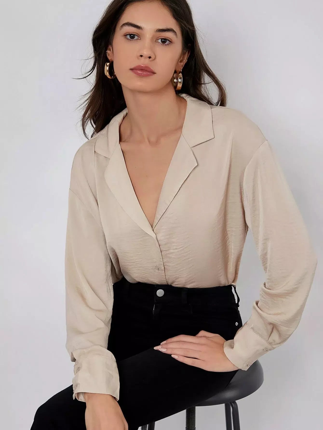 بلوزة بياقة منسدلة الكتفين بياقة منسدلة