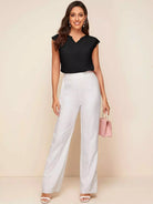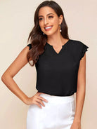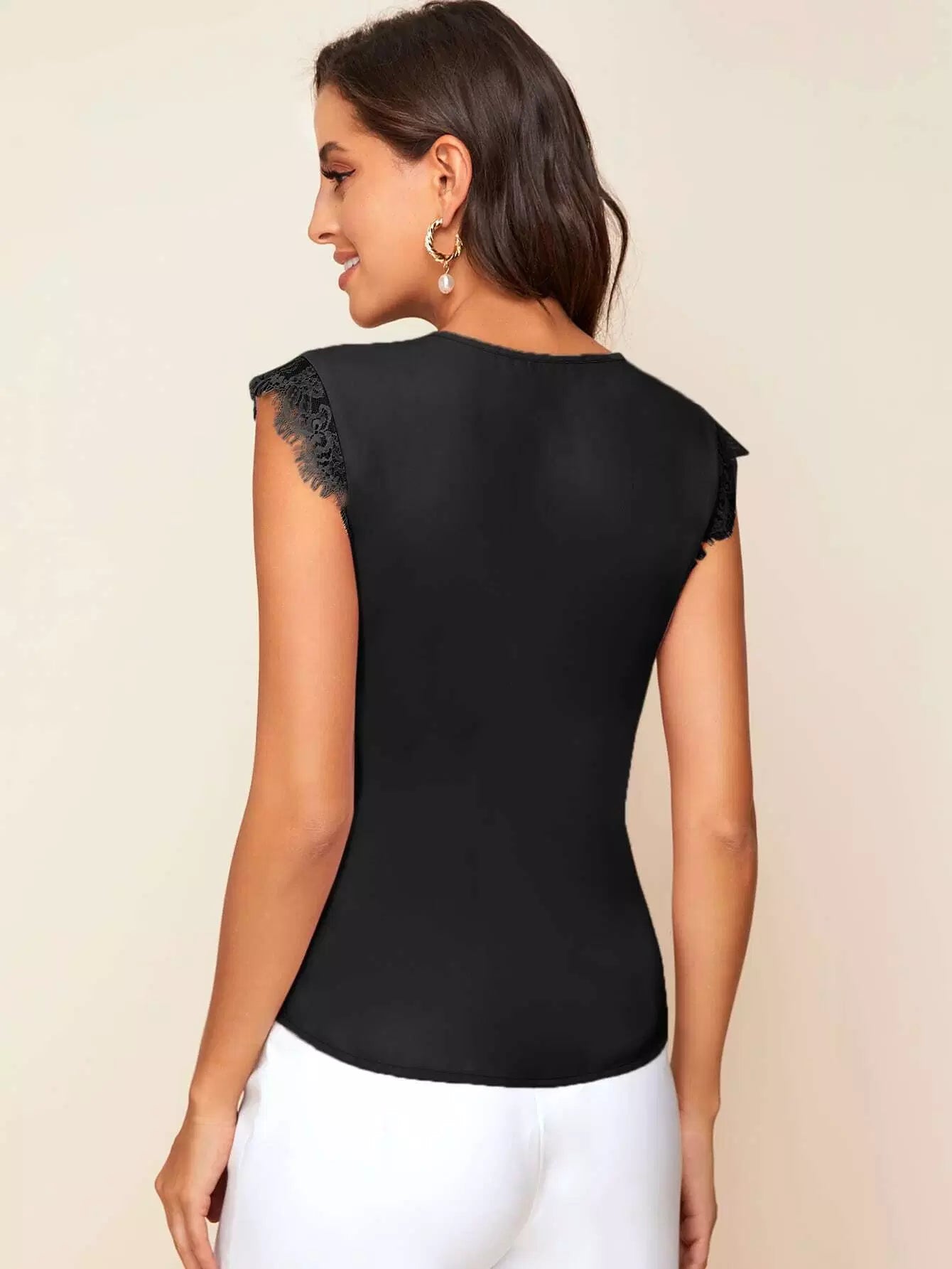 بلوزة برقبة مشقوقة بحواف من الدانتيل