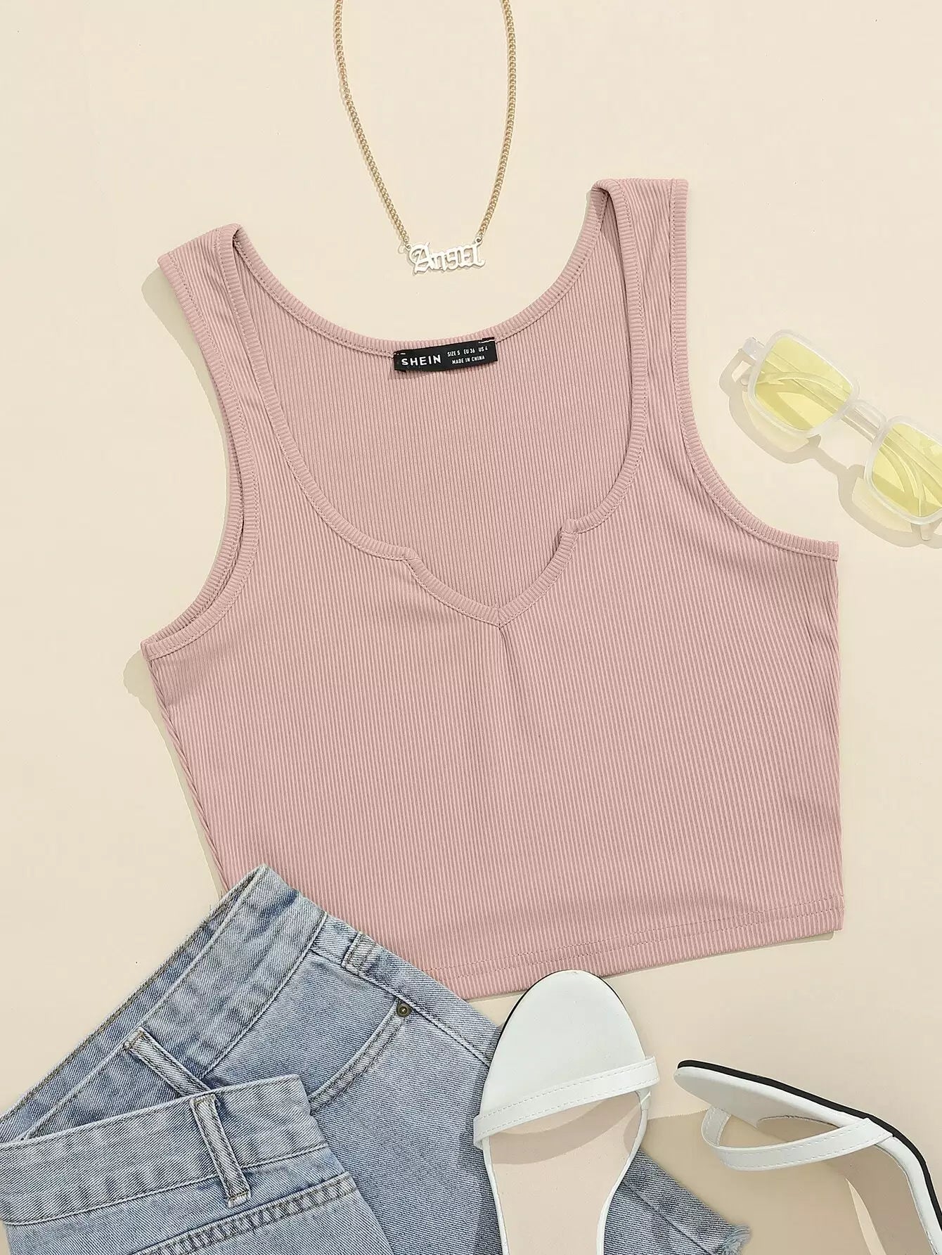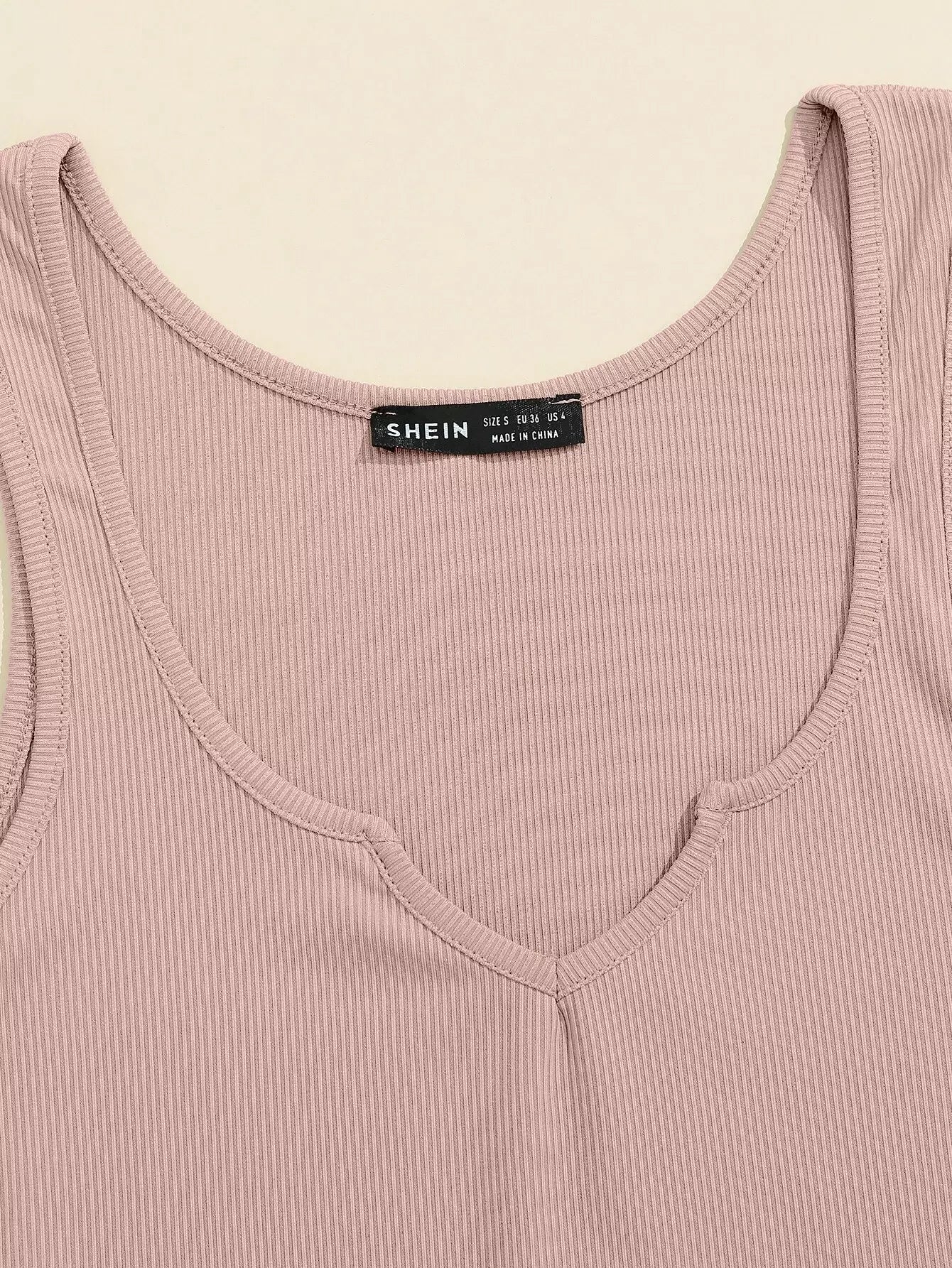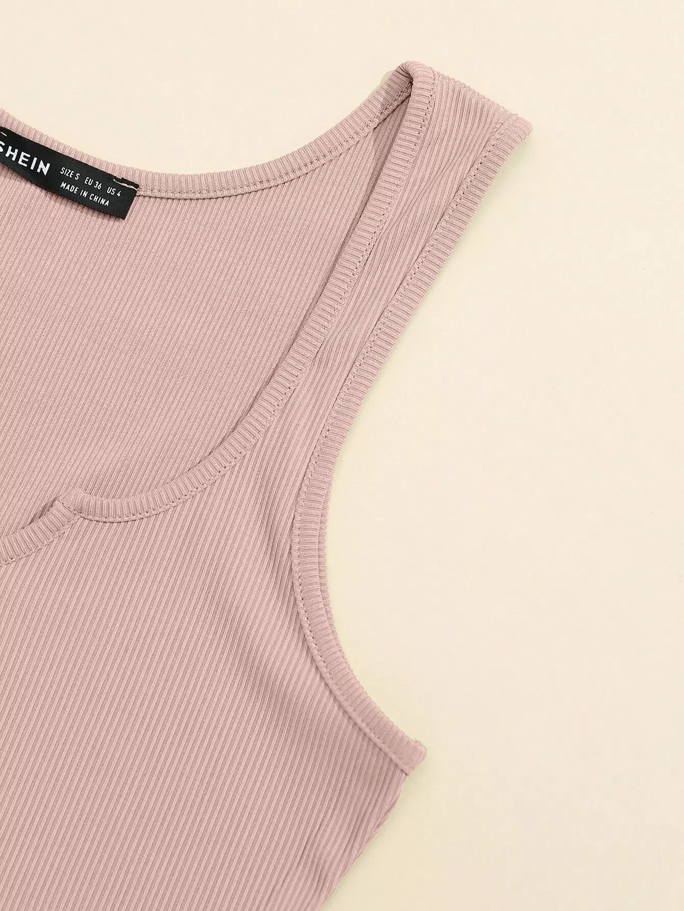 تانك برقبة محبوكة برقبة محبوكة على شكل ضلع محبوكة