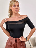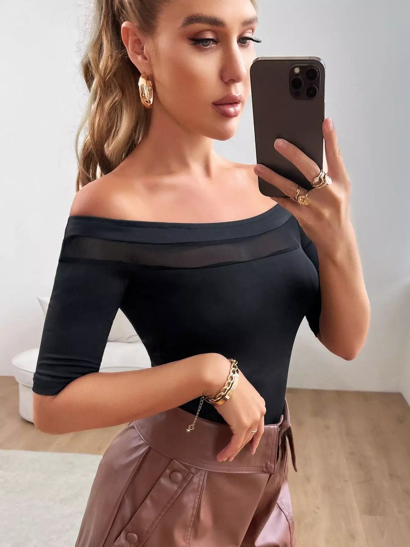 تي شيرت بدون أكتاف بقصّة شبكية بلون مغاير