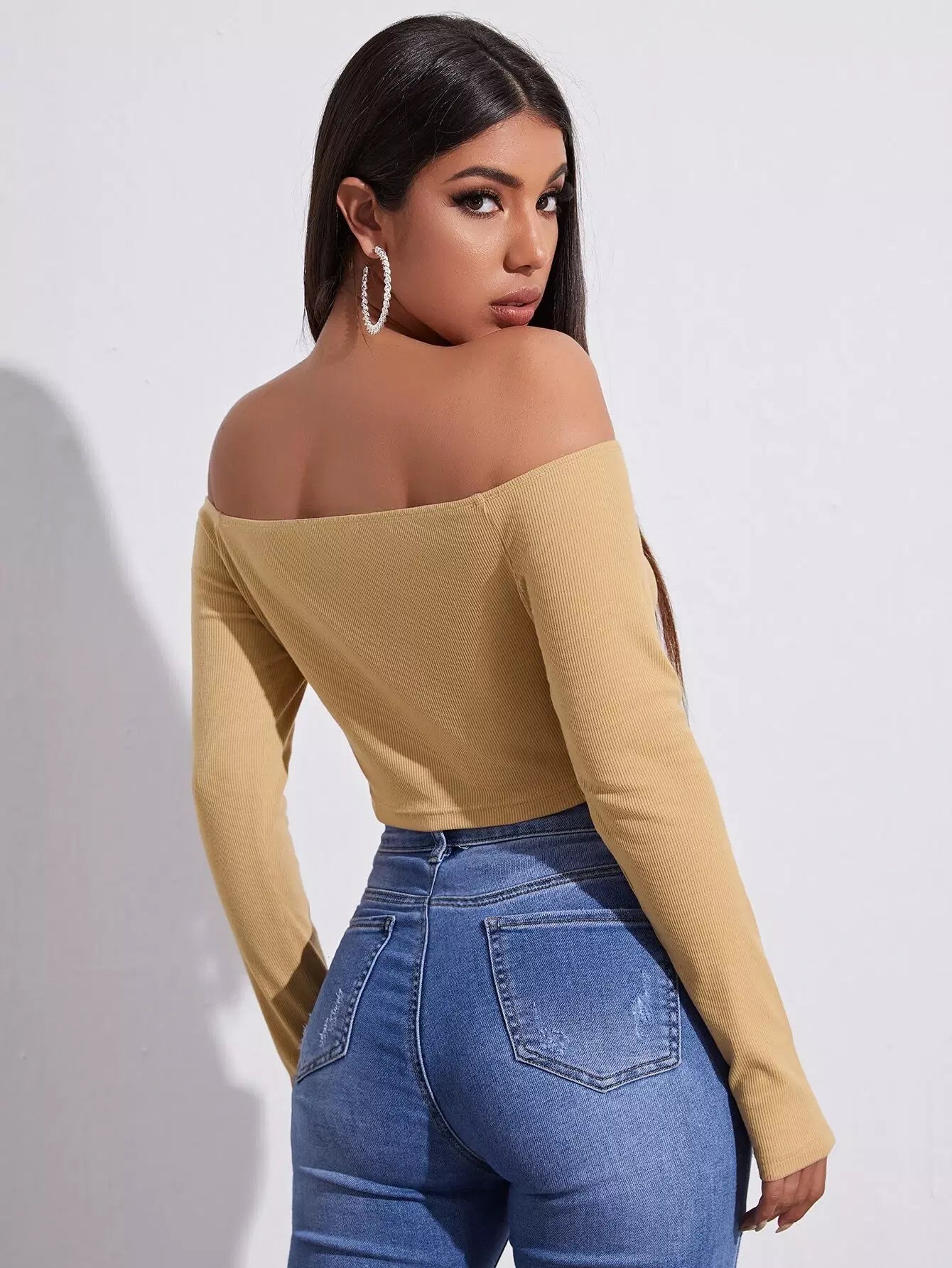 توب قصير قصير قصير من الأمام بفتحة من دون أكتاف