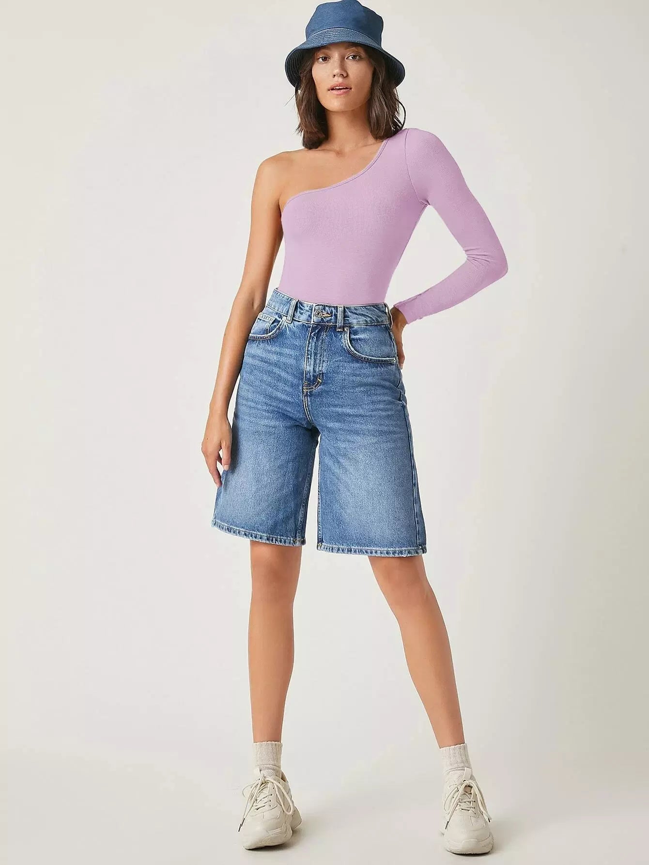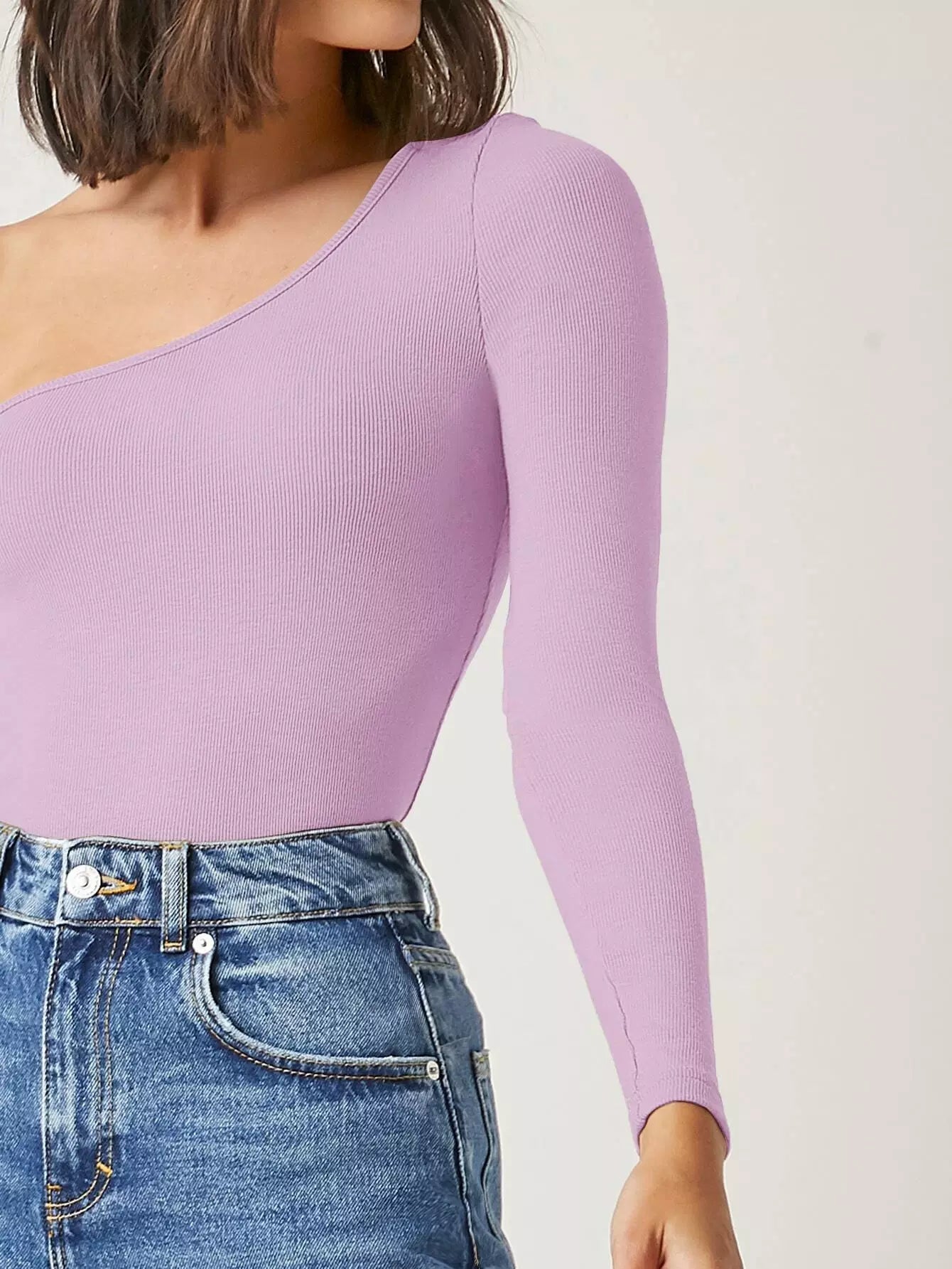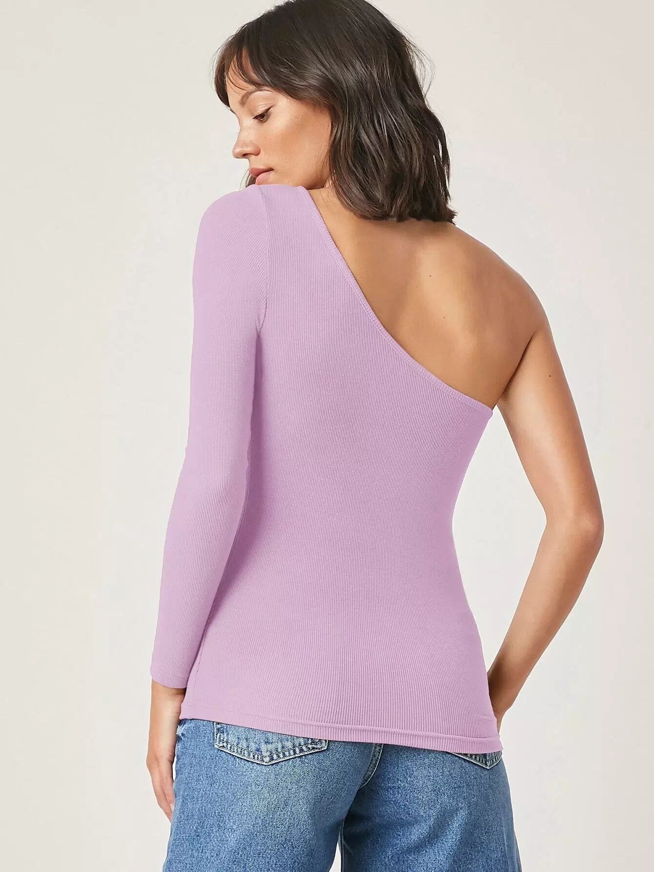 بلوزة بكتف واحد على شكل واحد ضيق ضيق على كتف واحد