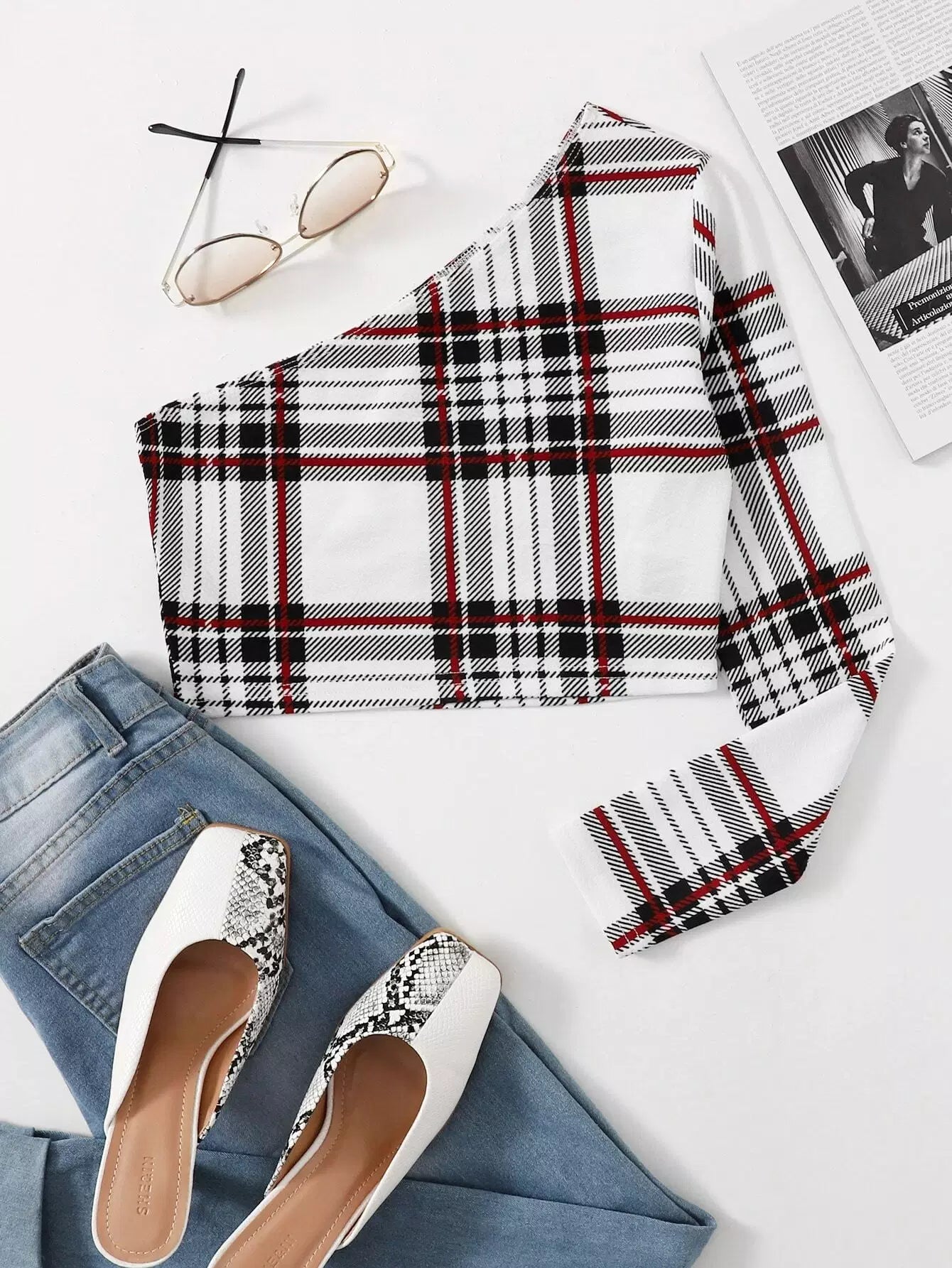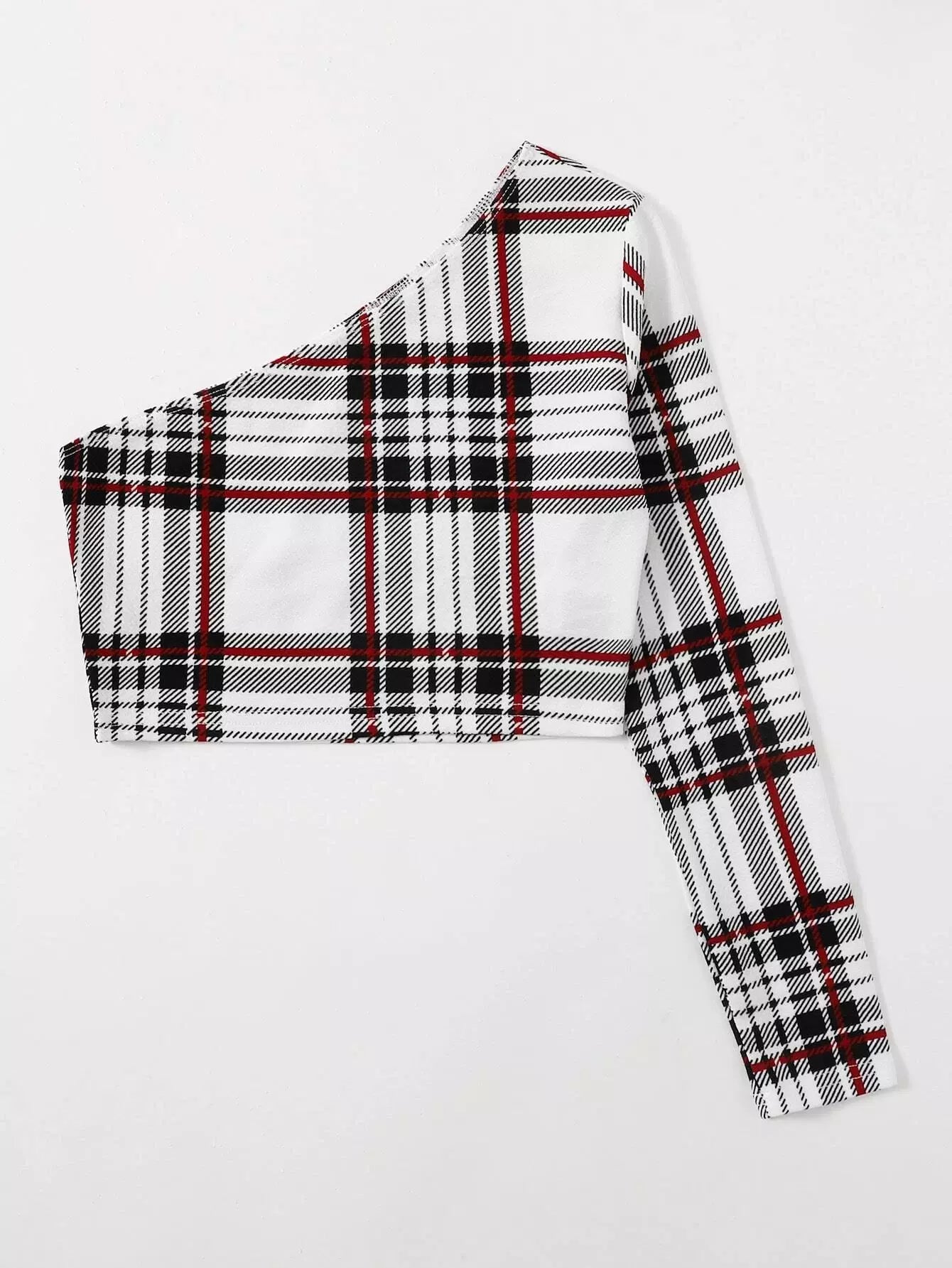 تي شيرت قصير قصير منقوش بكتف واحد منقوش