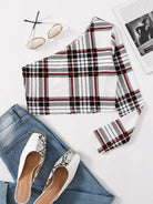 النساء - تي شيرت قصير منقوش بكتف واحد