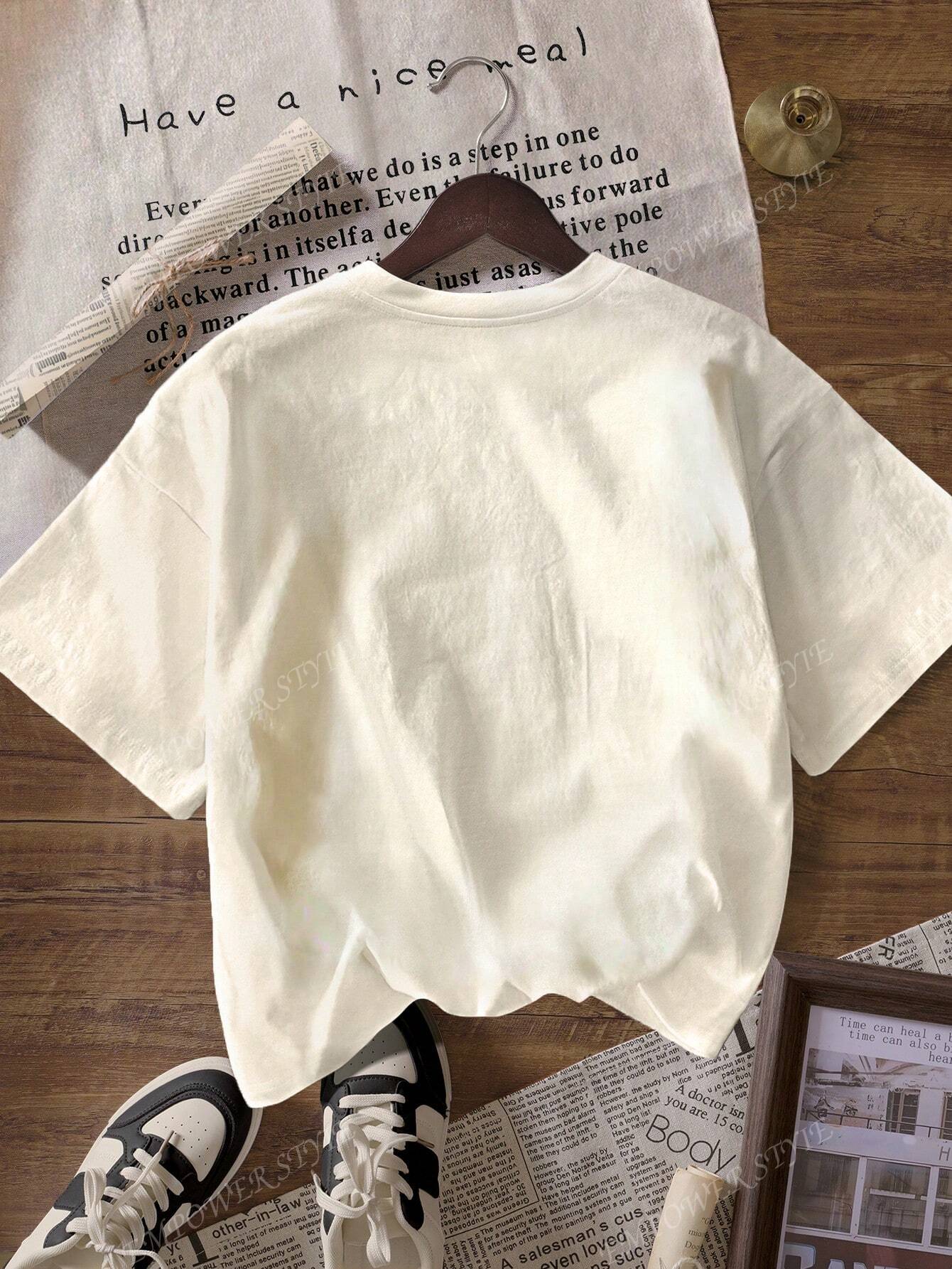 تي شيرت Outer Bank Graphic Print كاجوال بأكمام قصيرة ورقبة دائرية ونمط بسيط
