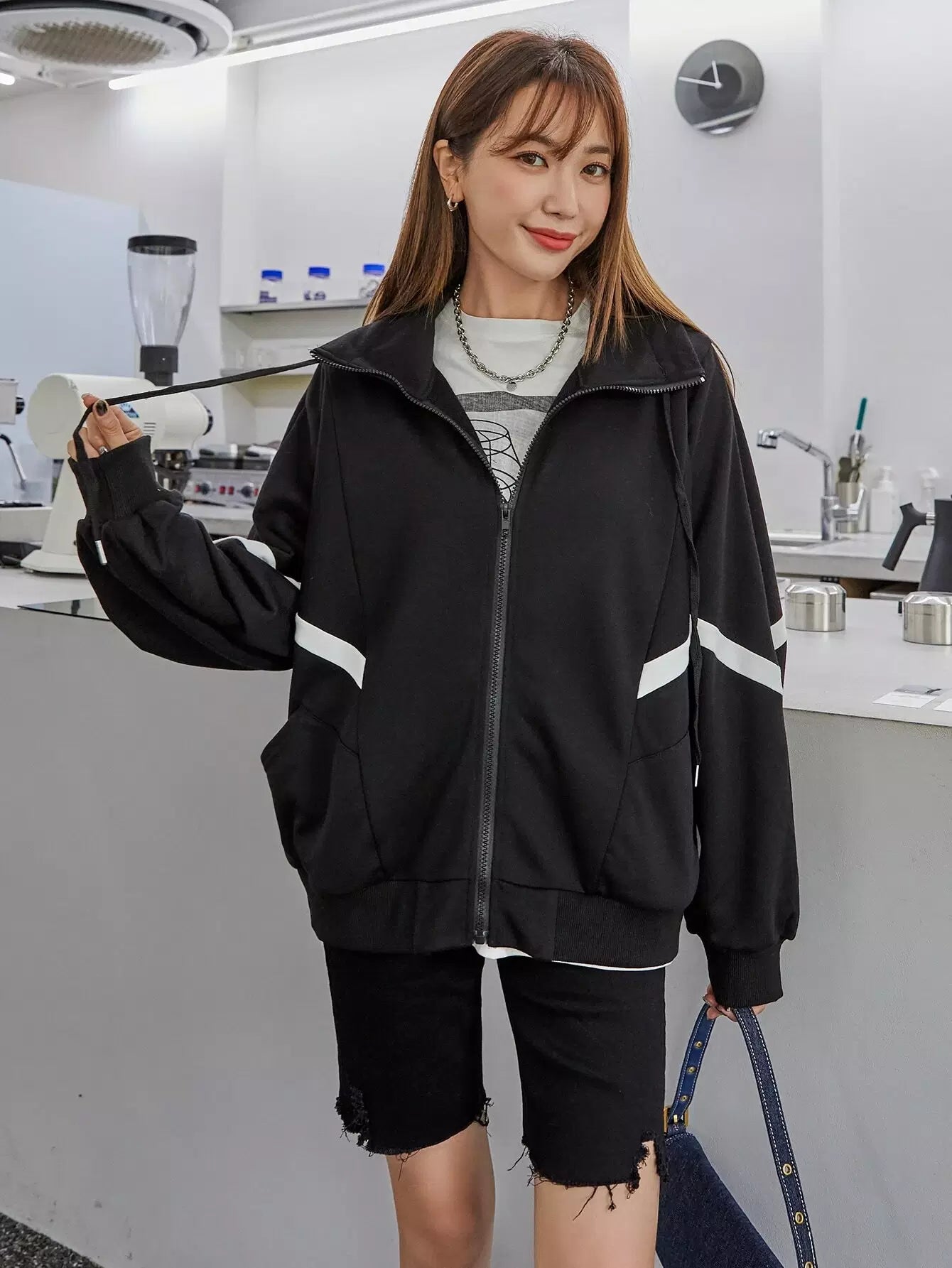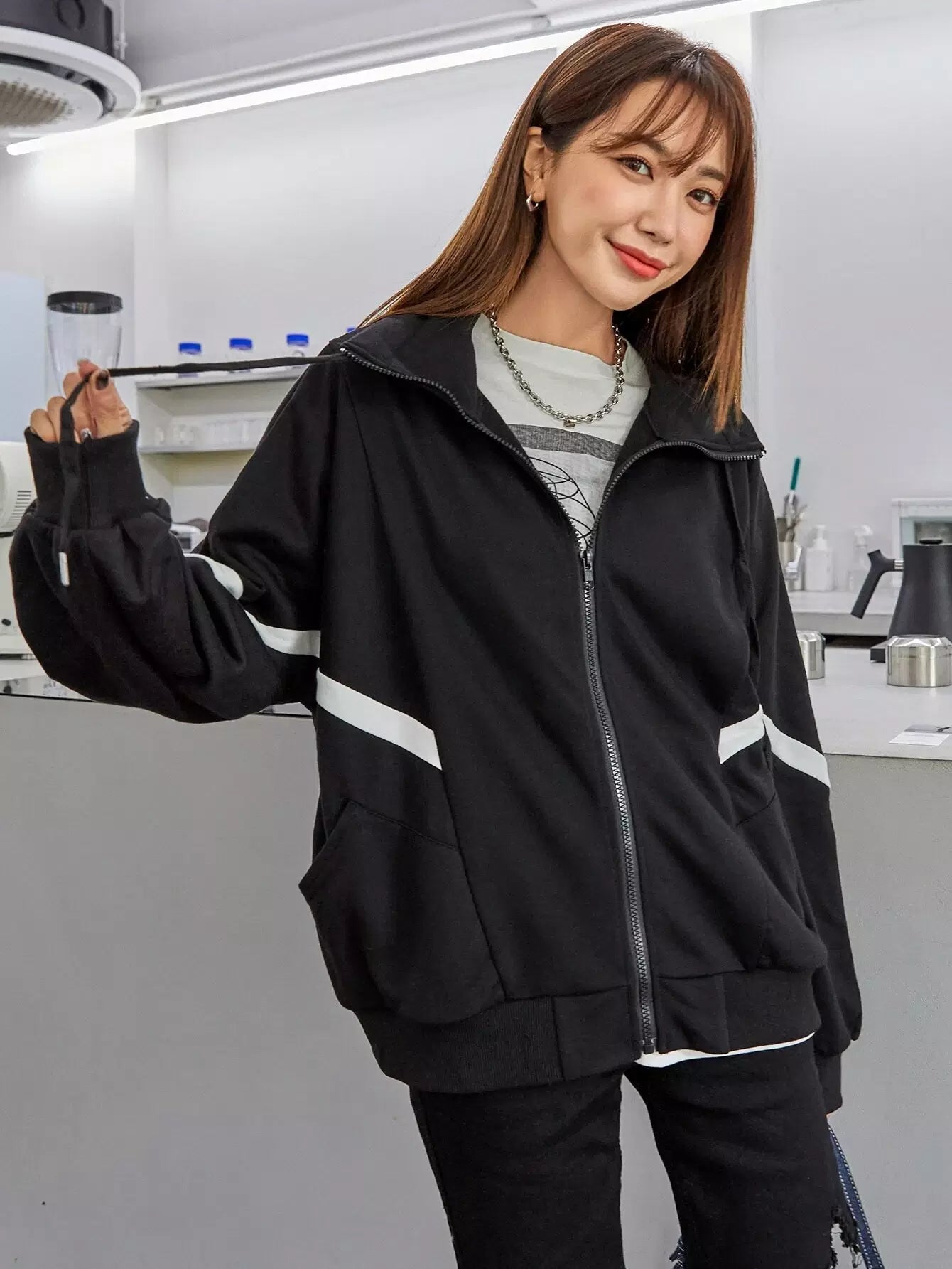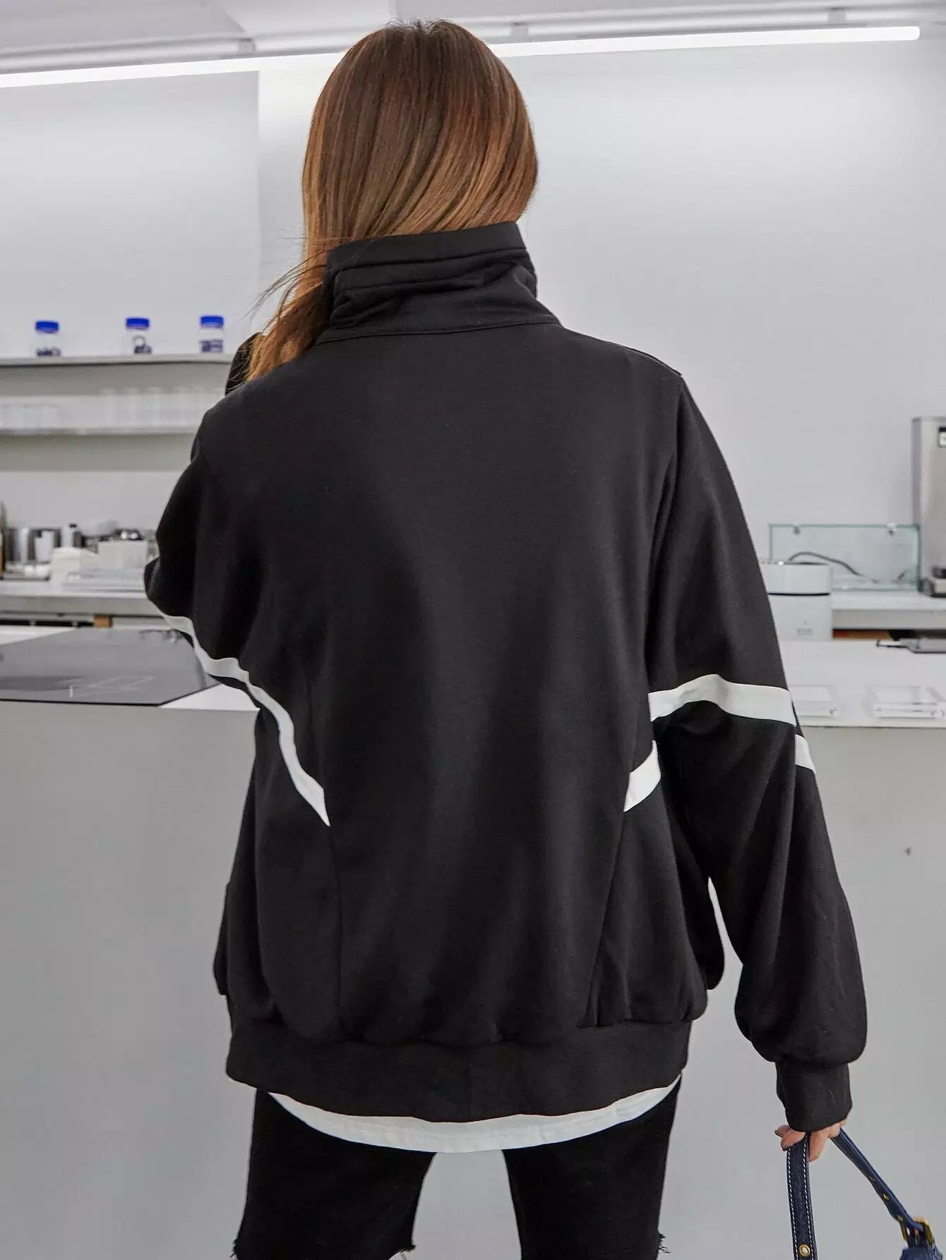 قميص سويت شيرت كبير الحجم بدرزات بلون مغاير وسحاب للأعلى