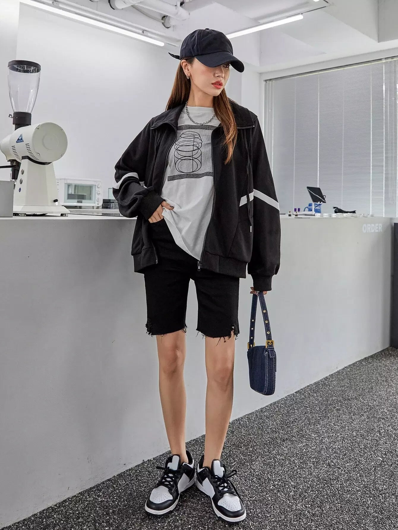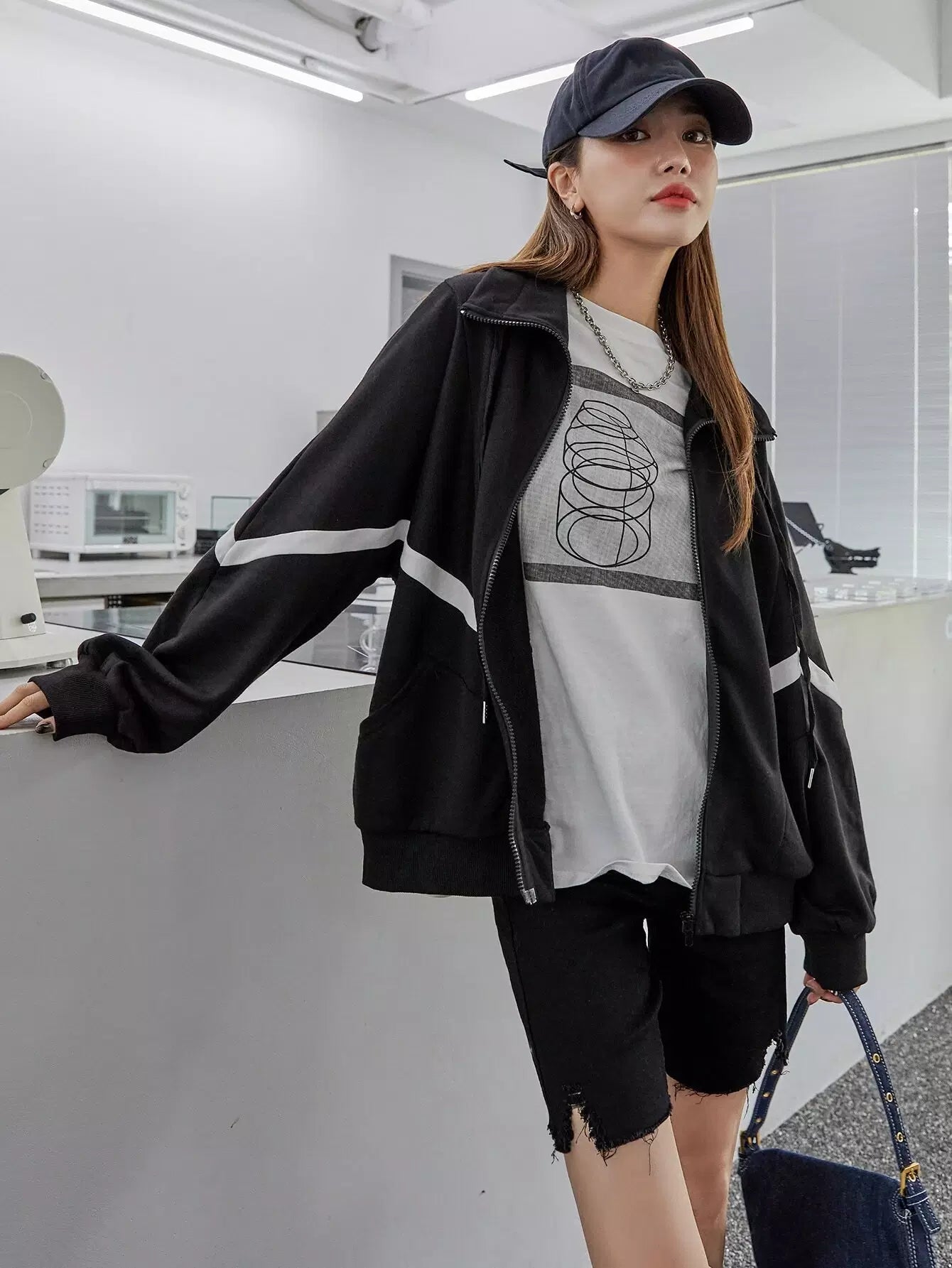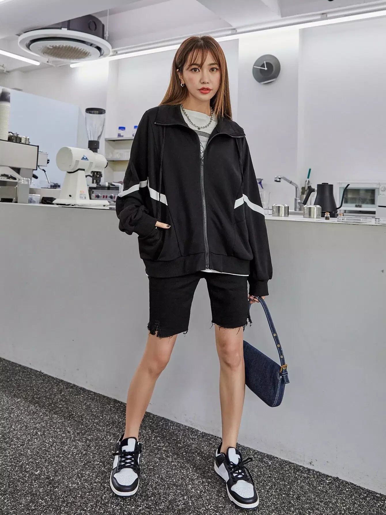 قميص سويت شيرت كبير الحجم بدرزات بلون مغاير وسحاب للأعلى