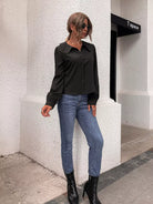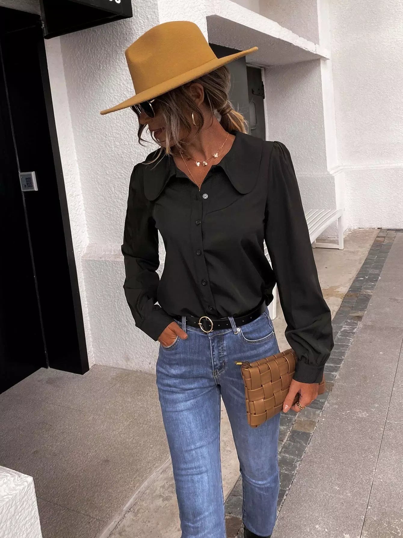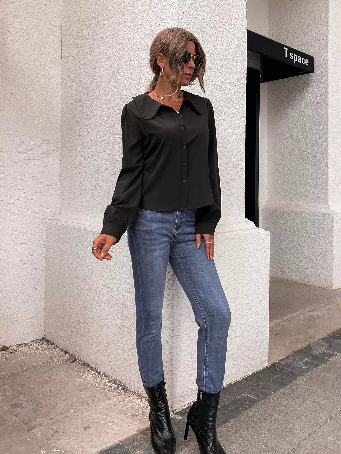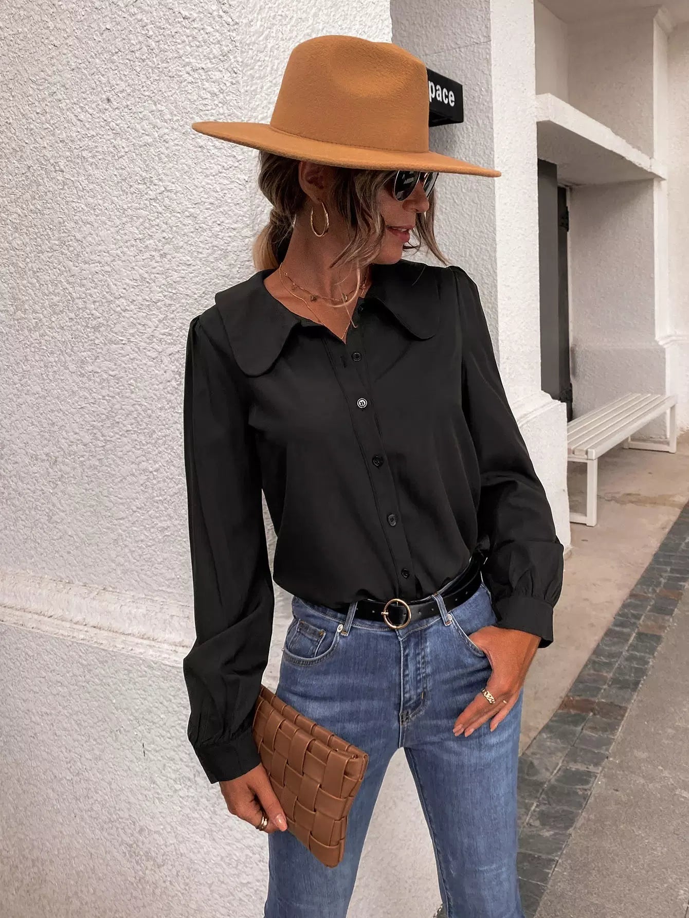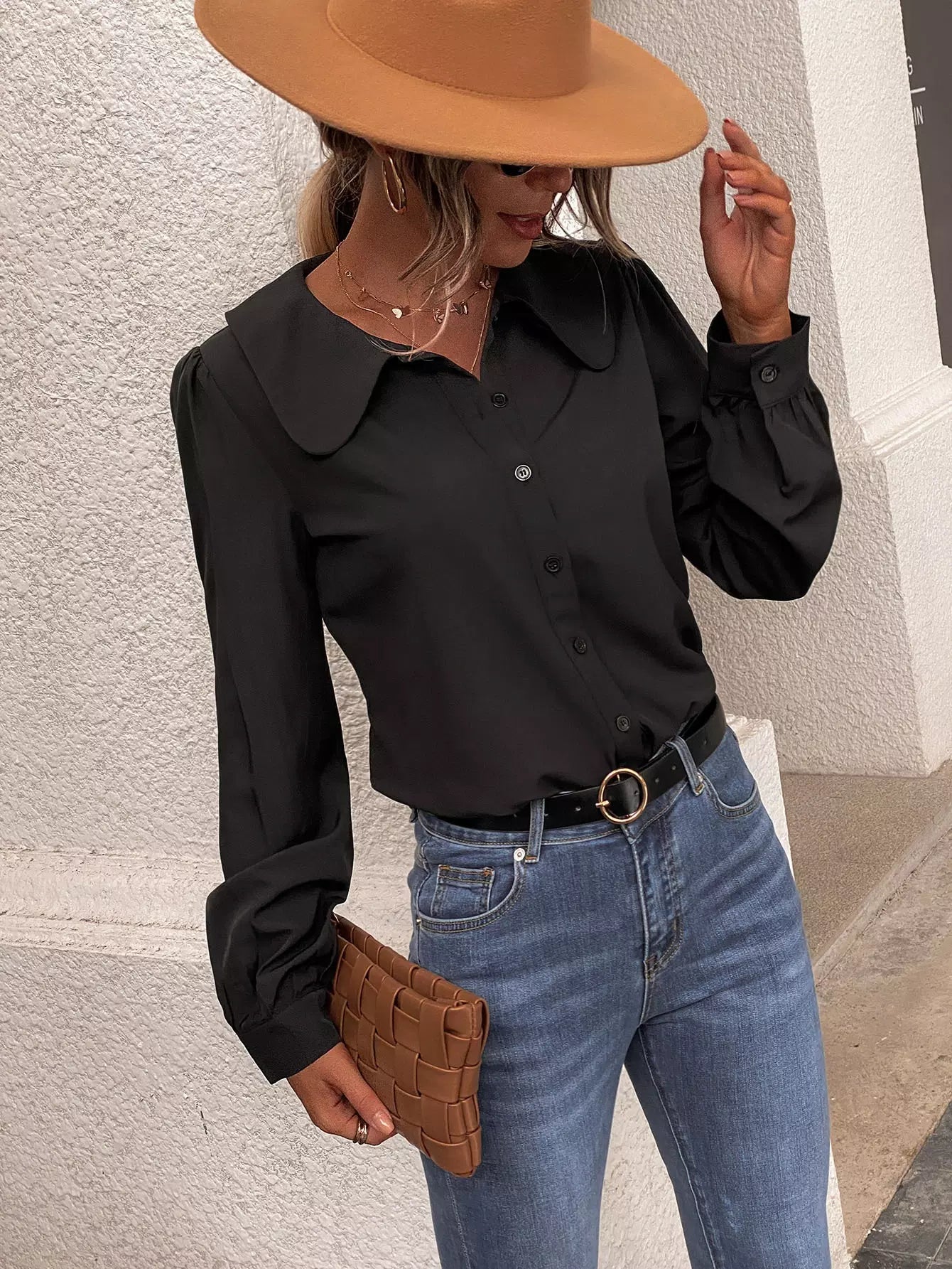 بلوزة بأكمام بياقة بيتر بان بياقة أسقف
