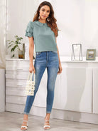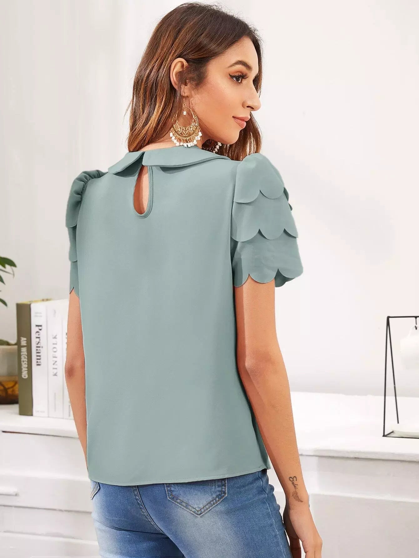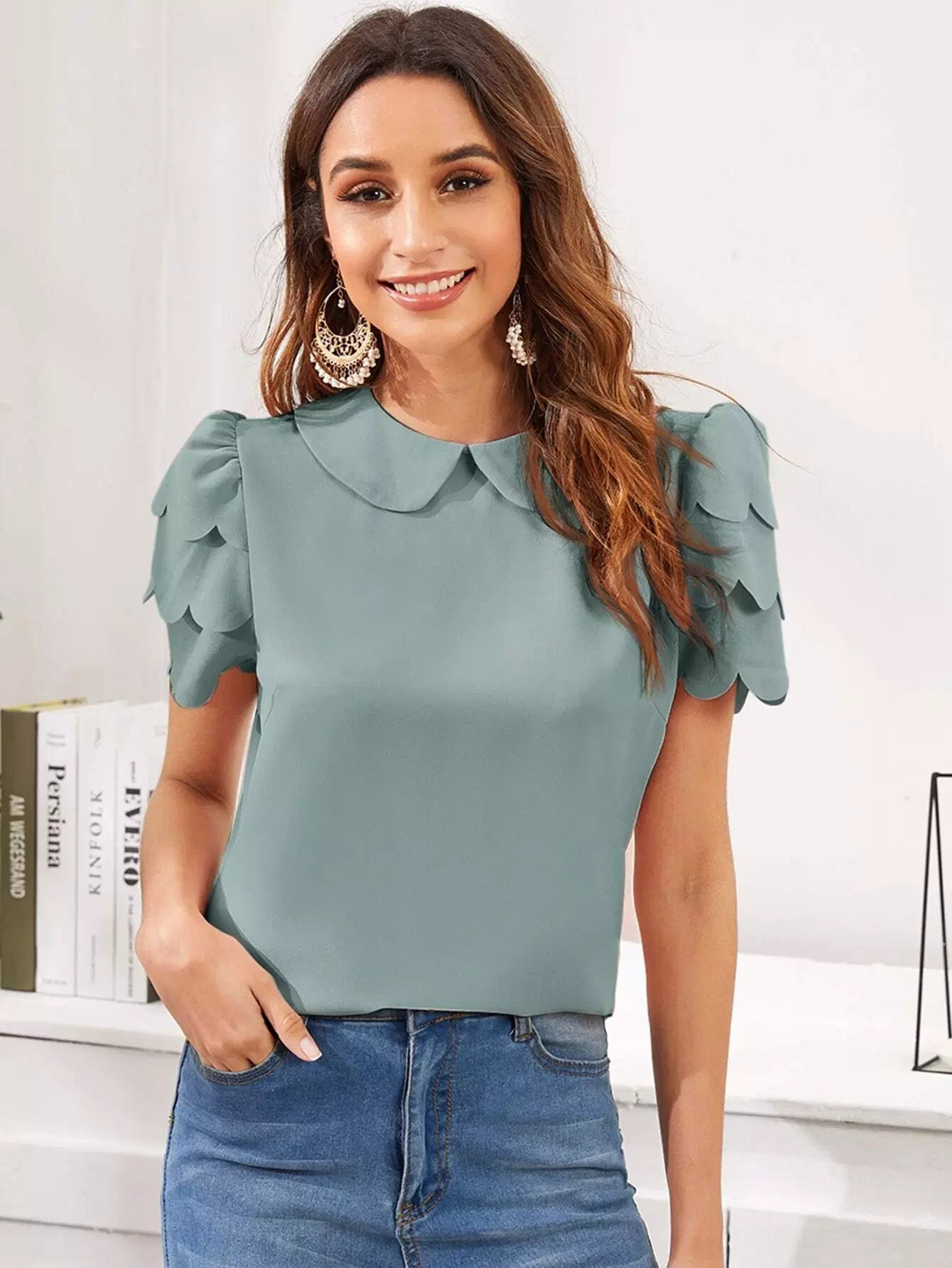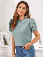 بلوزة بياقة بيتر بان ذات أكمام بياقة بيتر بان ذات طبقات بحافة صدف
