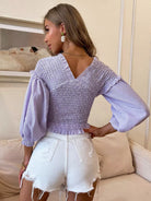 بلوزة قصيرة مخططة بشريط مقلم بشريط كروس أوفر