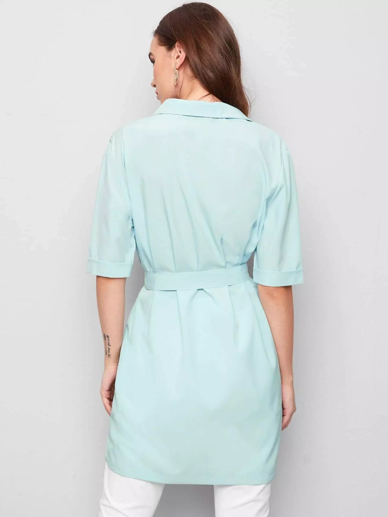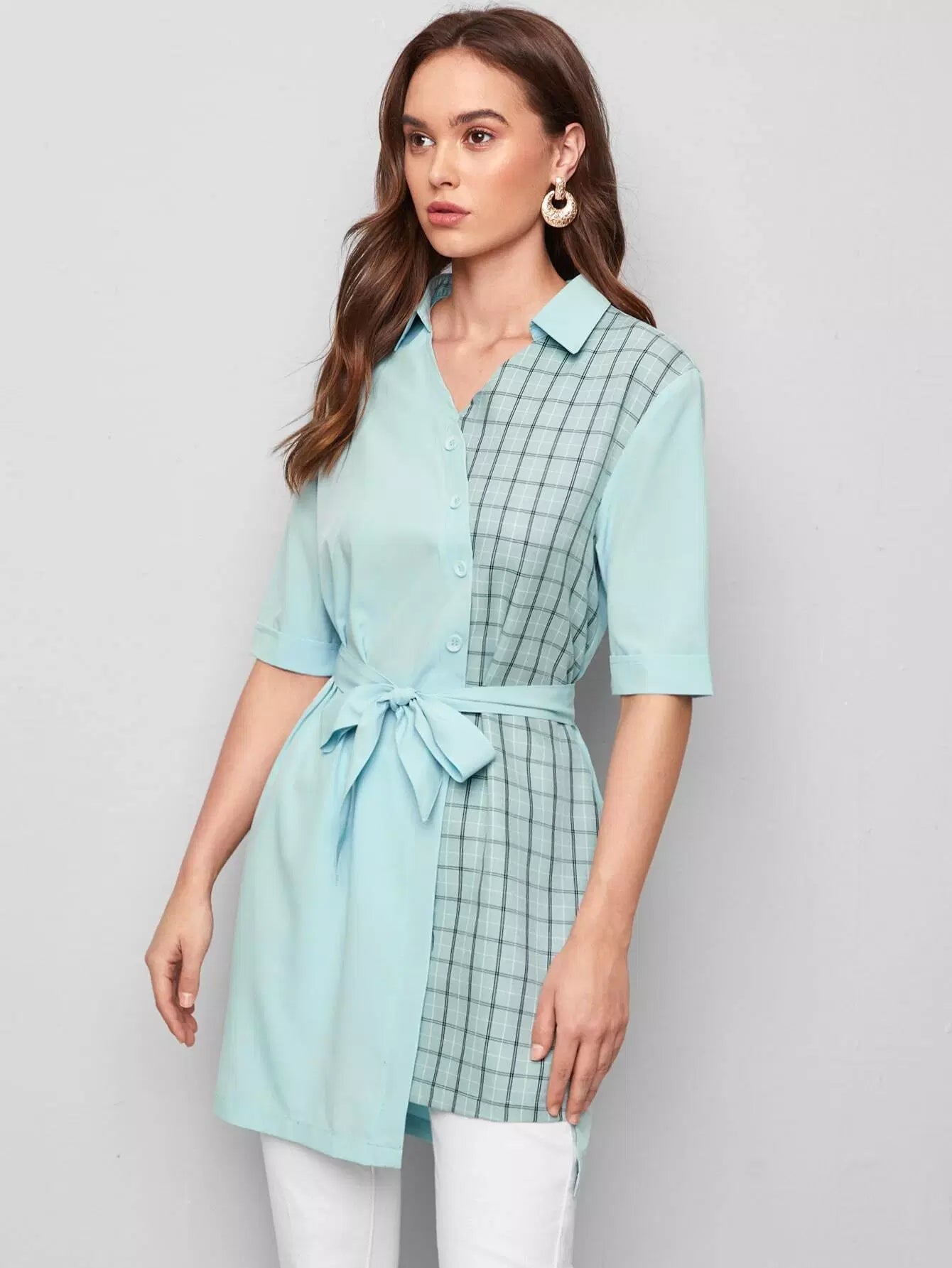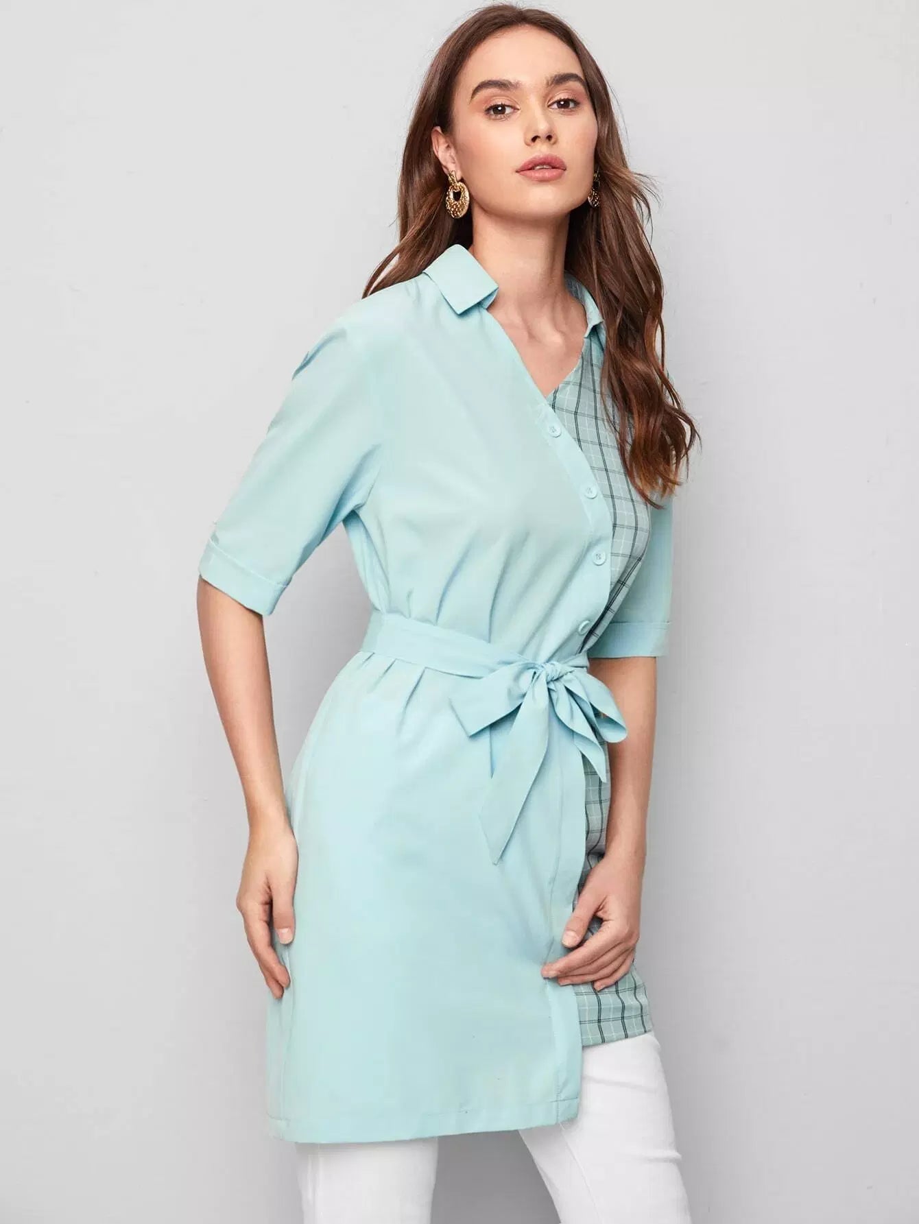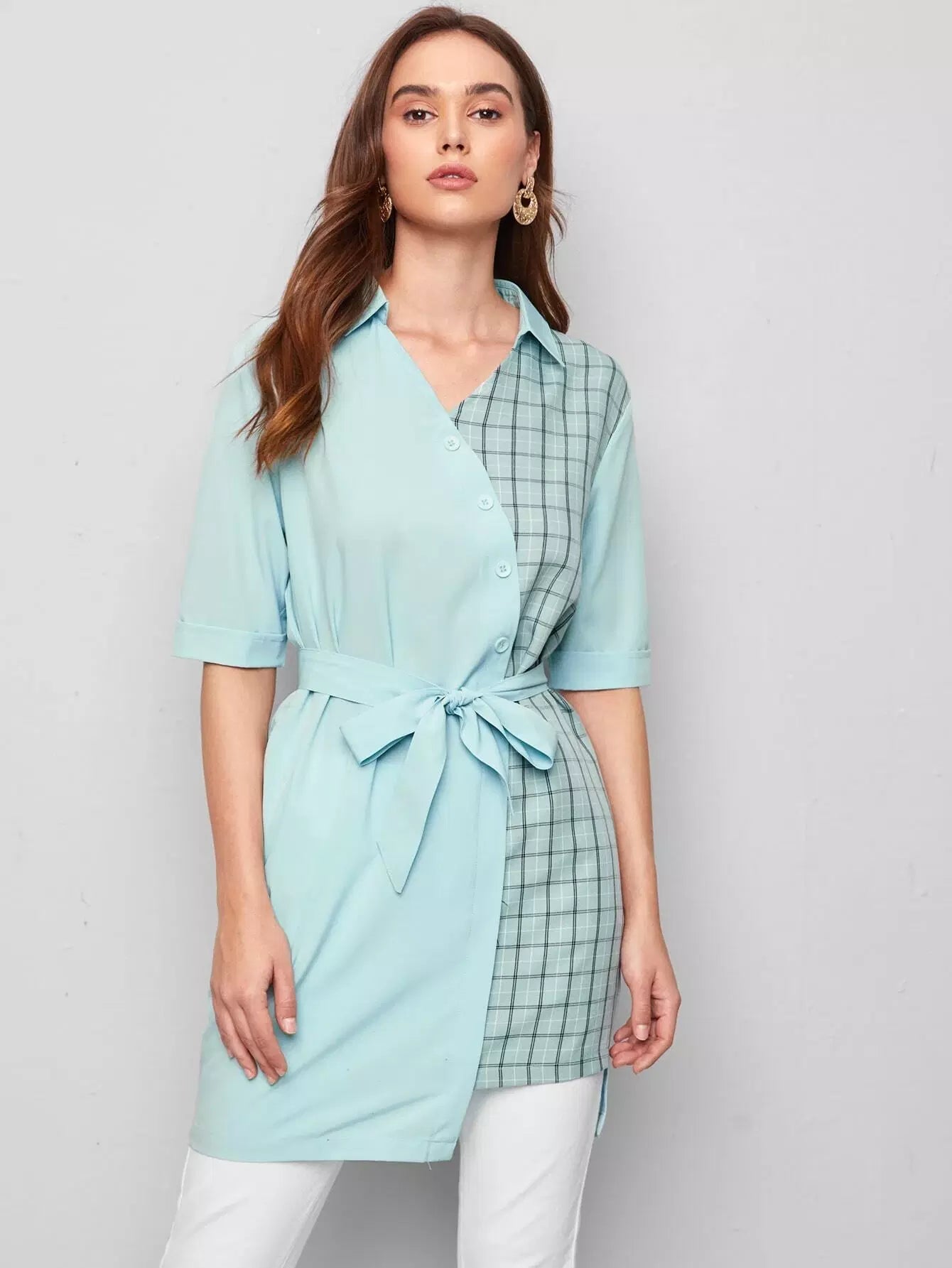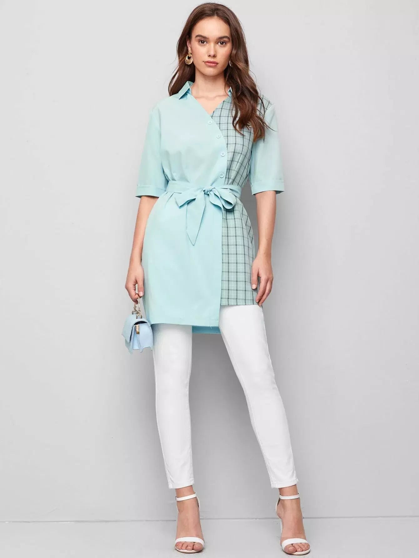 بلوزة منقوشة بحاشية غير متماثلة بدون حزام