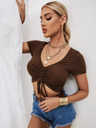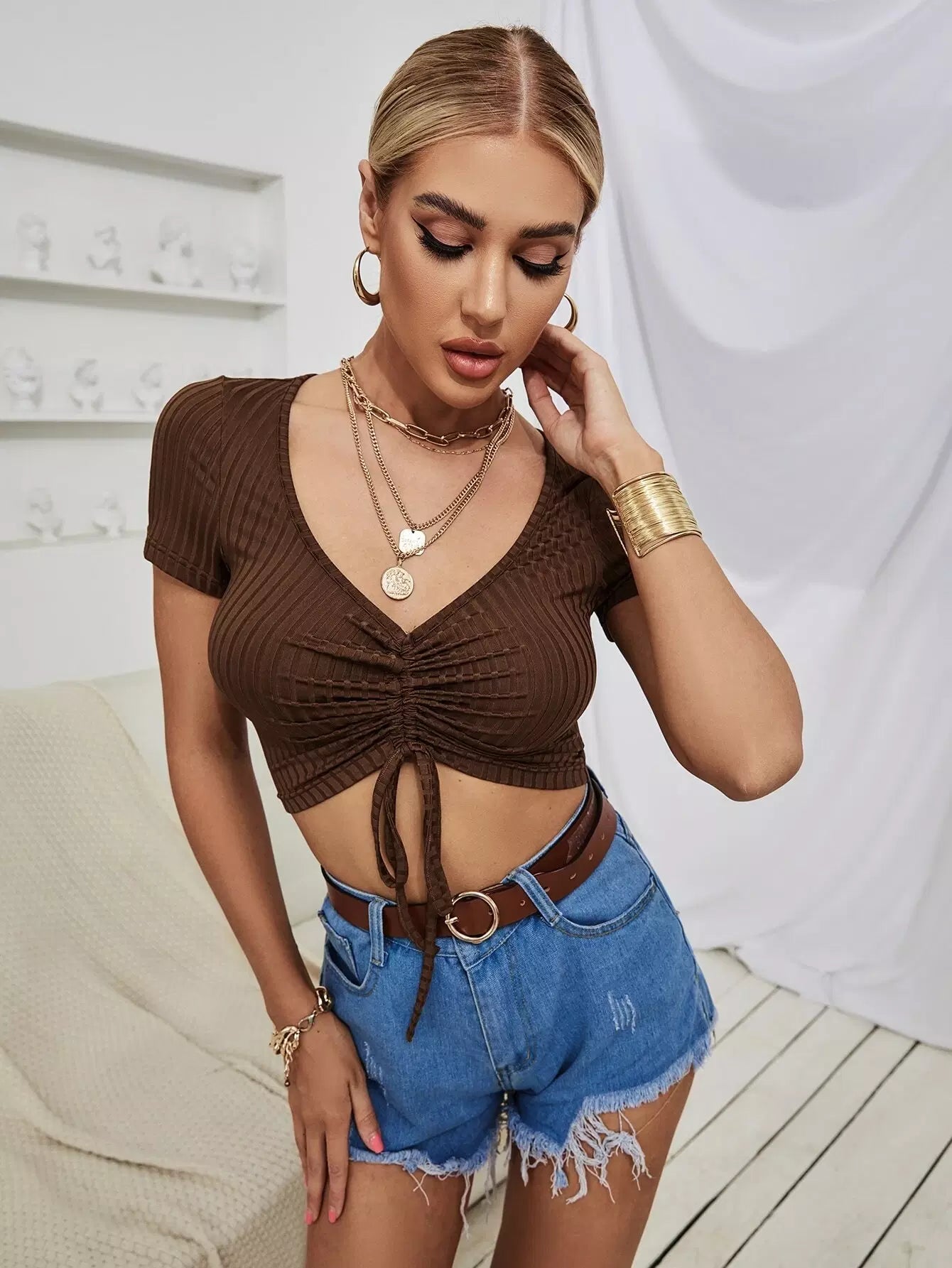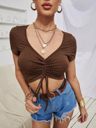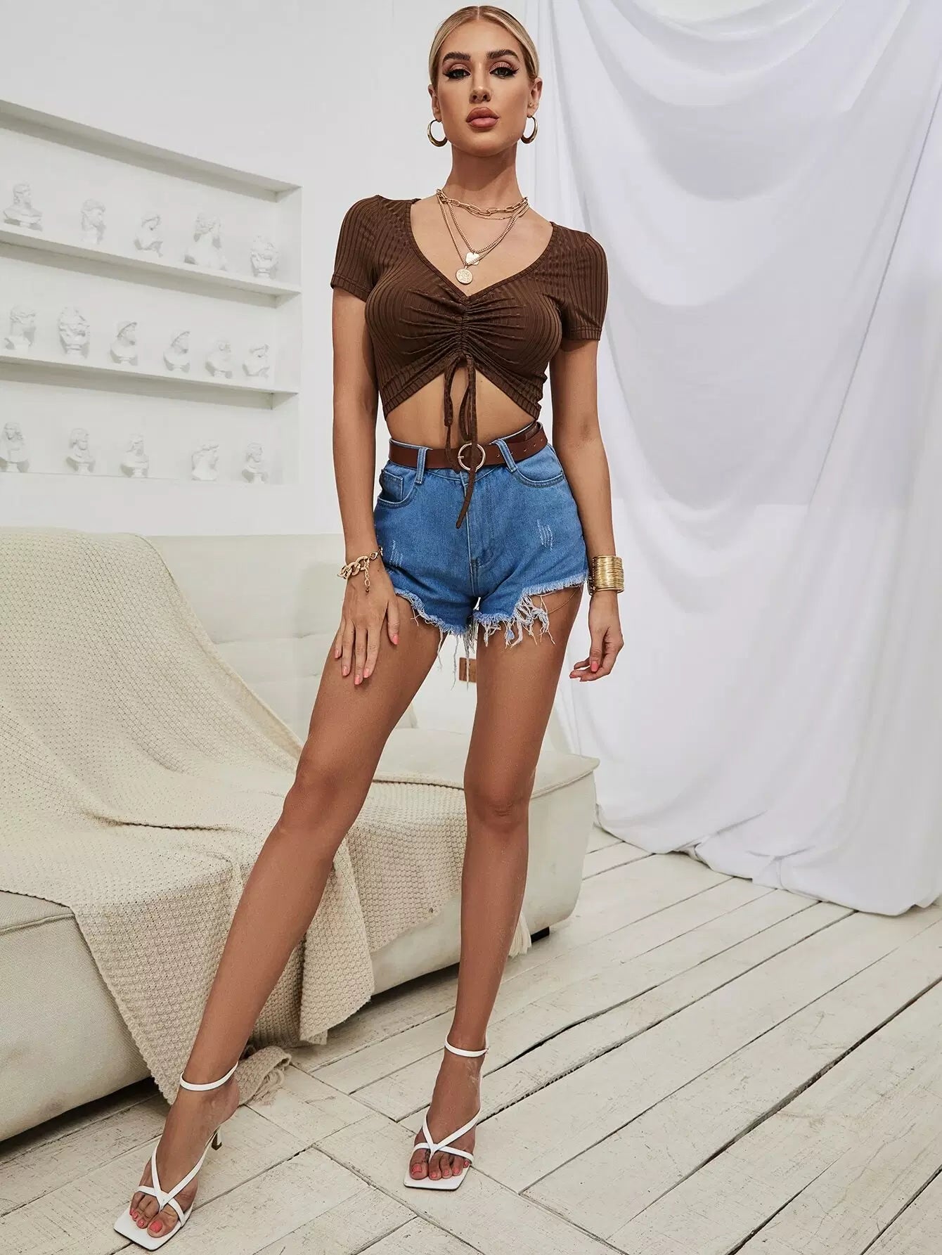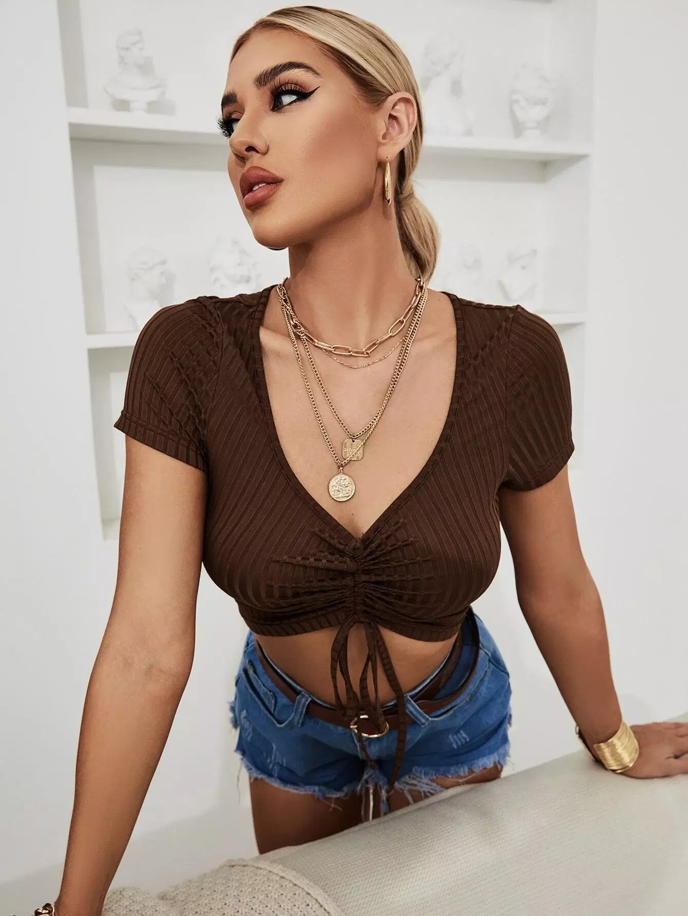 تي شيرت برقبة مكشكشة برقبة مكشكشة برقبة واسعة