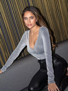 توب برقبة مكشوف براق بفتحة رقبة واسعة على شكل بريق