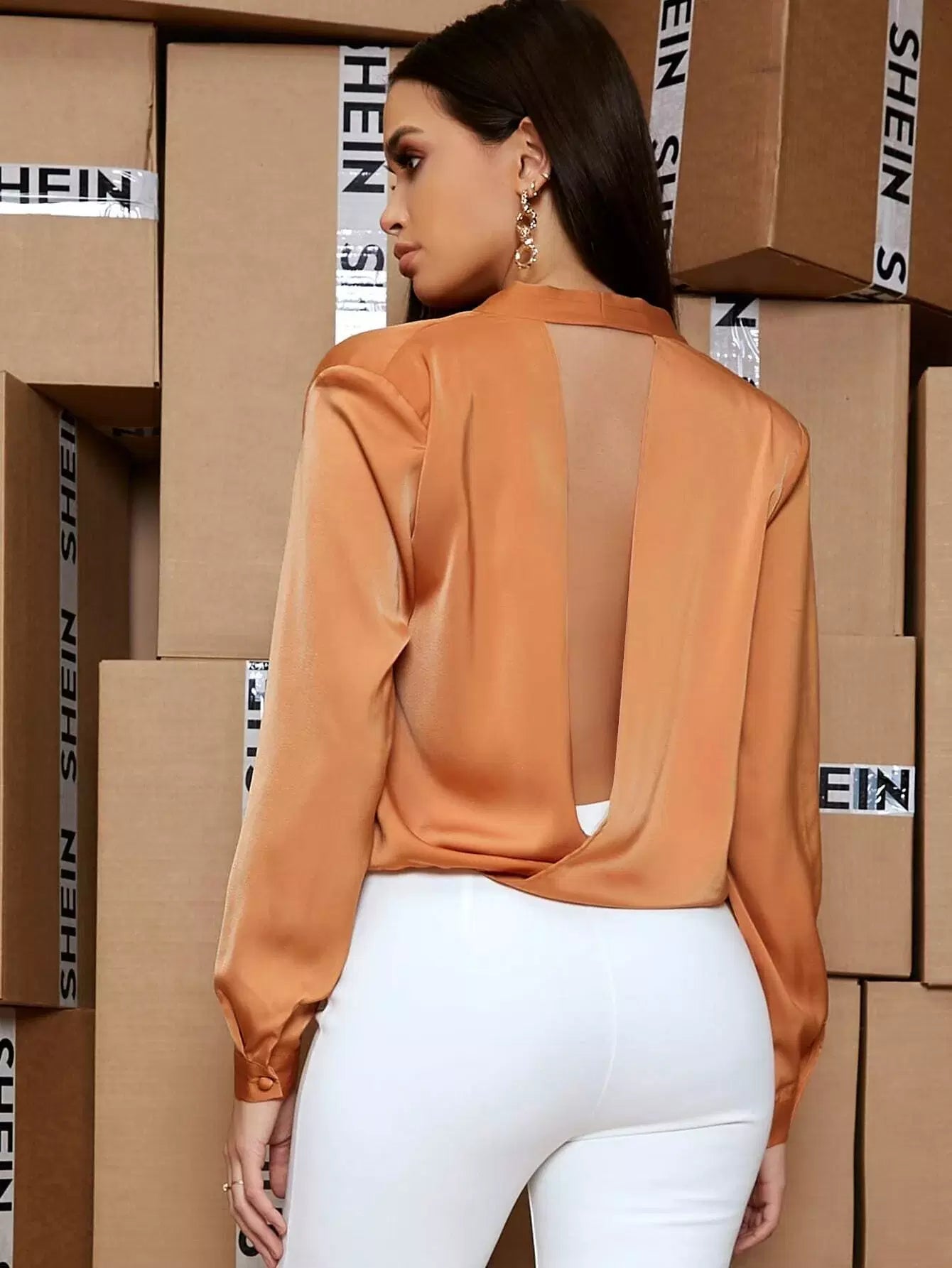 بلوزة برقبة مكشوفة بفتحة عنق واسعة بفتحة عنق ملتوية ومقسمة من الخلف