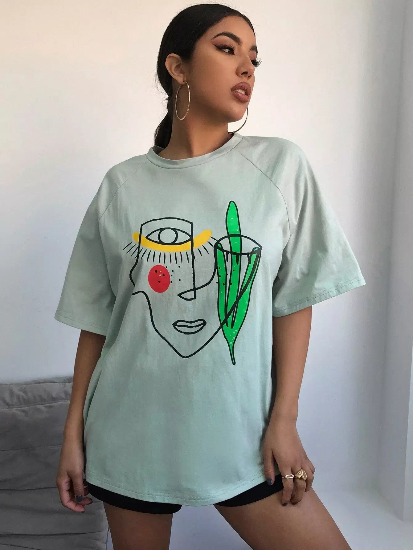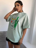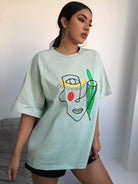 بلوزة بطبعة جرافيكية وأكمام راجلان