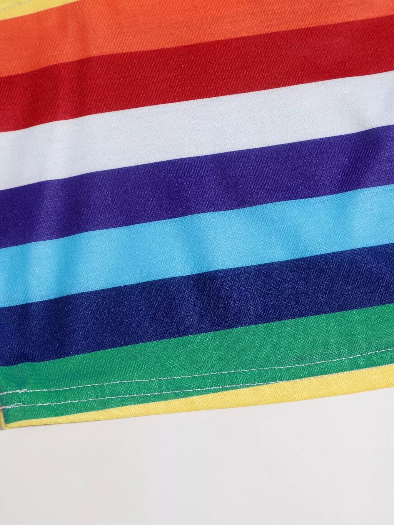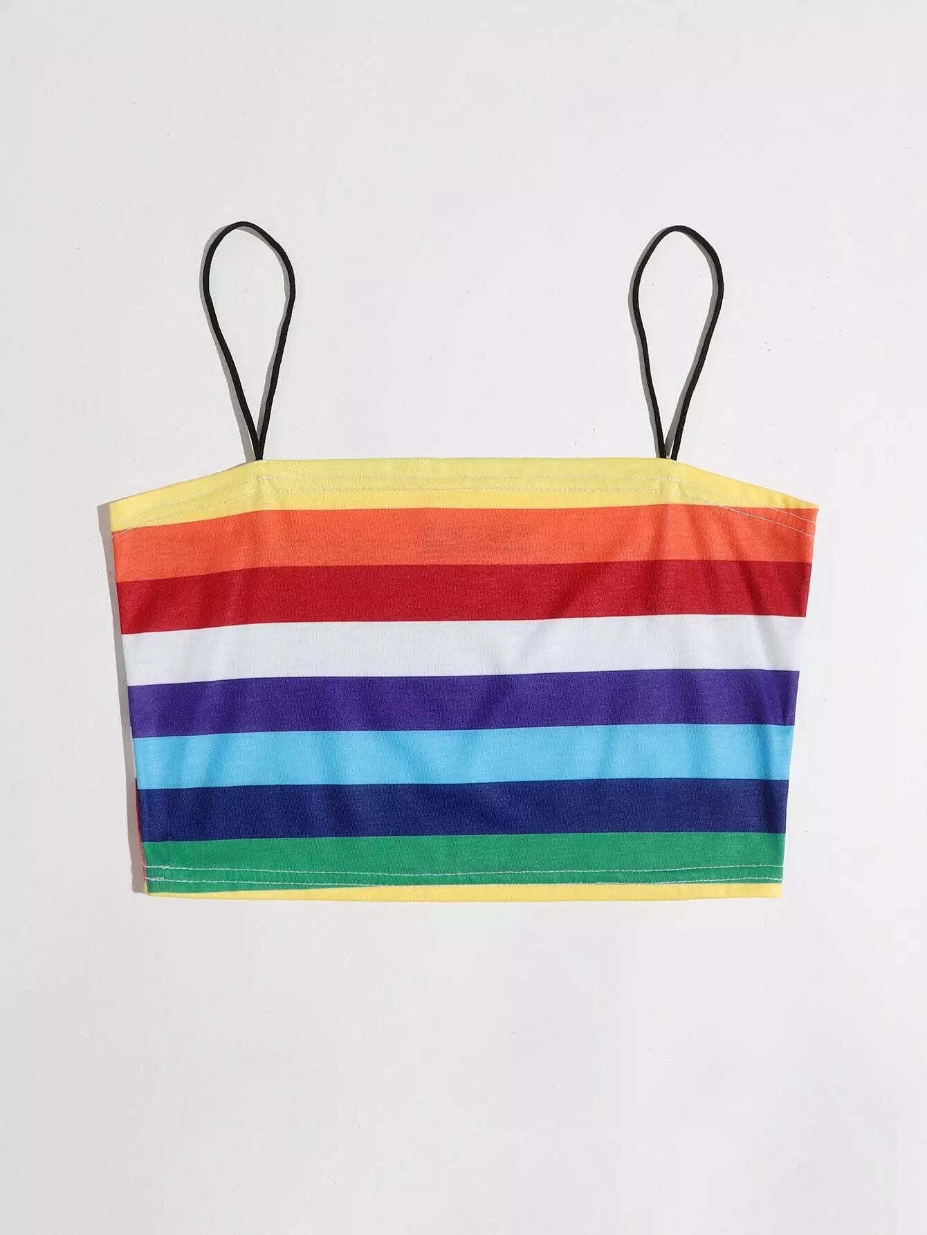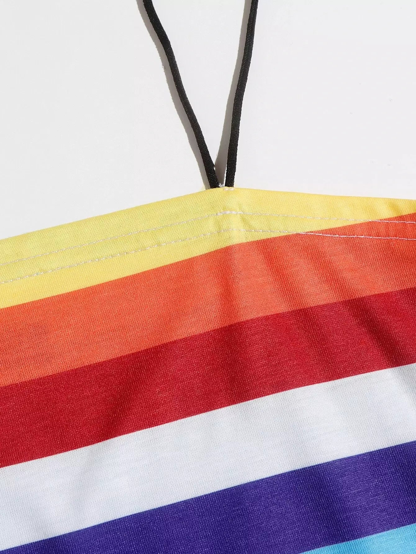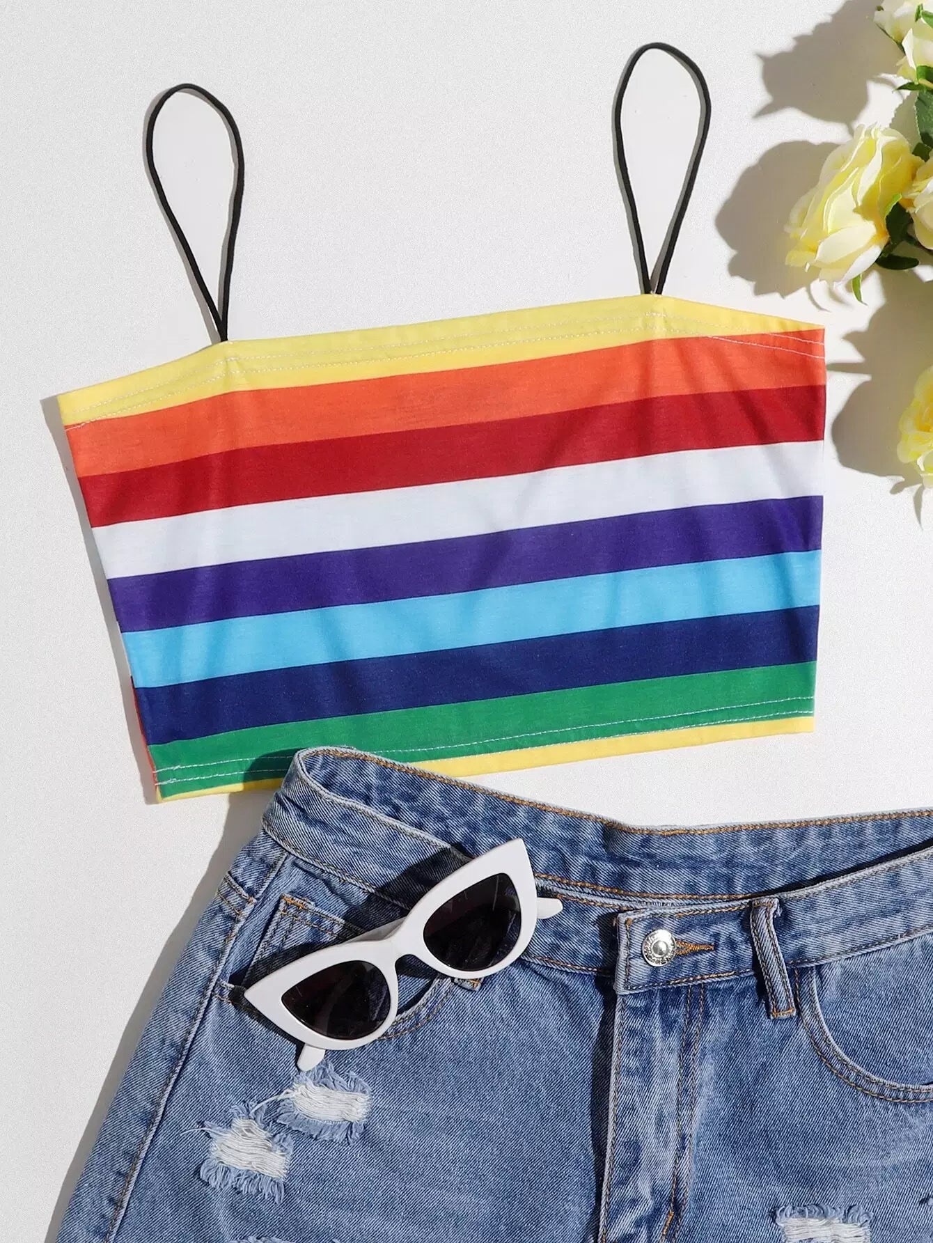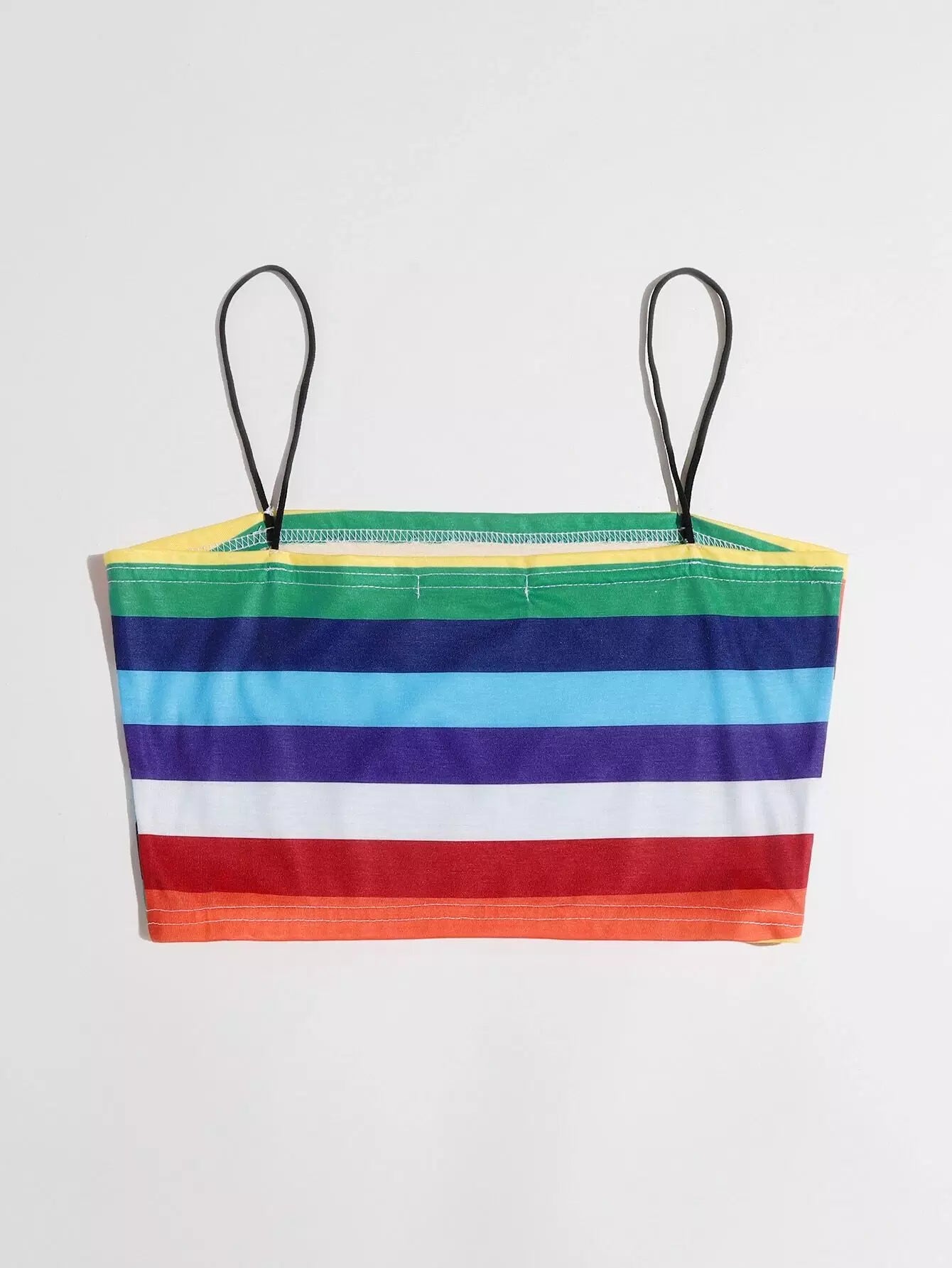 بلوزة قصيرة قصيرة مخططة بألوان قوس قزح