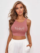 تانك قصير بدون أكمام مزين بأحجار الراين والعسل
