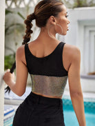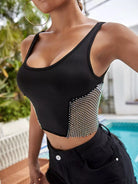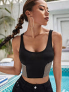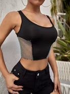 قميص بدون أكمام شبكي مزين بأحجار الراين