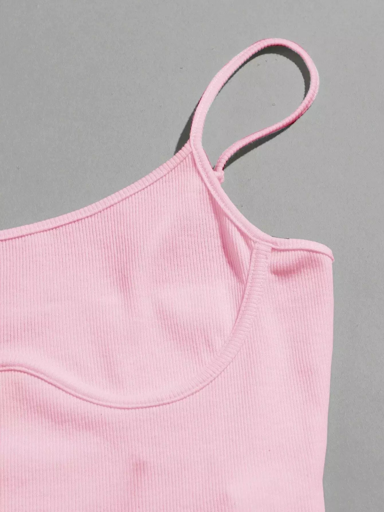 بلوزة كامي سادة محبوكة على شكل ضلع
