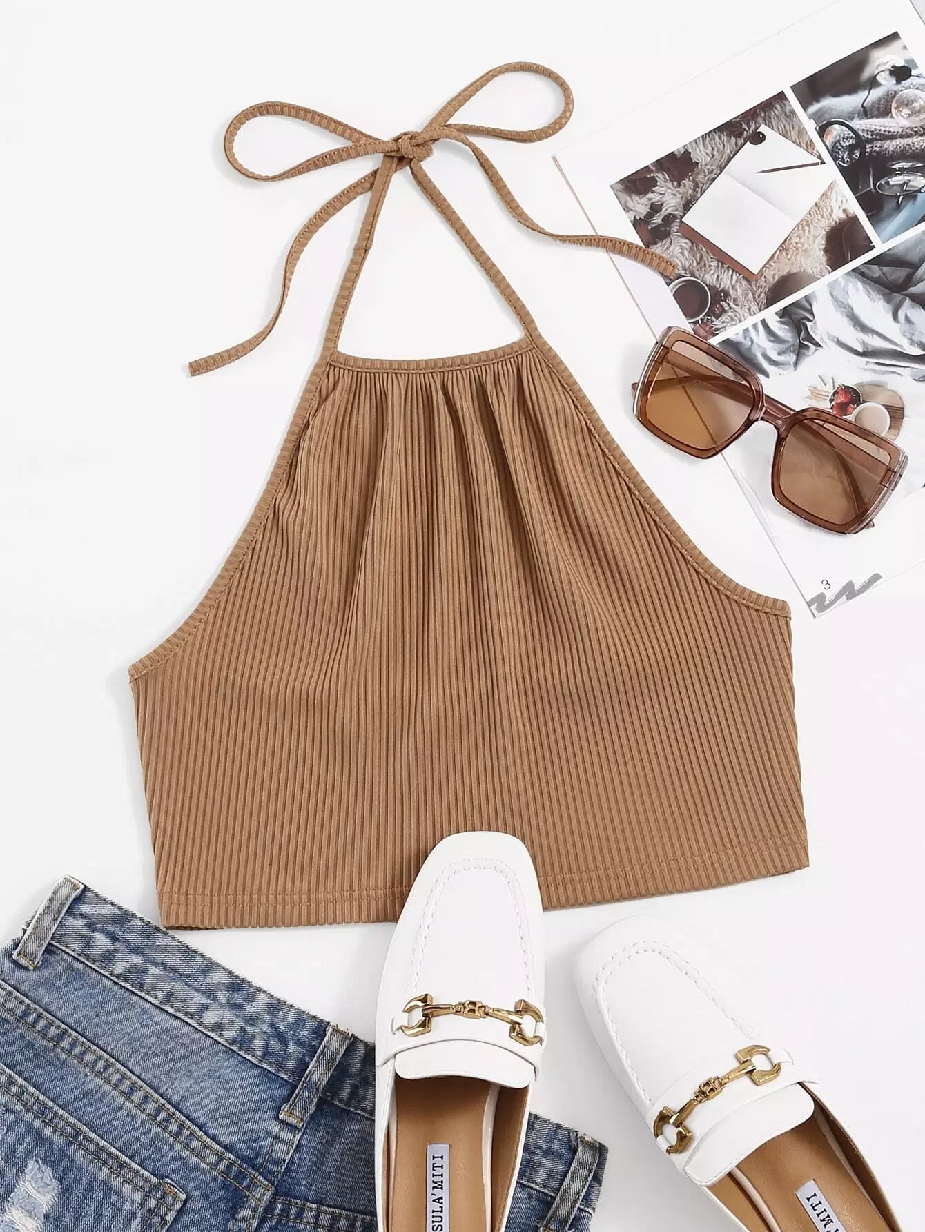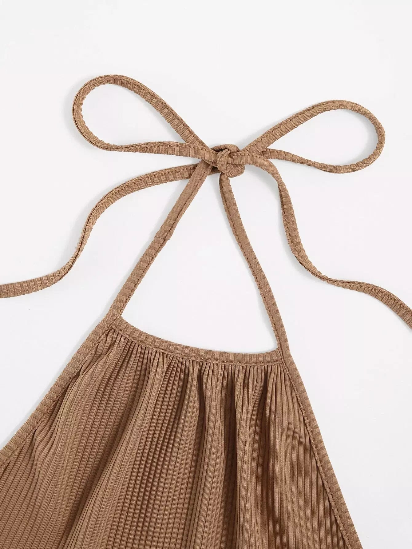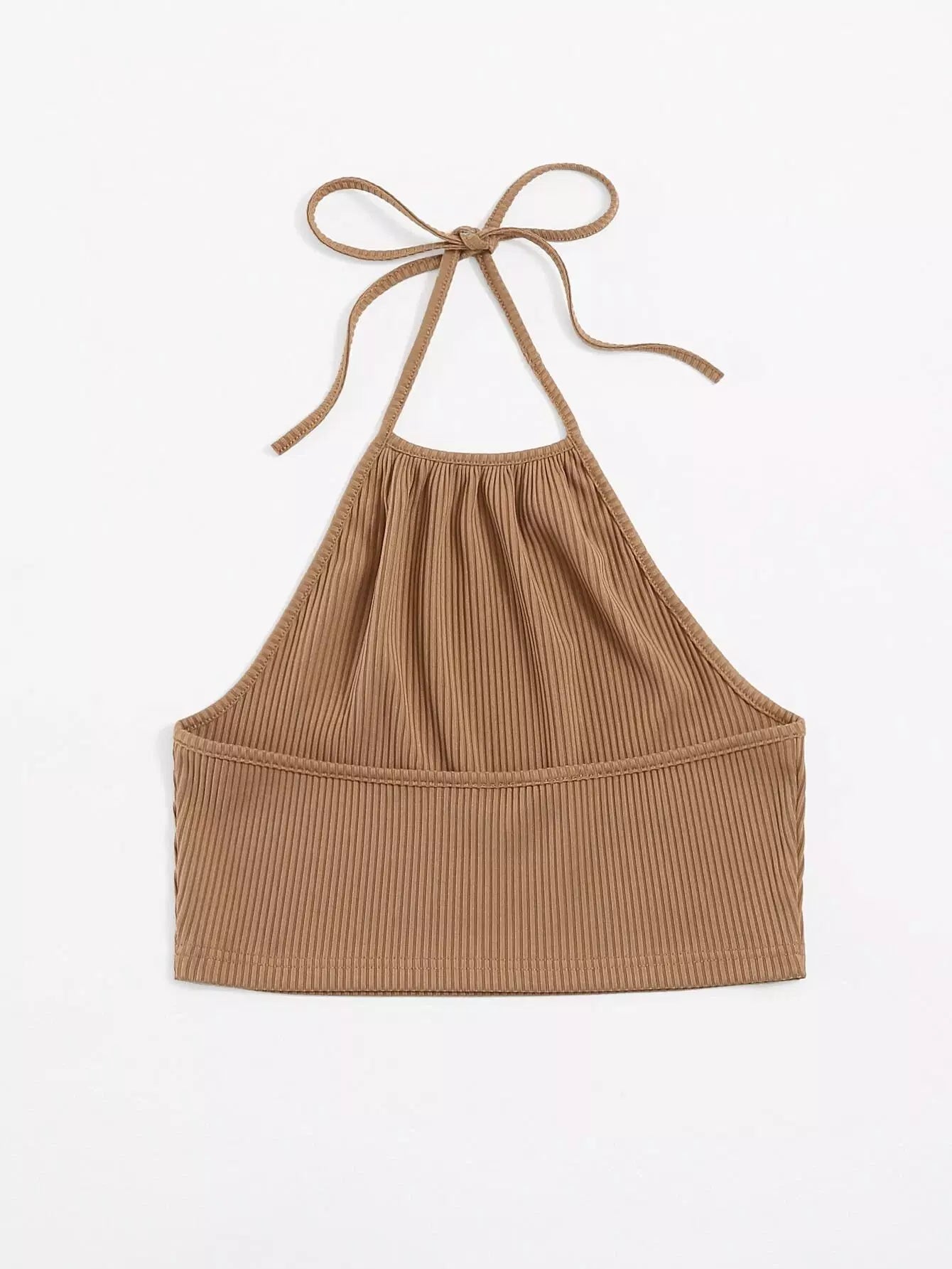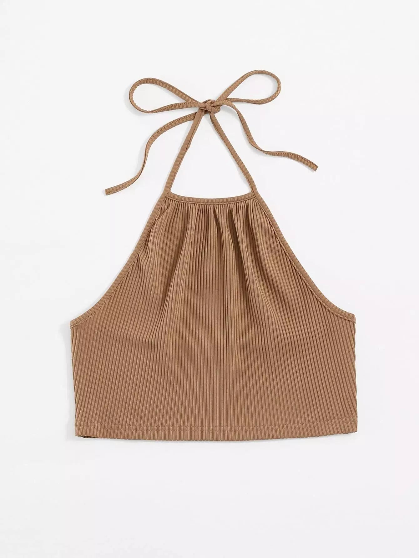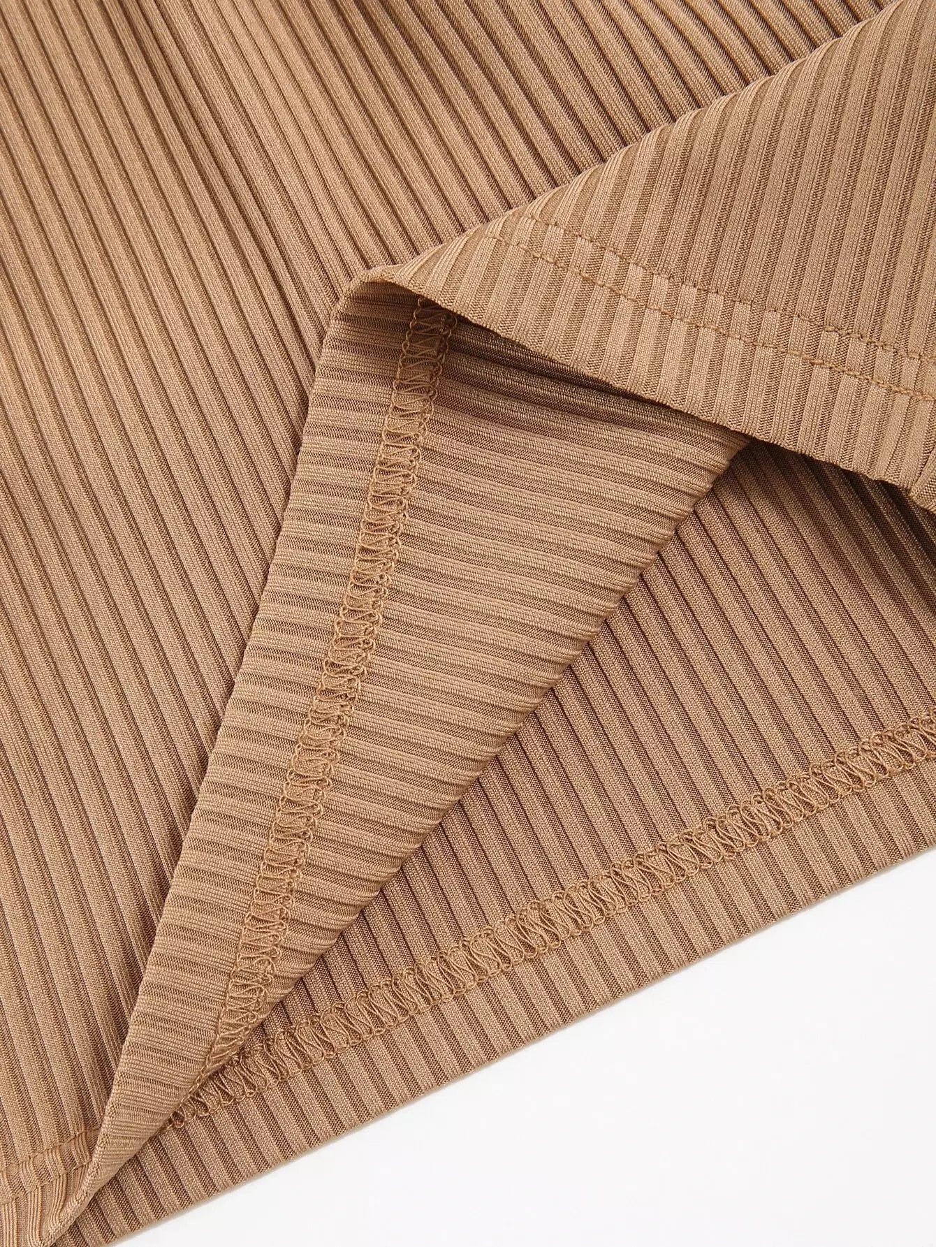 بلوزة بحياكة ضلع محبوكة سادة ذات رسن