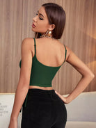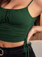 بلوزة كامي قصيرة مضلعة مكشكشة برباط سحب