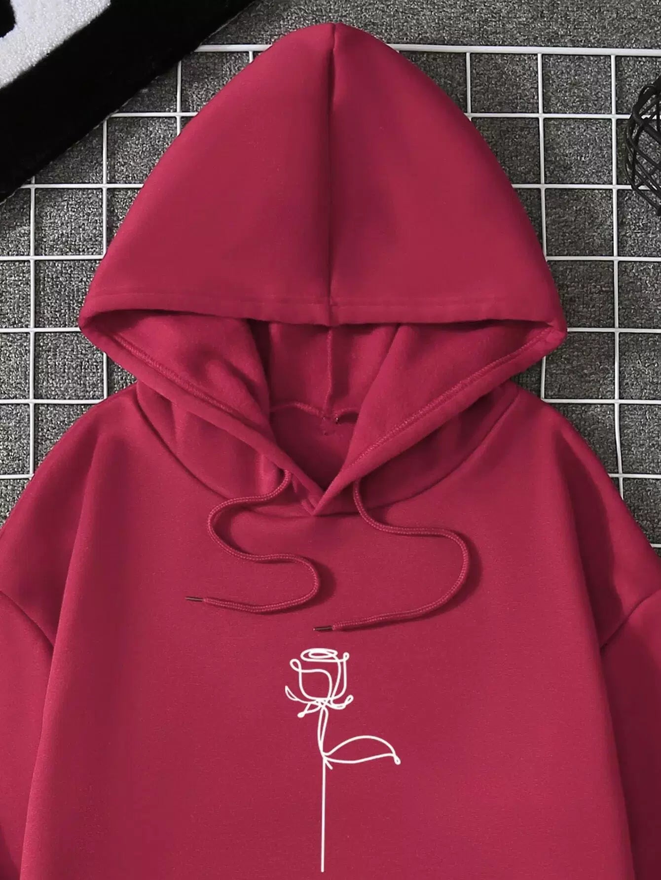 هودي بطبعة ورود مبطنة بطباعة حرارية