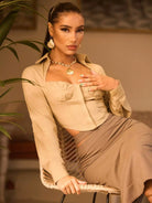 بلوزة قصيرة مكشكشة على الصدر مكشكشة