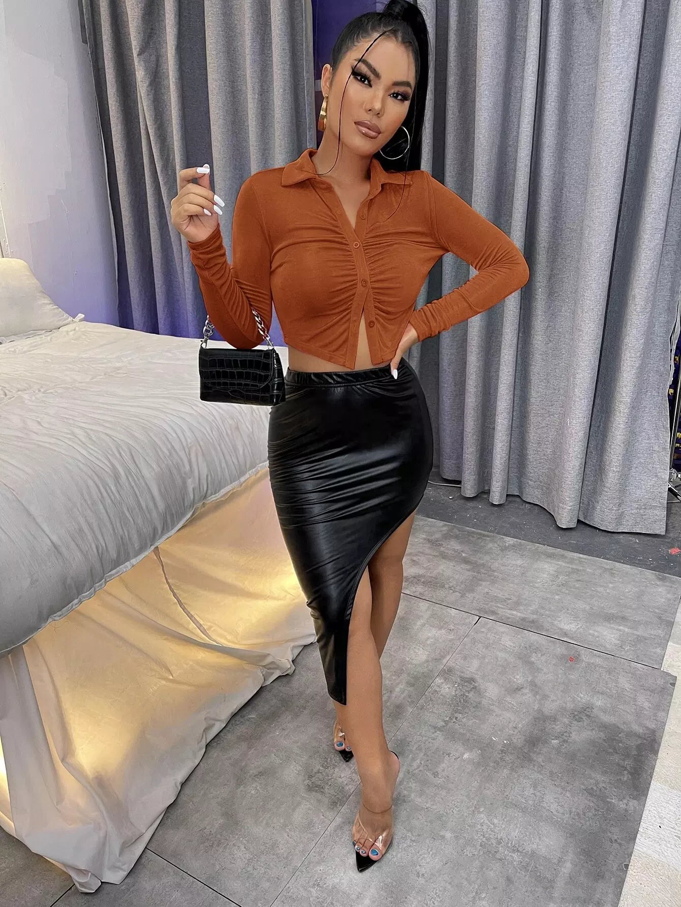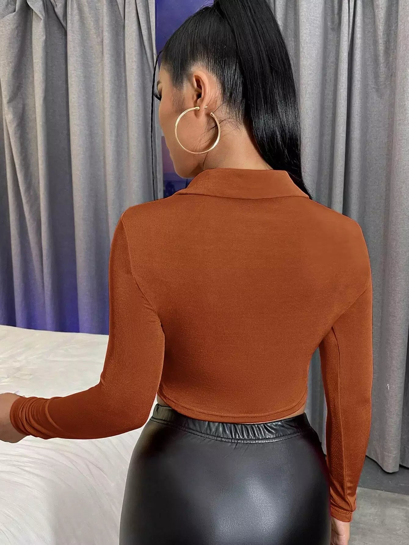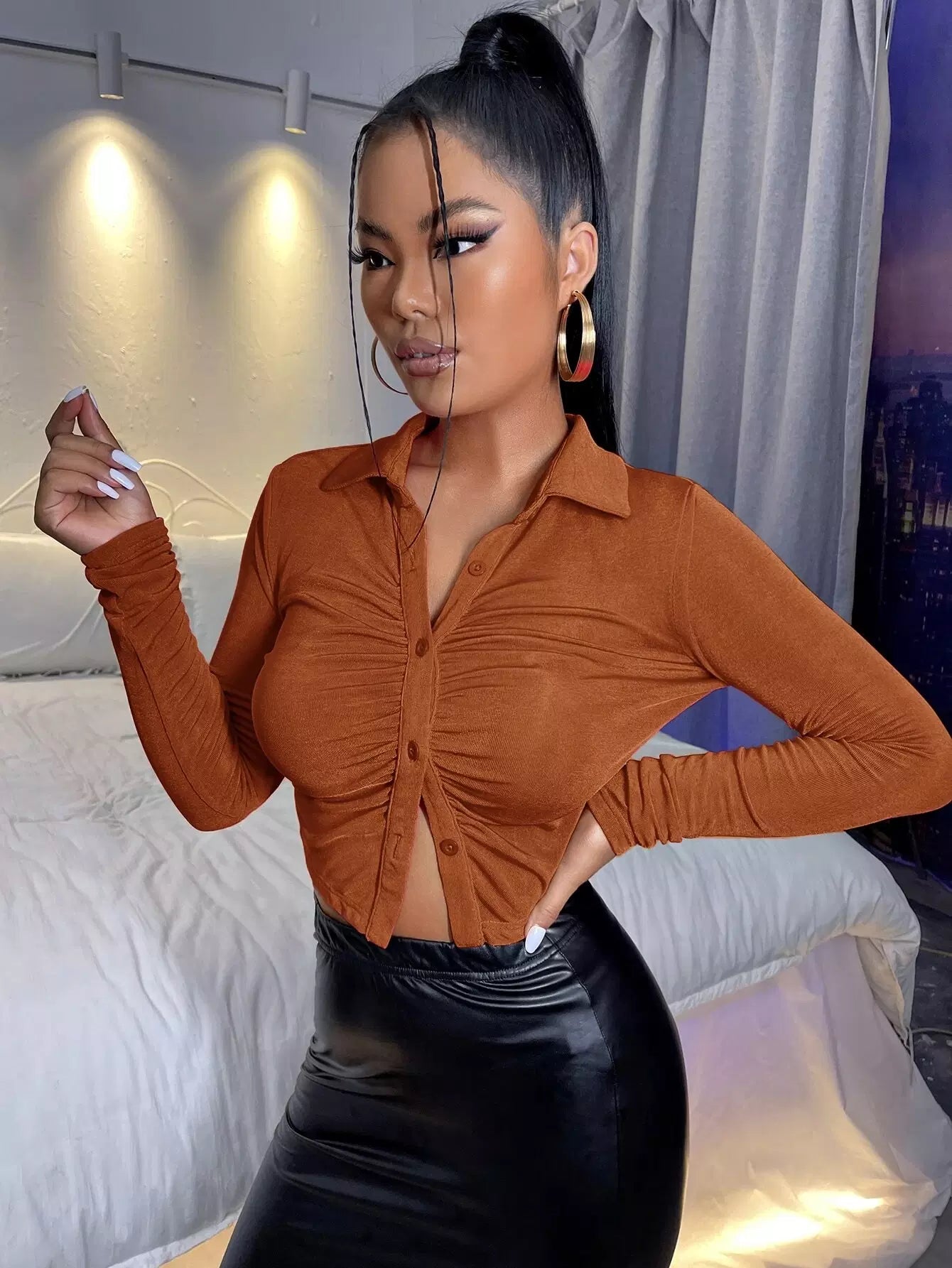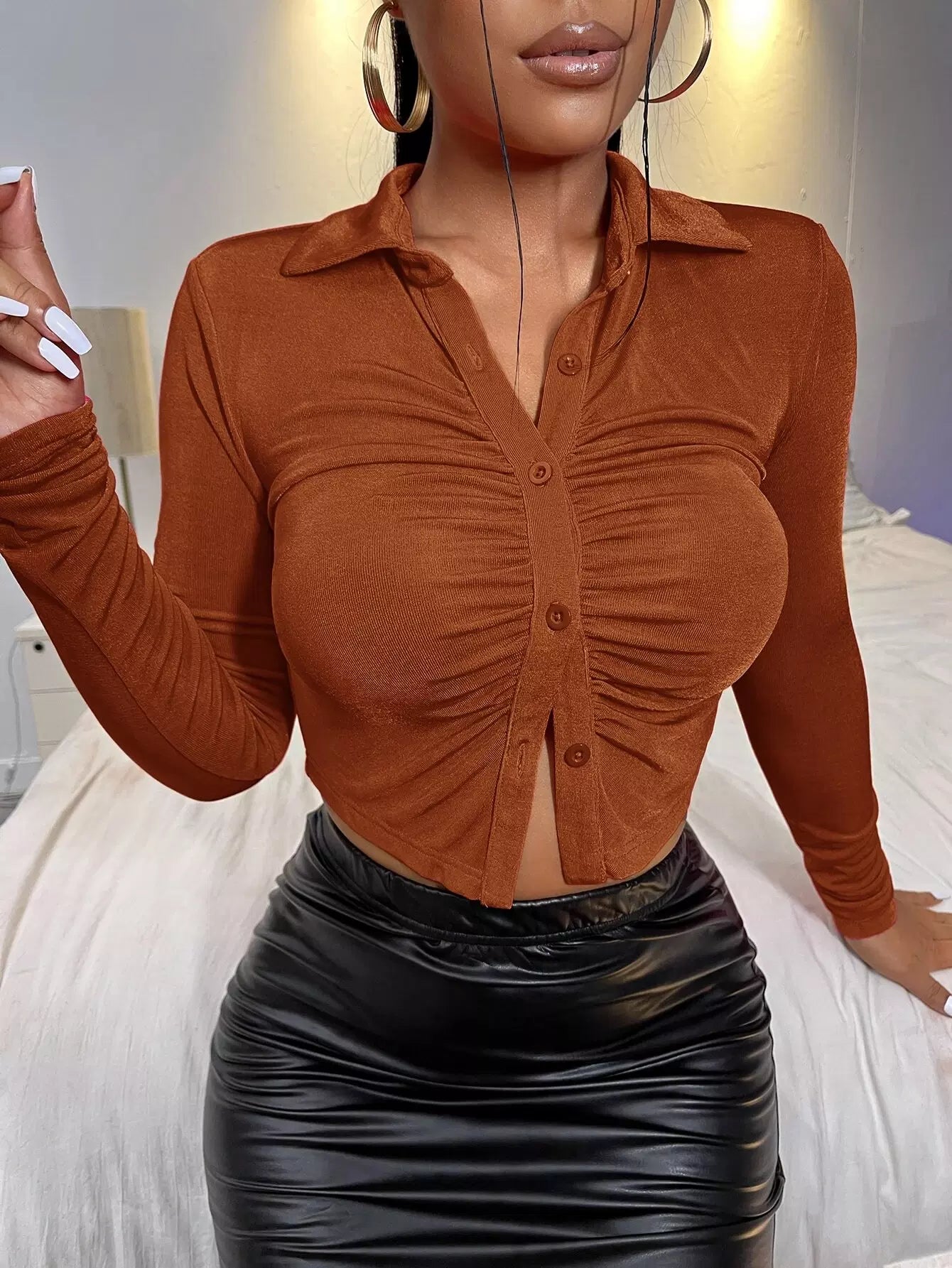 تي شيرت قصير بأزرار مكشكشة بأزرار مكشكشة