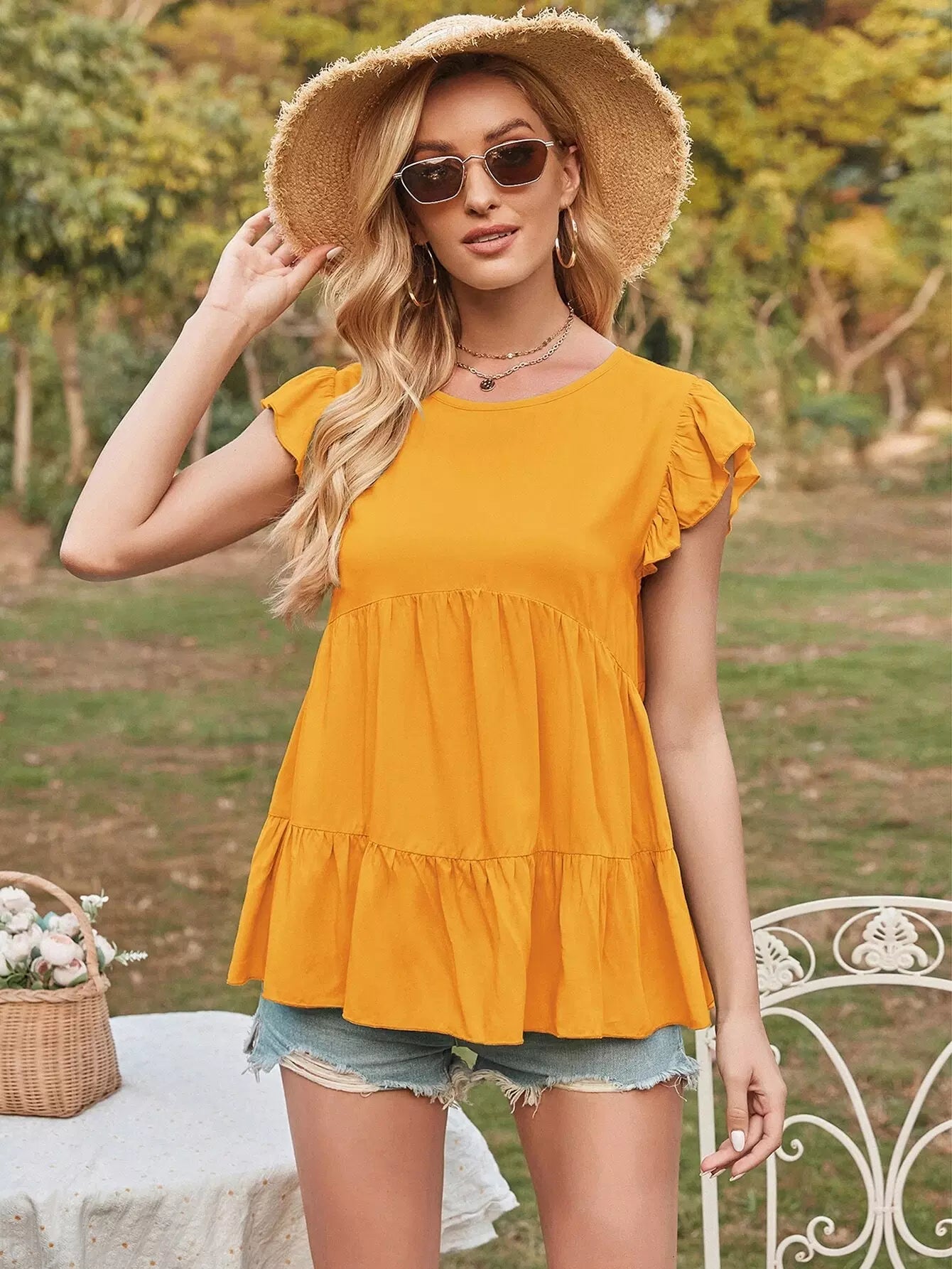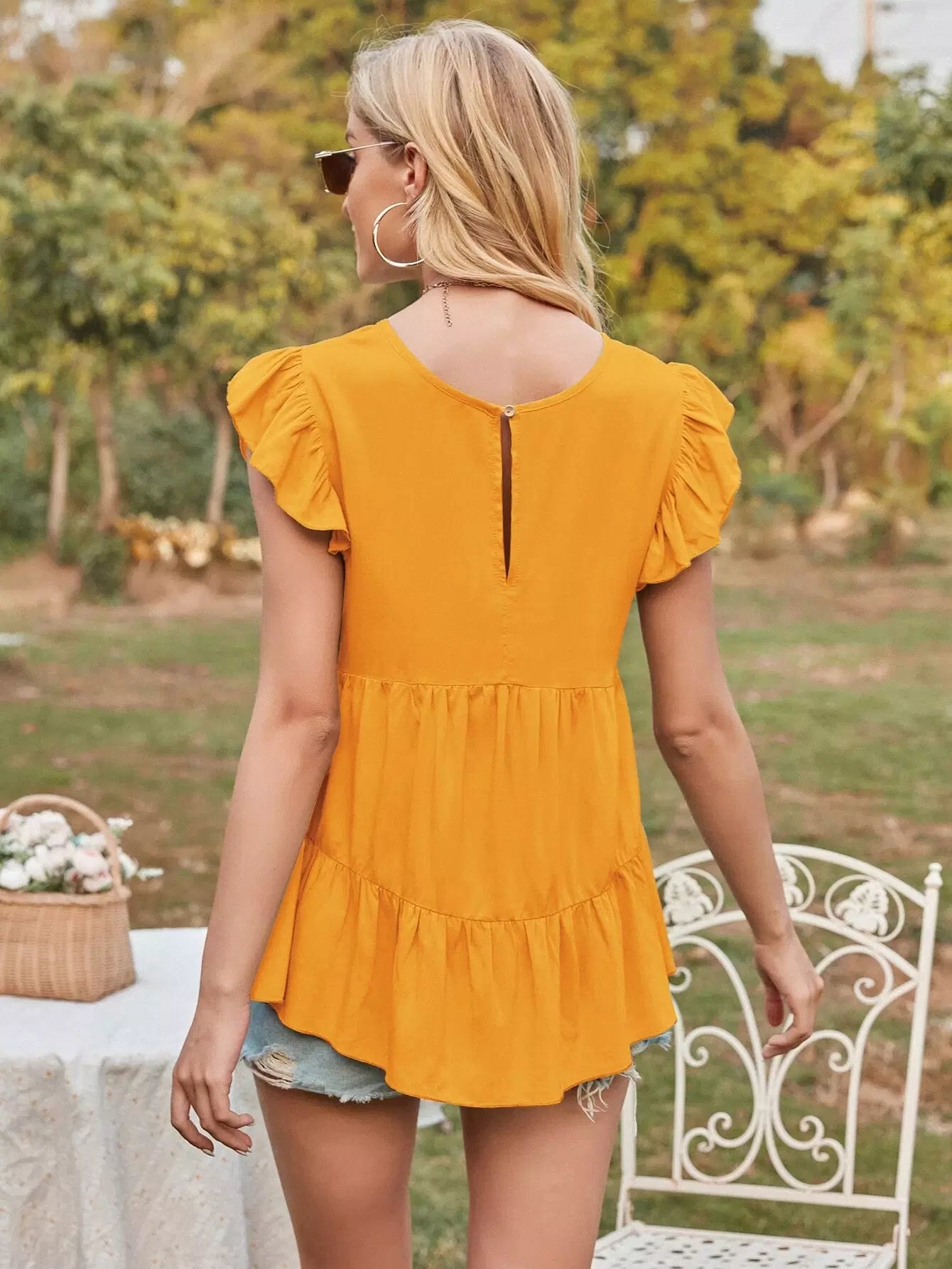 النساء - بلوزة سموك الصلبة بأساور مكشكشة