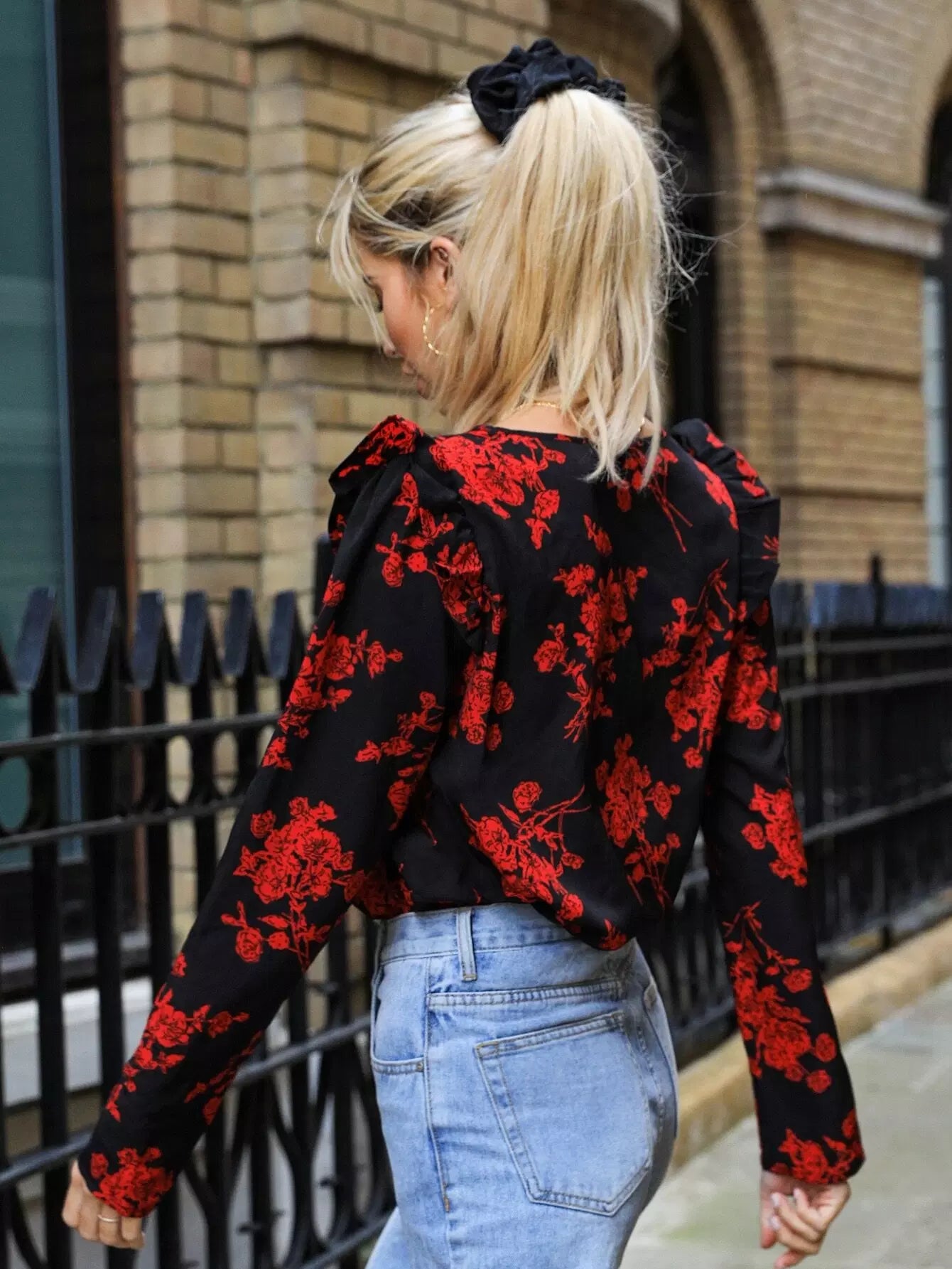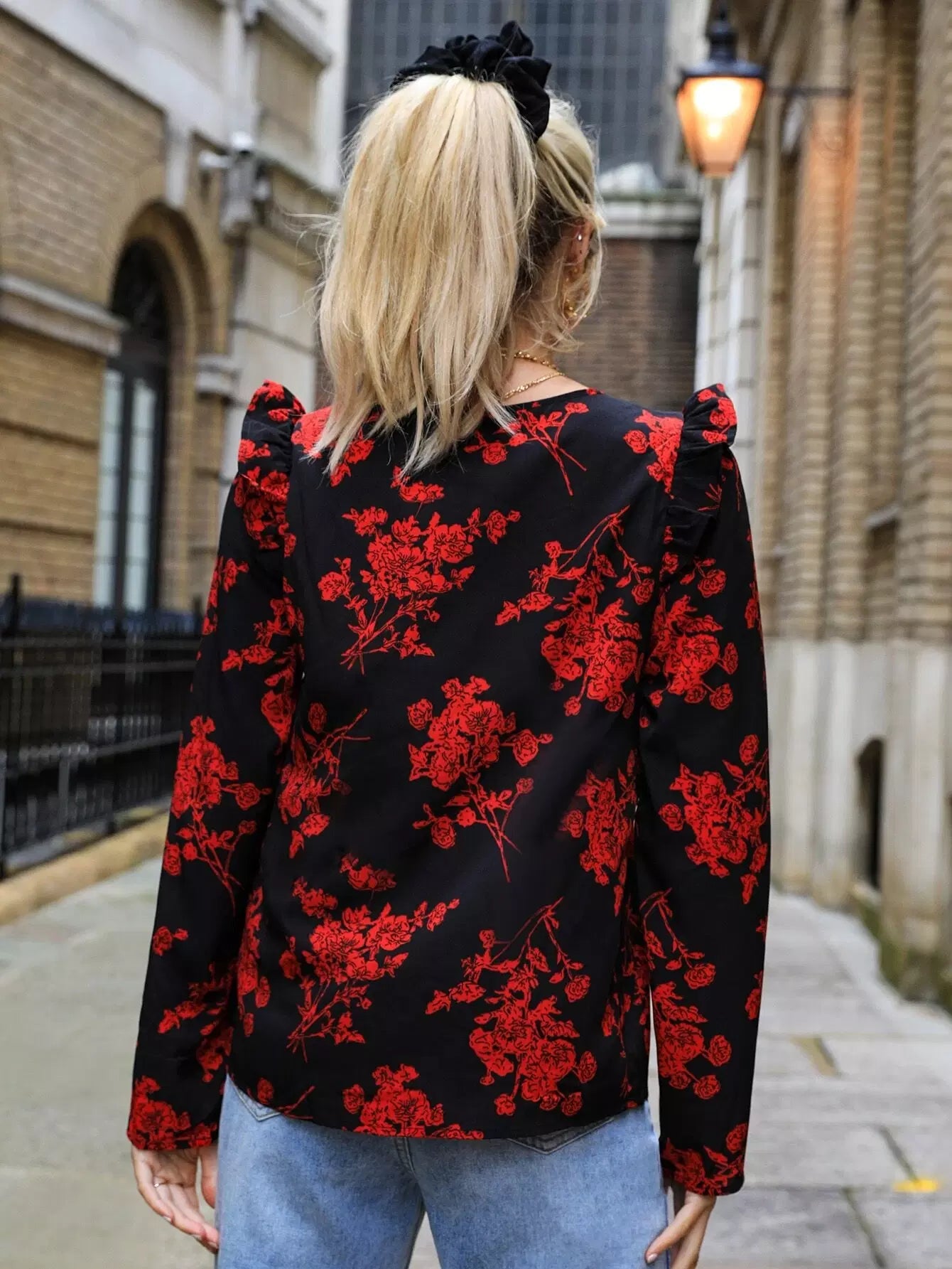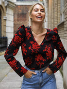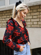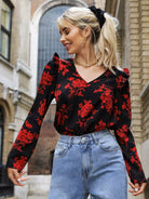 بلوزة زهرية مزينة بالكشكش