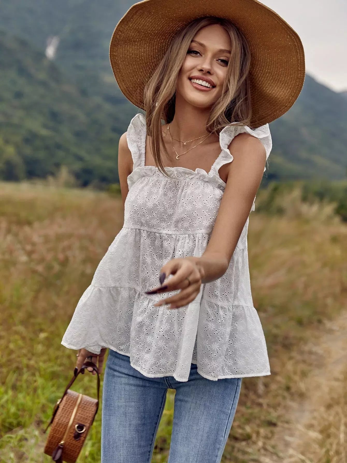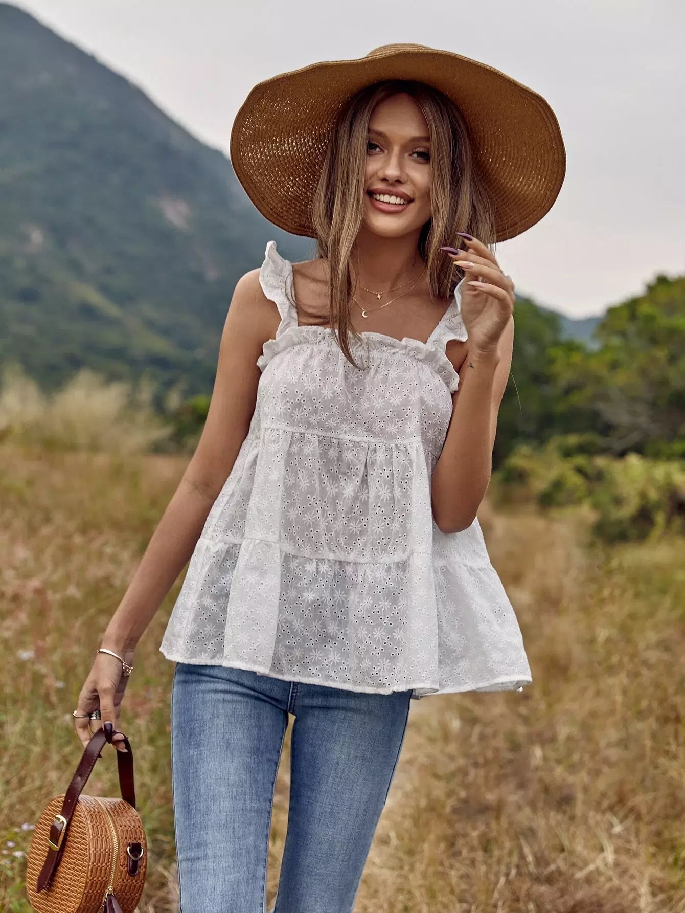 بلوزة شيفي بقصة الببلوم وحواف مكشكشة