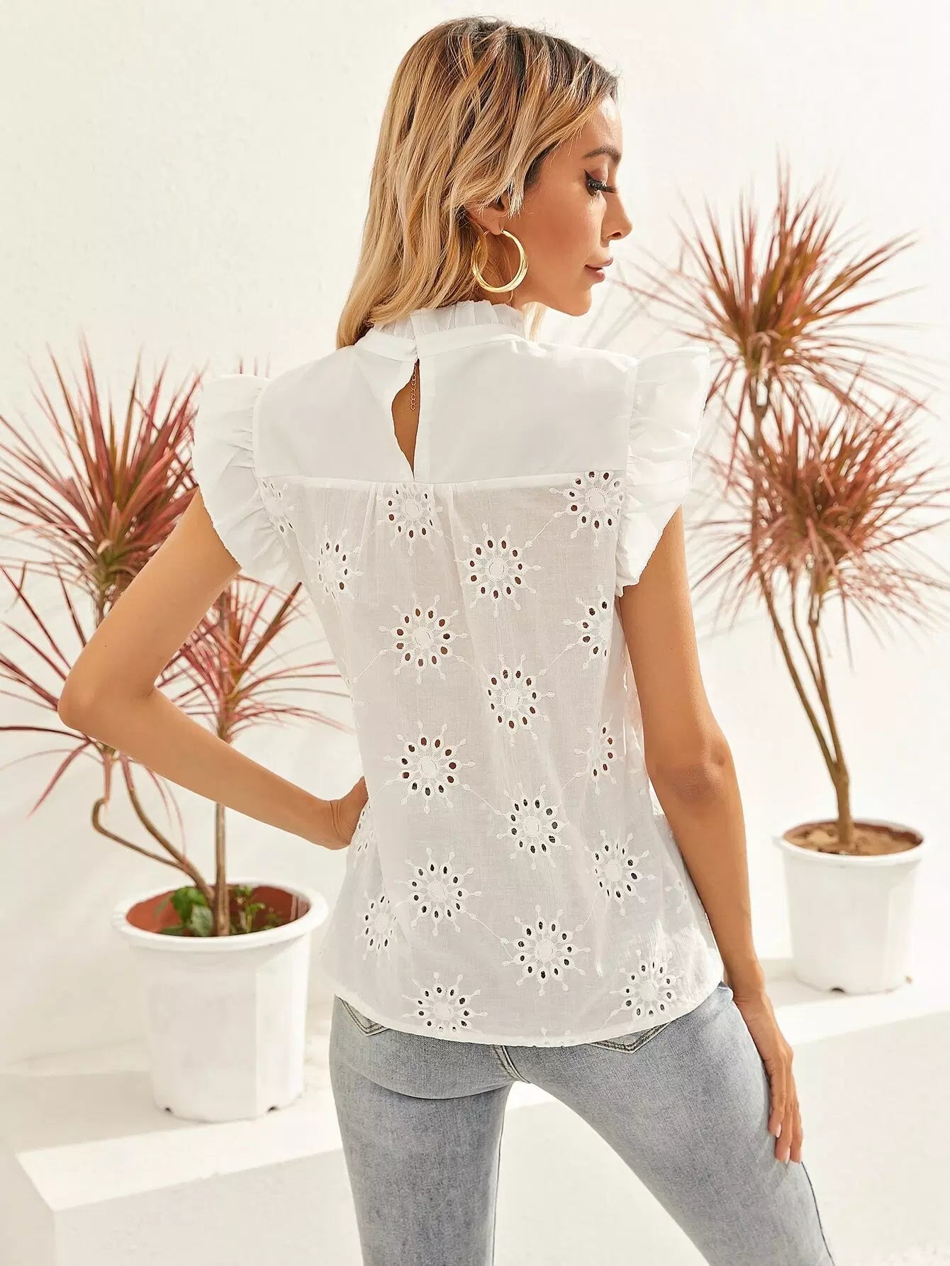 بلوزة برقبة كشكش مكشكشة من شيفي