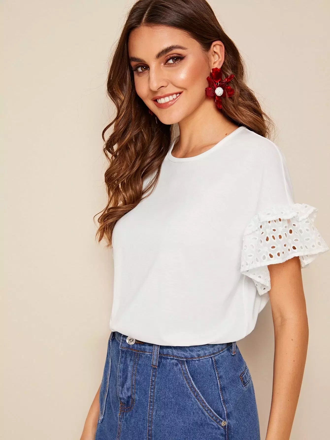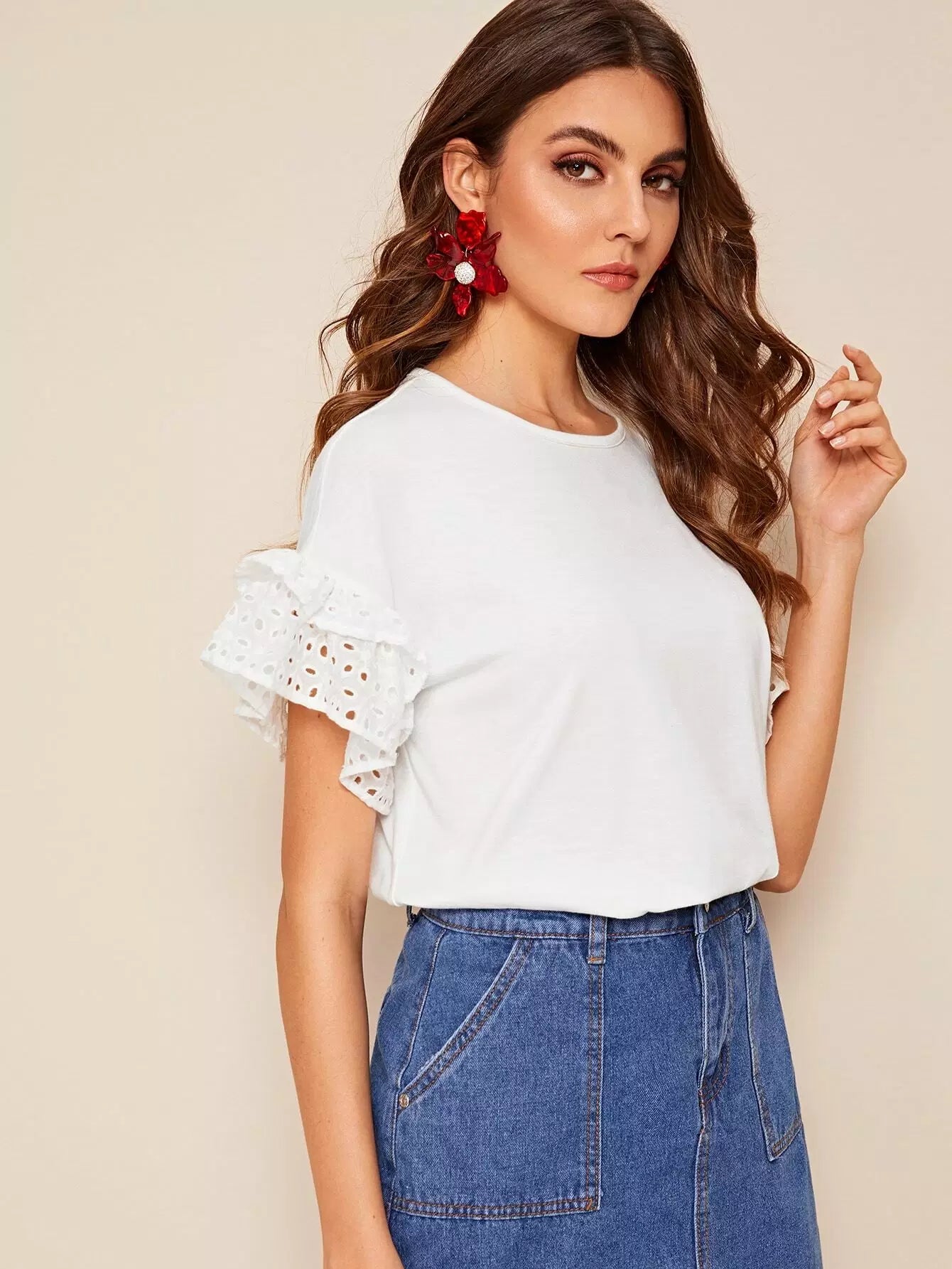 تي شيفتي تي شيرت بحواف مكشكشة