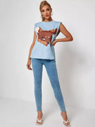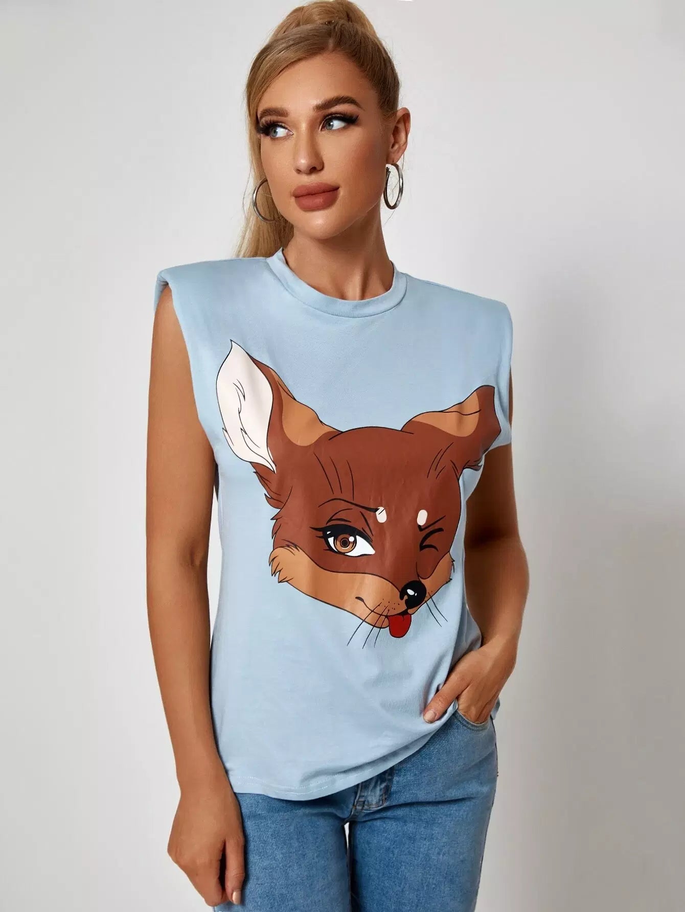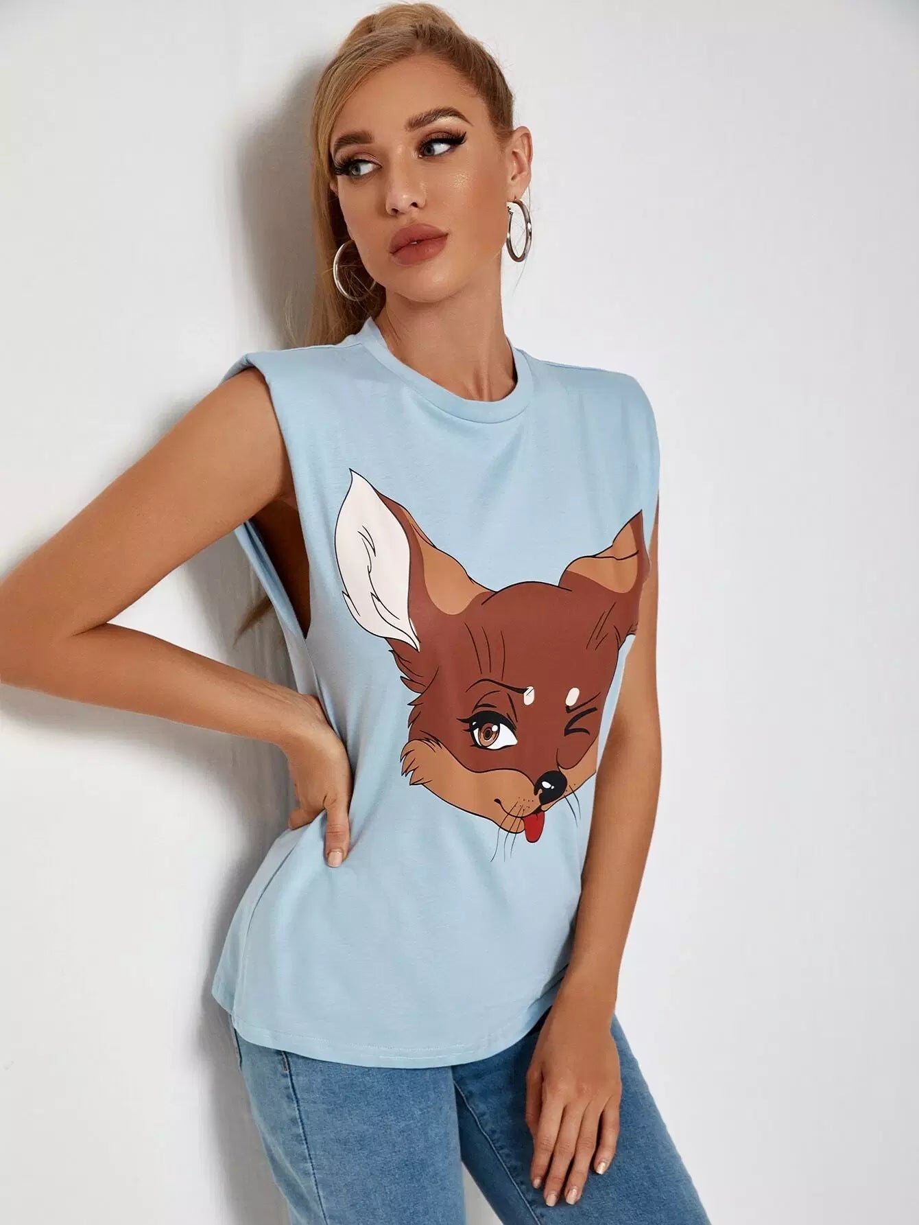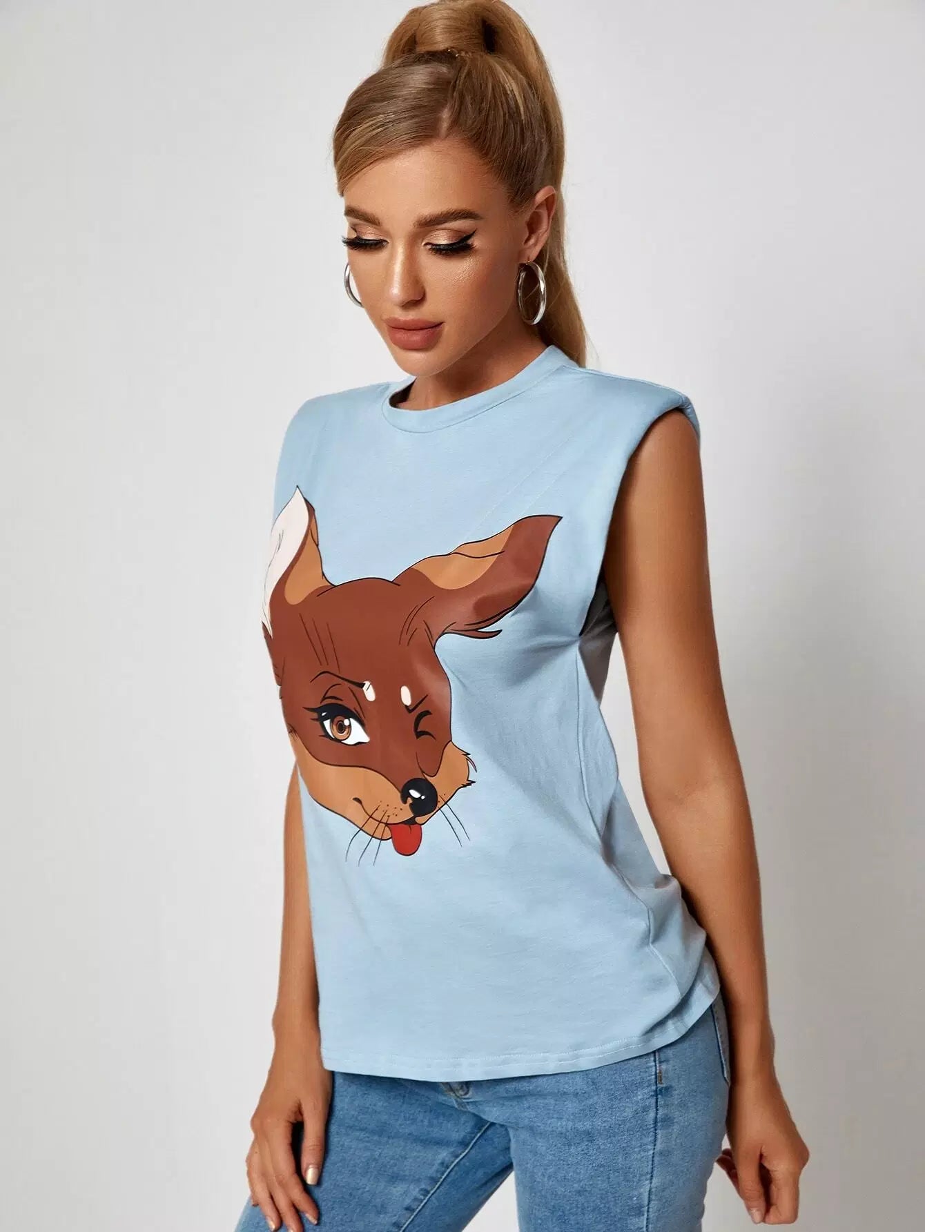للنساء - قميص بدون أكمام مبطن بطباعة الرسوم المتحركة على الكتف