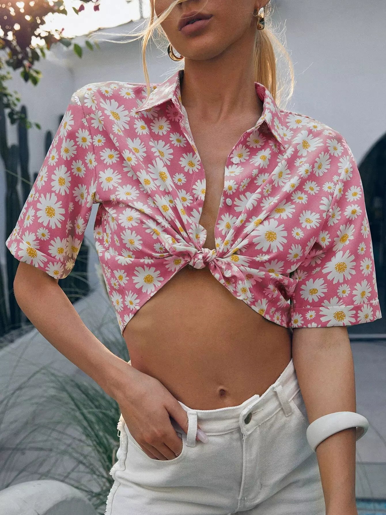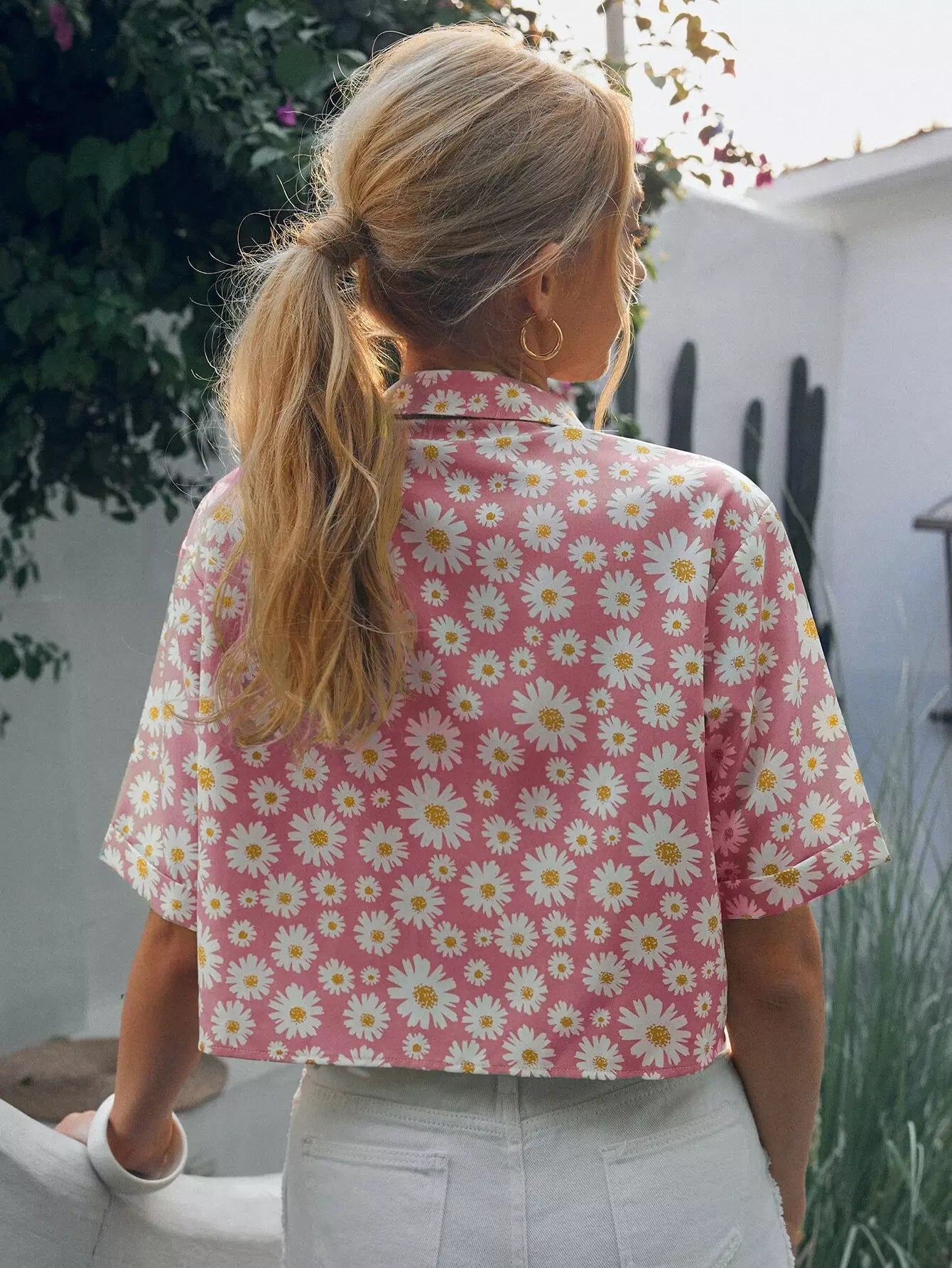 قميص مزين بزهور الأقحوان ذات الصدر الواحد