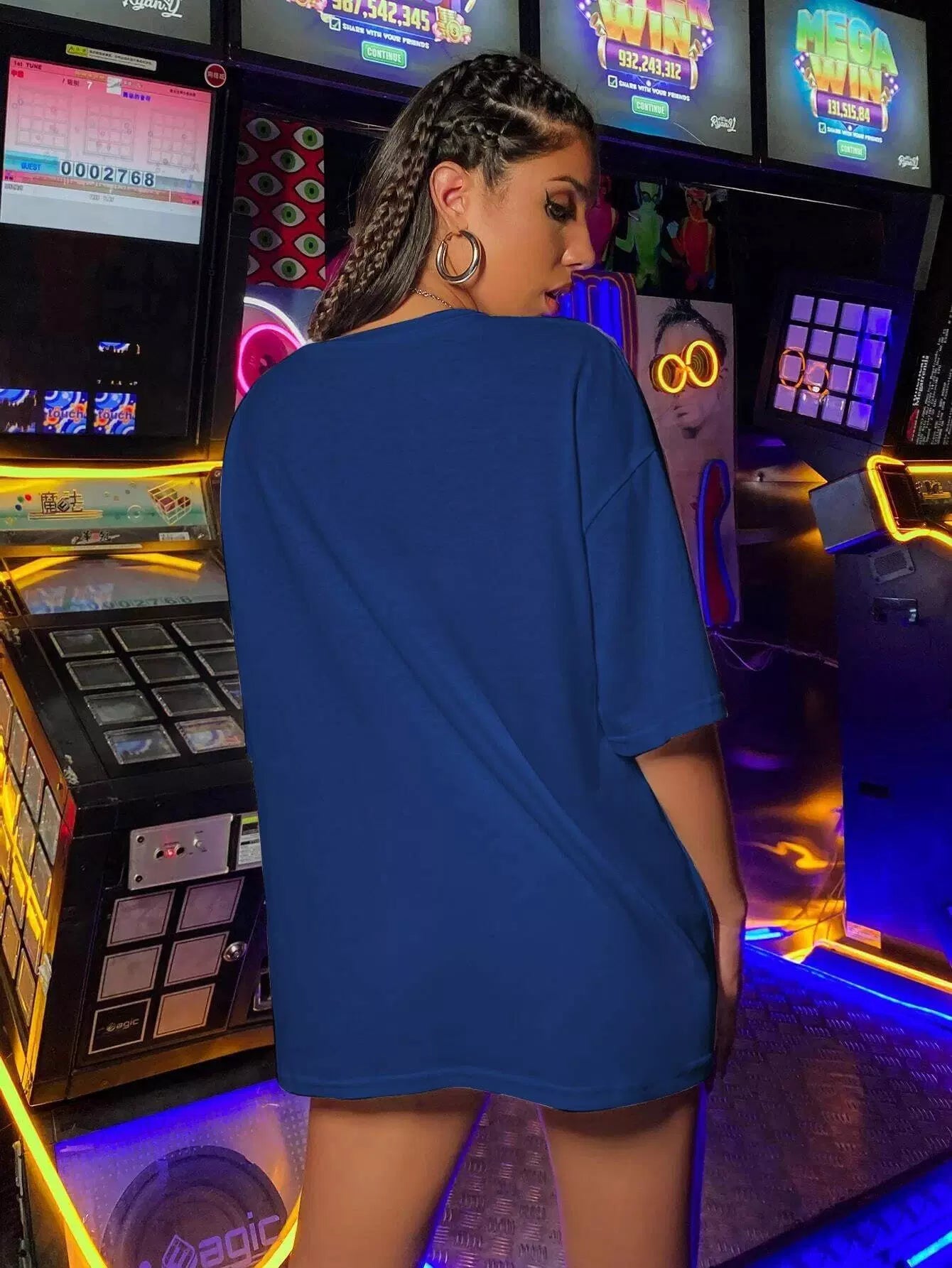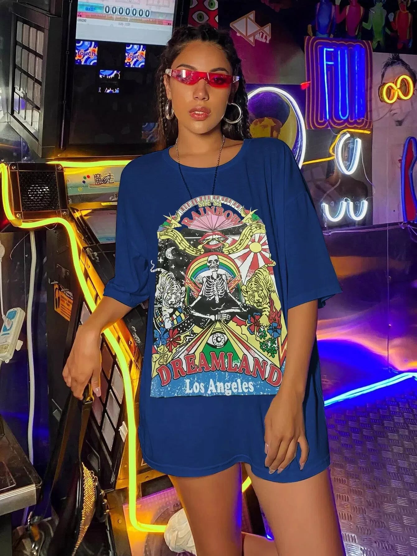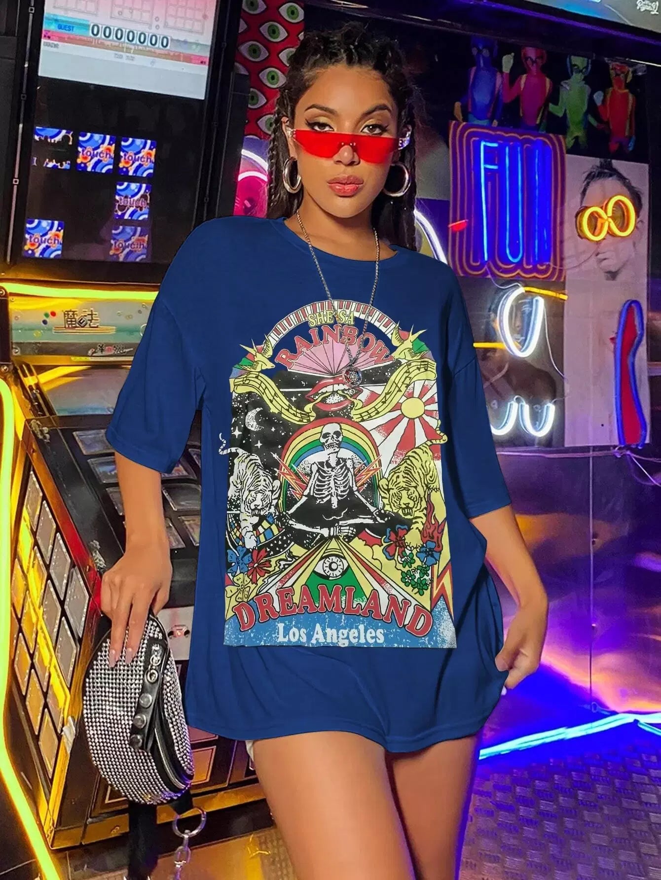 تي شيرت منسدل الكتف مطبوع عليه هيكل عظمي