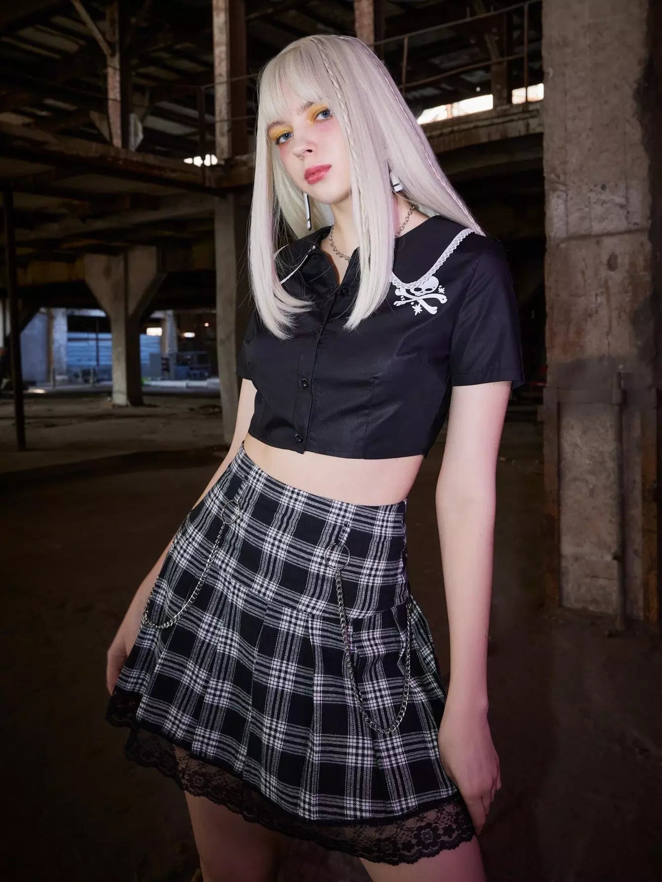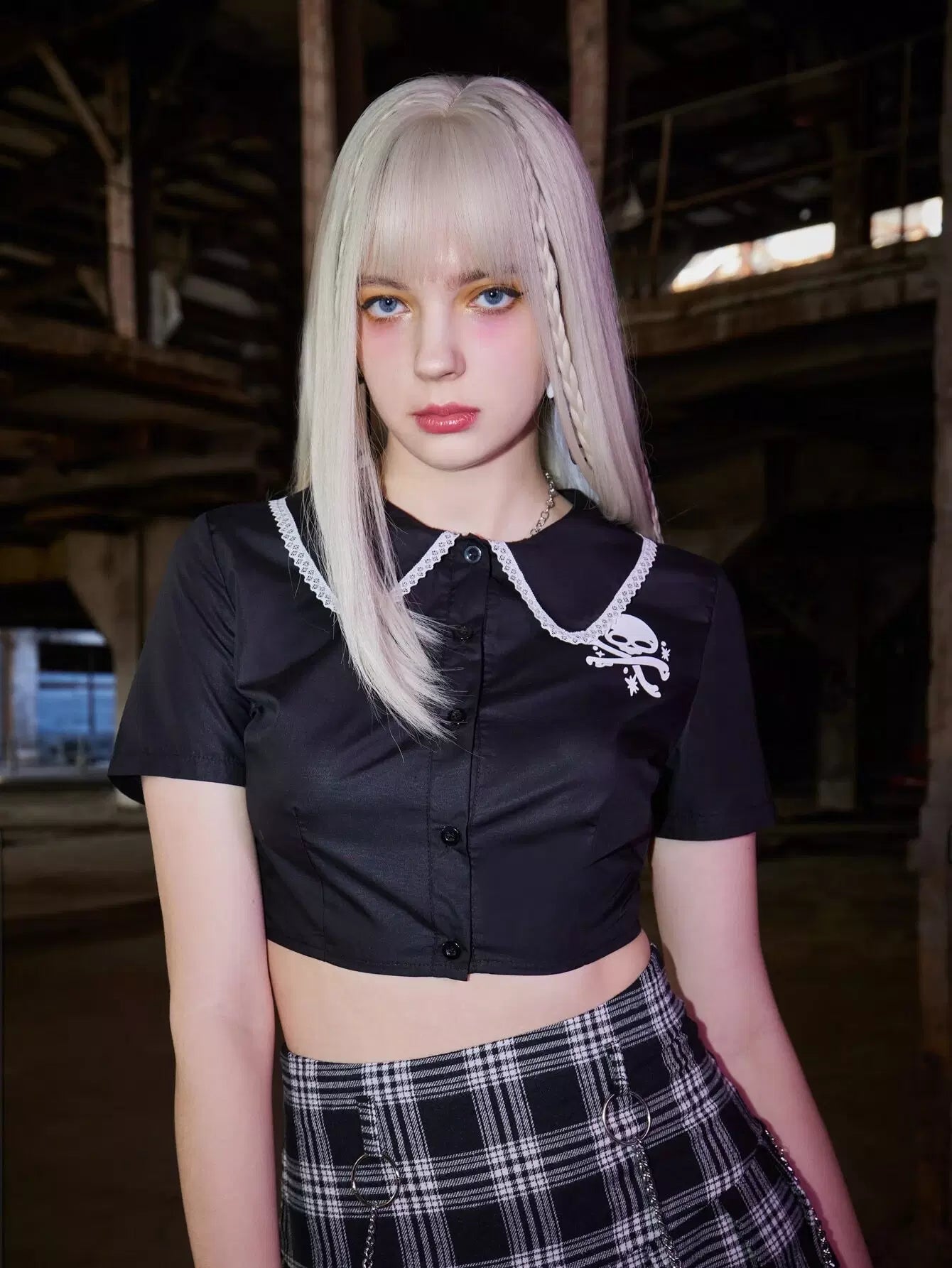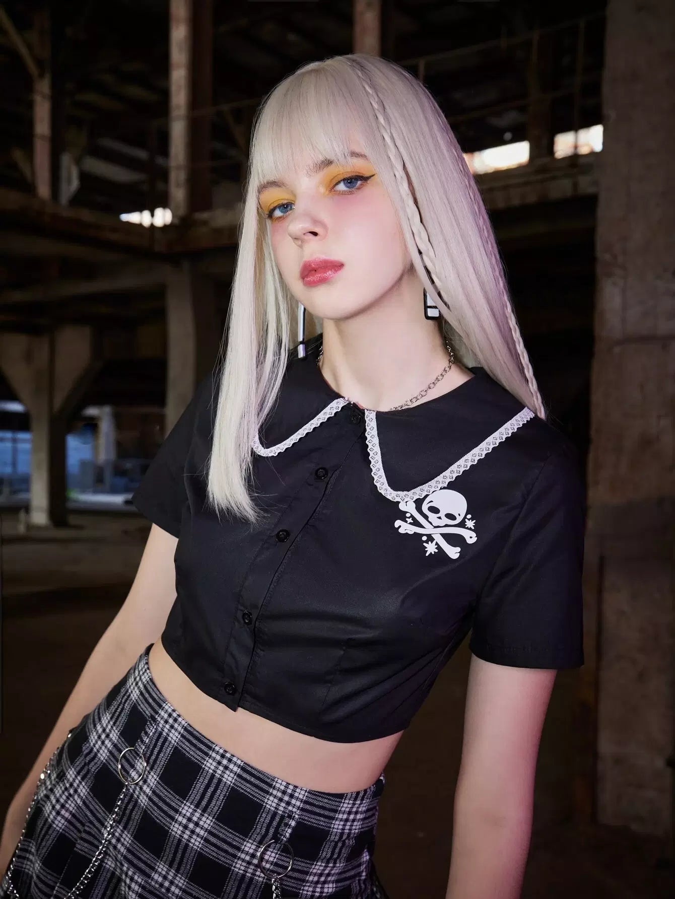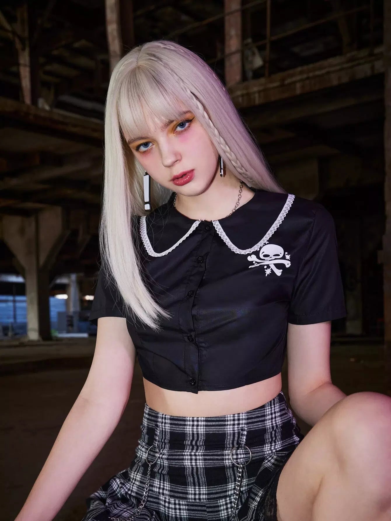 بلوزة قصيرة بياقة بيتر بان ورسومات جمجمة