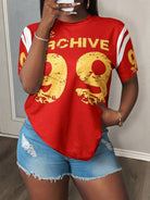 Slaydiva 2025 New Summer Casual Street Round Neck Short-Sleeved Letter Print Pattern Brown Loose Knitted