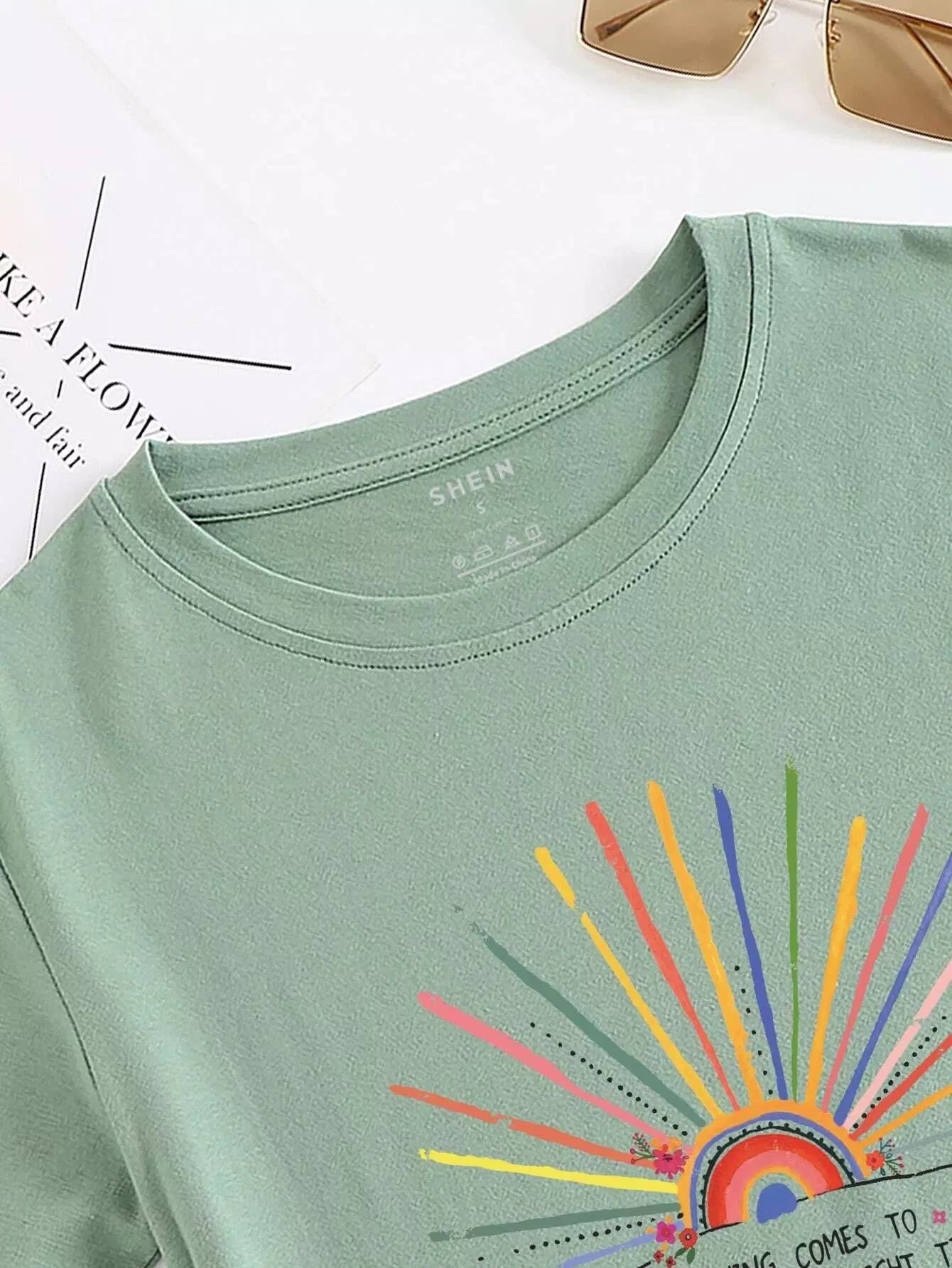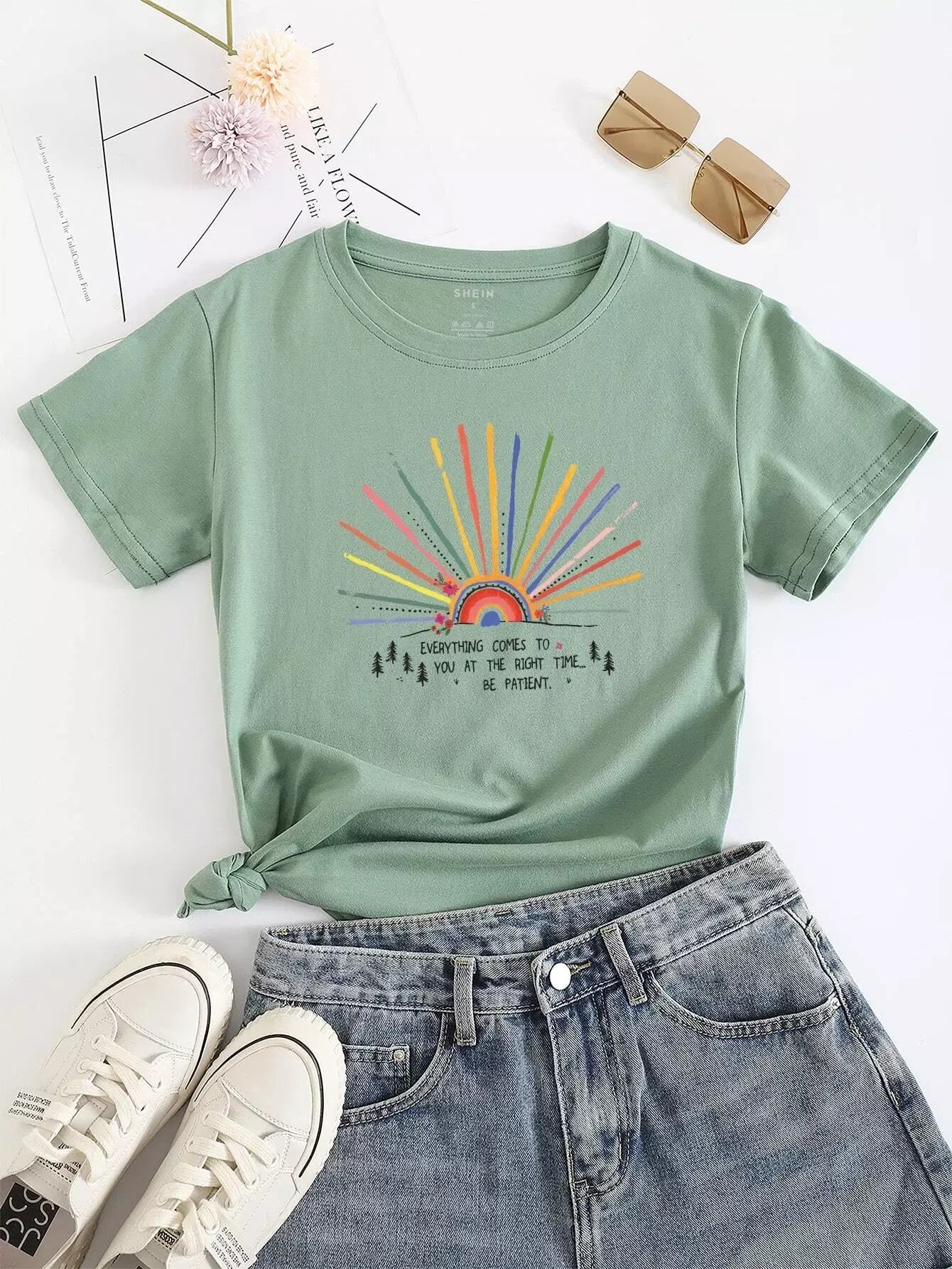 تيشيرت بأكمام قصيرة الأكمام برسومات الشعارات