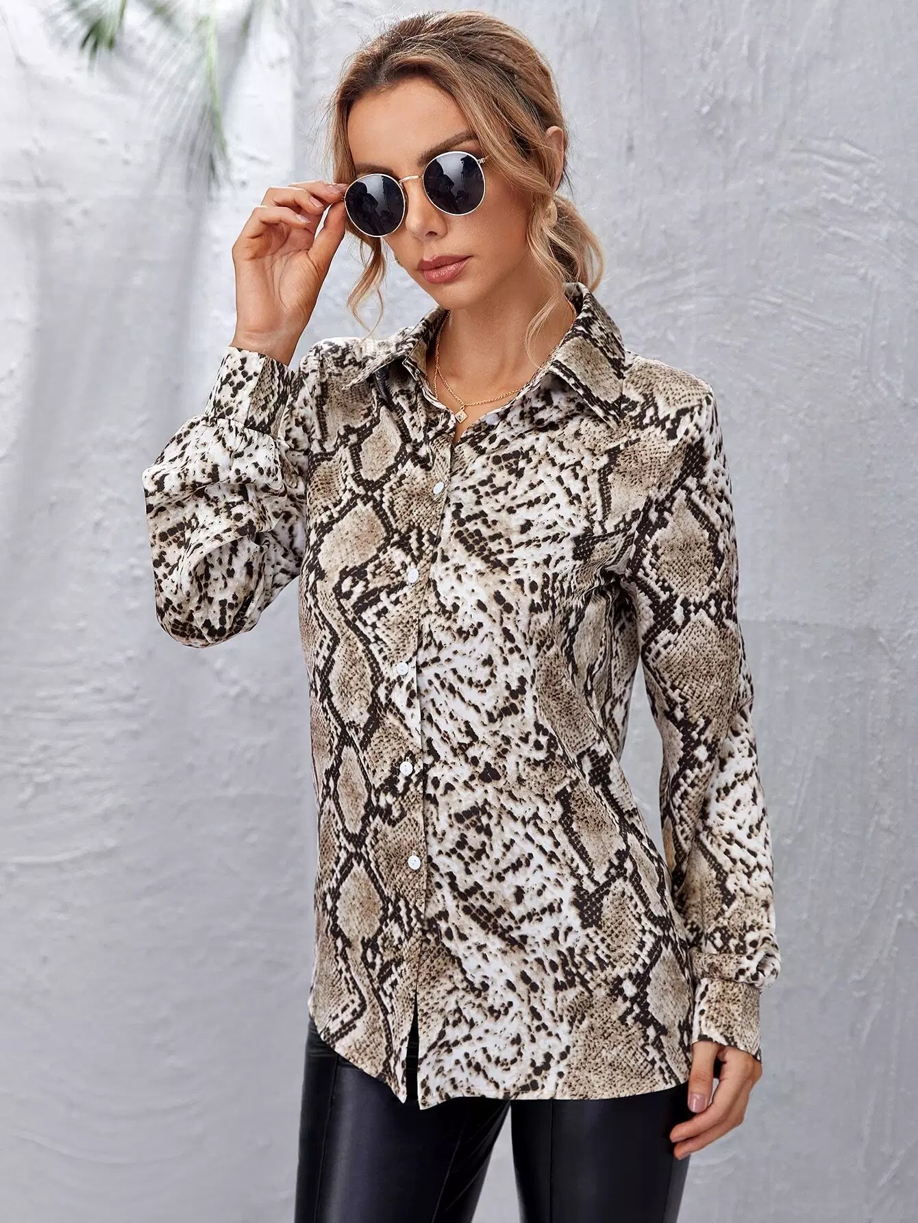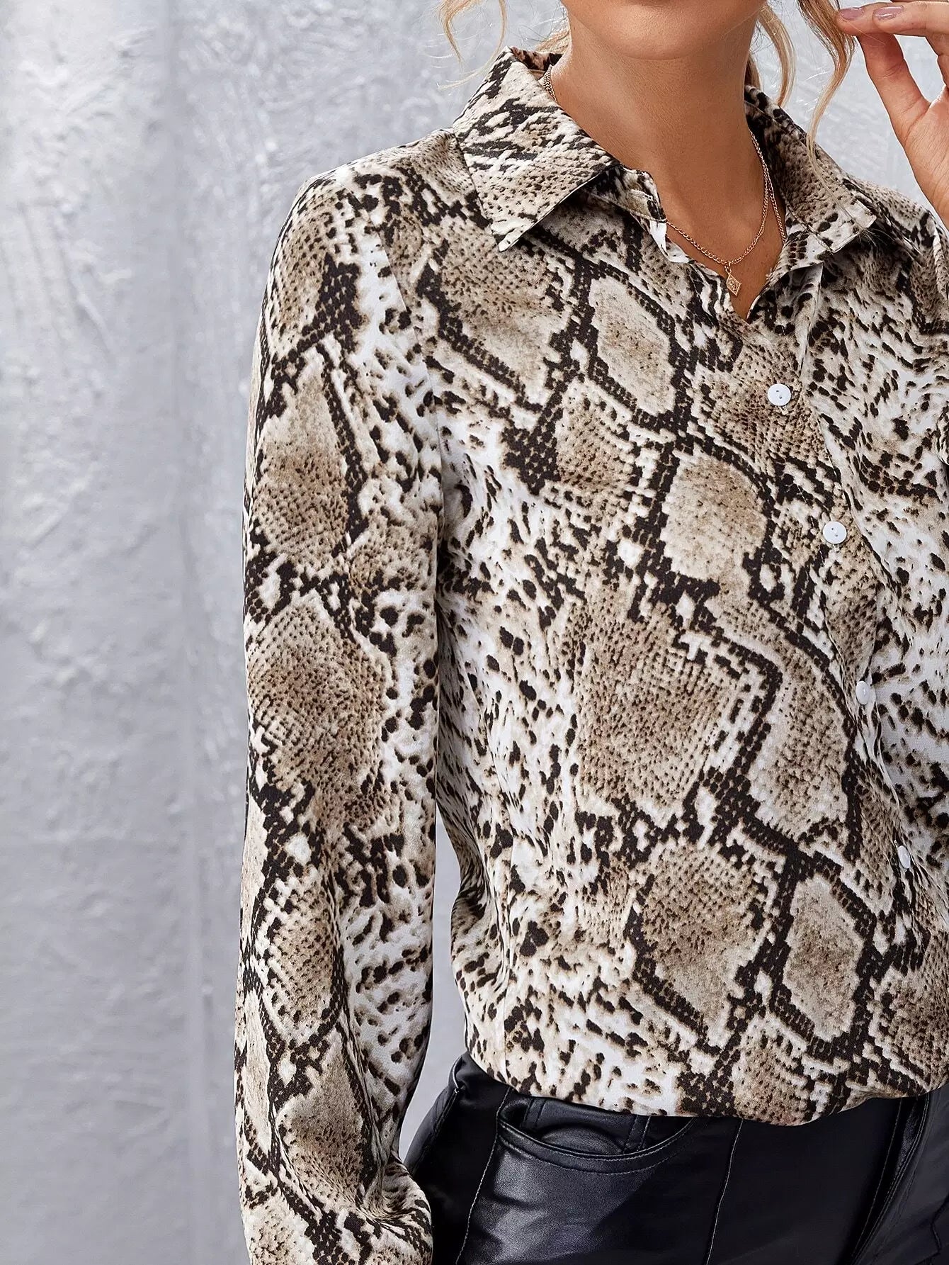 قميص بطبعة جلد الثعبان بأزرار أمامية